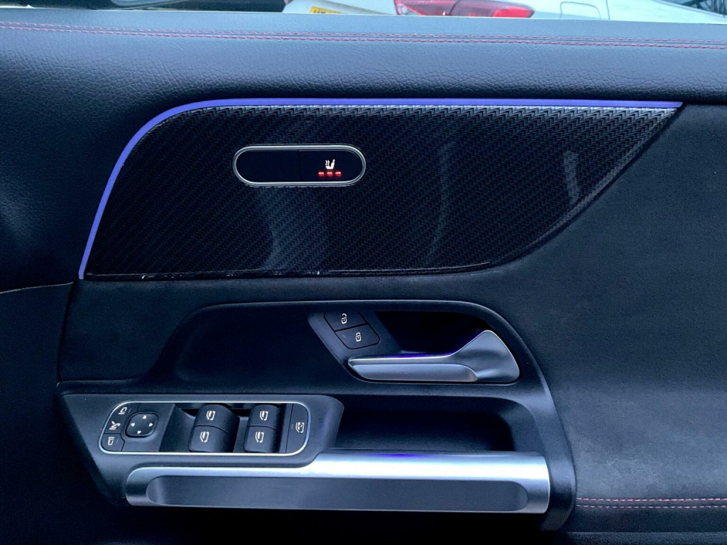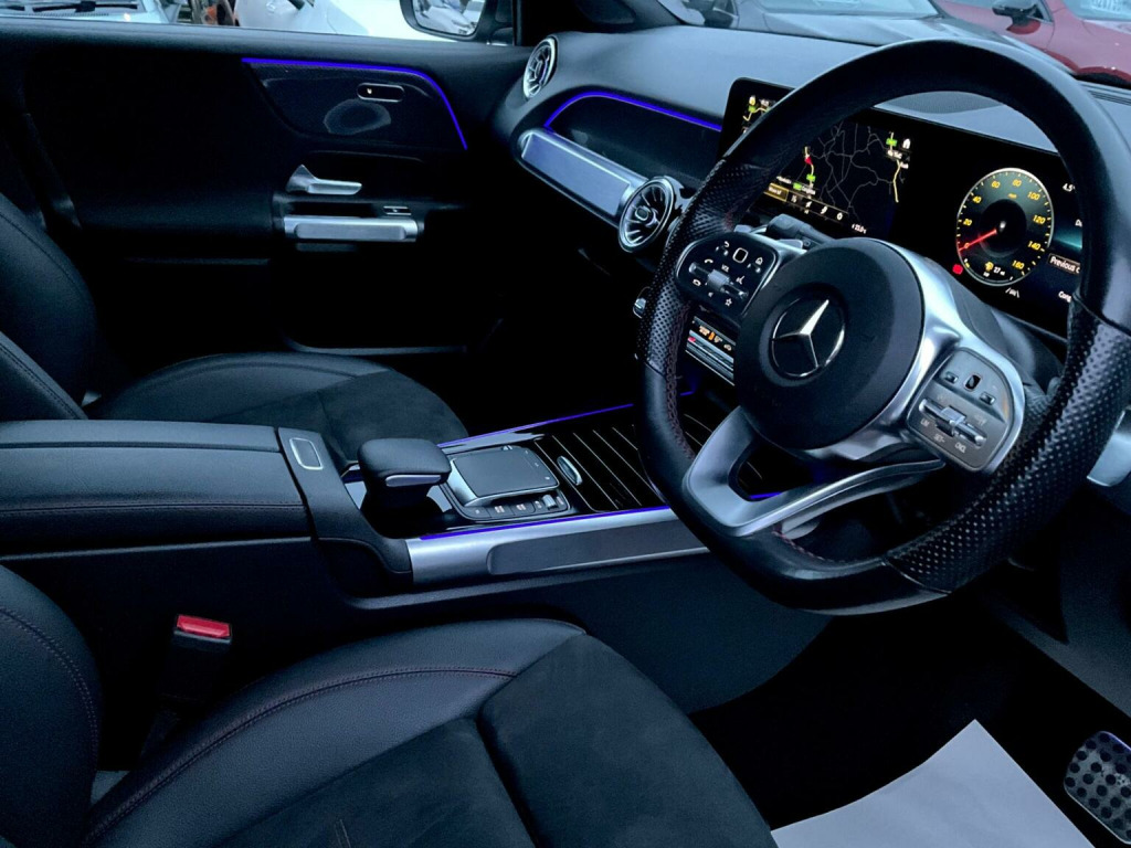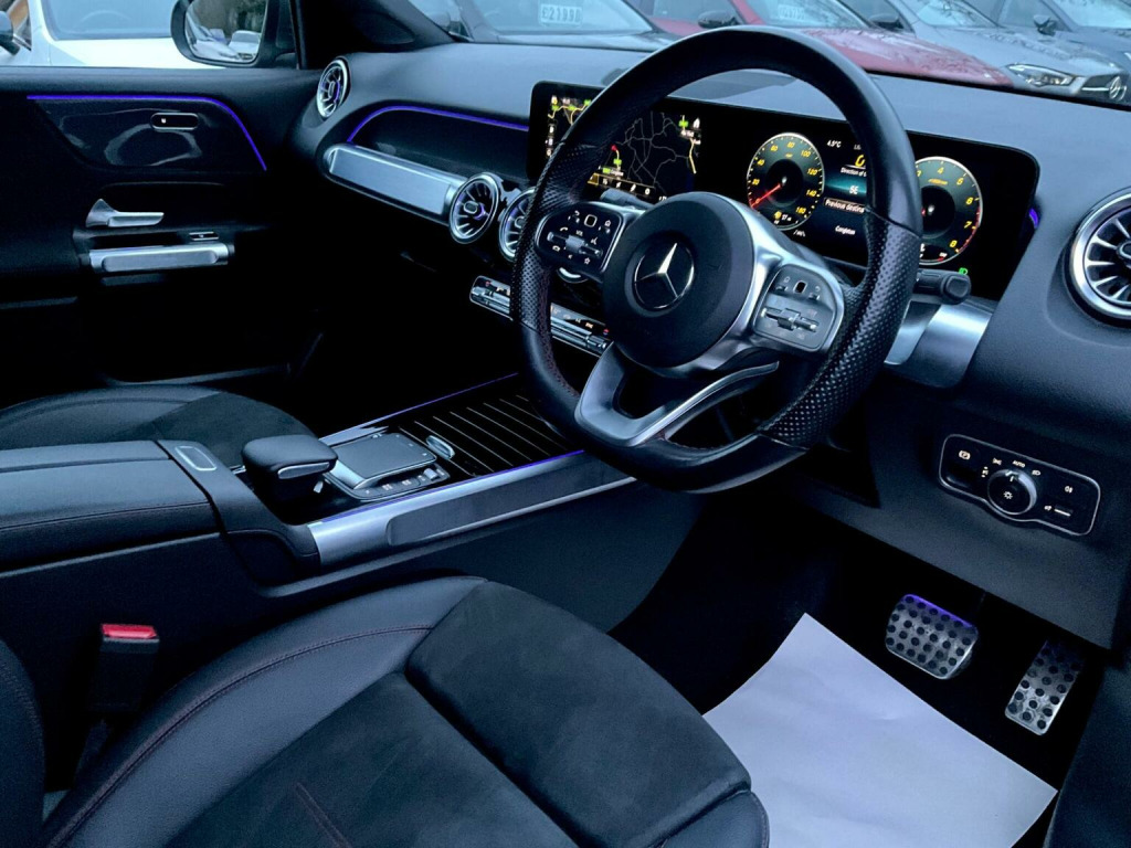 This 2023 Mercedes Benz GLB200 AMG Line (Executive) is a remarkable find, having been cherished by only one owner since new. This Euro 6 compliant 1.3 litre petrol hybrid model offers a sophisticated driving experience, complemented by its recent service at 23,000 miles. Inside, youll discover the convenience of Smartphone Integration, including Android Auto and Apple CarPlay, alongside wireless charging for your devices. Comfort is paramount with heated front seats, and the Headlamp Assist ensures automatic activation of headlights for enhanced visibility. The Keyless Go Comfort Package provides effortless entry and ignition, making every journey smoother. The GLB200 AMG Line stands out with its versatile 7 seat configuration, offering ample space for family and friends, and a generous boot space that easily accommodates your luggage. These features, combined with the advanced technology and the efficient hybrid powertrain, position this vehicle as a superior choice compared to others in its class. Its AMG Line trim further enhances its appeal, blending practicality with a touch of sporty elegance.