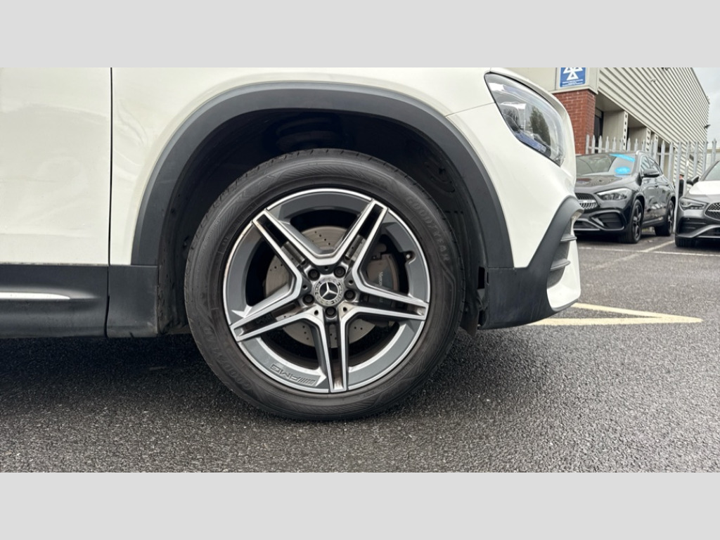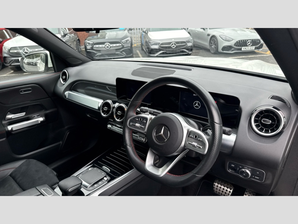Mercedes-Benz Glb GLB 200 AMG Line 5dr 7G-Tronic 180 degree reversing camera, 7 inch digital instrument cluster display, Active lane keeping assist, Attention assist - Monitors steering behaviour and long journey fatigue, Brake pad wear indicator warning light, Car wash mode, Cruise control with limiter, DYNAMIC SELECT with a choice of driving modes (ECO, Comfort, Sport and Individual), ECO start/stop function, Fluid level warning indicator for fuel, oil, coolant and washer fluid, Hard disk navigation, Hey Mercedes Voice activation, Lamp failure indicator, Mercedes me connect including emergency call system, accident recovery, breakdown and maintenance management, Mercedes me remote services, Outside temperature gauge, Owners manual and service booklet in English, Parameter steering system, Pre-installation of private car share, Radio aerial integrated into front and rear windshields, Service indicator (ASSYST), Speed limit assist, Trip computer in multifunction display with current consumption indicator, Comfort suspension, Rear axle multi-link, 7 inch digital media screen display, DAB digital radio tuner, MBUX multimedia system with DAB digital radio and touchpad including satellite navigation, Mercedes Benz sound system (100 W) with 6 speakers, Pre installation for Mercedes Benz Link, USB (type C) port in front stowage compartment, USB (type C) ports (2) in stowage compartment, Adaptive brake lights, Aerial for GPS, AMG bodystyling door panels black grained with chrome plated inserts, AMG bodystyling front apron with chrome splitter, AMG bodystyling rear apron with diffuser optics and chrome trim element, AMG specific front and rear bumper including underride guard in high gloss chrome, Beltline strips and weather strip in chrome, Body coloured door handles, Body coloured door mirror caps, Electric adjustable and heated door mirrors with integrated LED side indicators, Exhaust system with dual flow exhaust pipes (non-functional), Front and rear electric windows, Headlamp assist automatic headlamp activation, Heated glass rear windscreen + timer control, High level LED third brake light, Interior mirror with black reading lamps and frameless, LED high performance headlamps with integrated LED daytime running lights, LED tail lamp, Polished aluminium roof rails, Privacy glass with dark tinting on rear side windows and rear window, Radiator grille with pins in chrome and single louvre with chrome insert, Rain sensor windscreen wipers, Rear fog lamp, Two visible tailpipe trim elements exhaust, 3 spoke multifunction sport steering wheel in nappa leather, Air conditioning - Two zone thermotronic luxury automatic climate control with display, AMG sports pedals with brushed stainless steel surfaces and black rubber studs, Artico man-made leather/Microfibre Dinamica upholstery with red contrast stitching, Automatic child seat recognition sensor, Black floor mats with AMG lettering, Black roof lining, Fore/aft adjustment rear seats, Freight packaging with tie-down hooks, Front centre armrest with stowage, Front door sills with Mercedes Benz lettering, Front passenger grab handle with brushed side silver chrome, Front sports seats with adjustable head restraints, Galvanished gear shift paddles on steering wheel, Heated front seats, Height/reach adjustable steering column, Luggage net on driver/front passenger seat backrest, Rear armrest with two integral cup holders for drinks, Stowage compartment in centre console, Stowage compartment with retractable cover, Third row of seats for two people on rear seat, Touchpad on center console, Twin front cup holders, Two outer rear seat isofix and top tether child seat fixing points, Interior lighting with light and sight pack - GLB, Seat comfort package - GLB, 3 rear 3 point seatbelts, Active bonnet pedestrain safety measure which detects an impact and raises bonnet by 65mm, Active brake assist includes forward collision warning system with autonomous braking, Adaptive brake assist with hold function and hill start assist, Airbags - kneebag for driver, Anti-lock braking system (ABS) with brake assist, Childproof locks manually operated for rear doors and electrically operated for rear power windows, Crash responsive emergency lighting, Curve dynamic assist, Driver and front passenger head and sidebags, Driver and front passenger windowbags, Dual stage driver and front passenger airbags, Electronic parking brake, Electronic stability programme with acceleration skid control, Front and rear seatbelt reminder, Front brake callipers with Mercedes Benz lettering, Front passenger seat occupancy sensor, Tyre pressure monitoring system, Warning triangle and first aid kit, KEYLESS-GO starting function, Remote central locking and crash sensor with emergency opening function, Thatcham category 1 alarm system with immobiliser and interior protection, Urban guard vehicle protection - Anti theft alarm system, tow away protection with visual and acoustic warning and alarm siren, Vehicle key with decorative surround in chrome, Black air vents with chrome surround, Carbon structure trim, 19" AMG 5 twin spoke light alloy wheels painted in tantalite grey with high sheen finish, Summer tyres, Tirefit tyre sealant kit