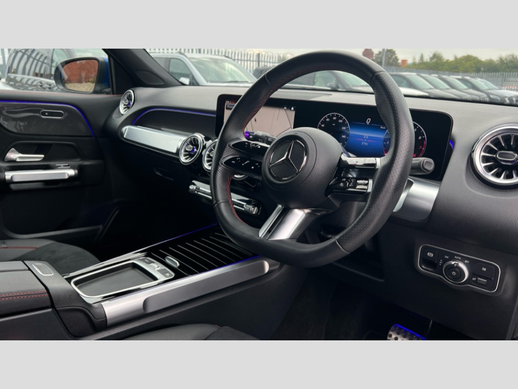 Mercedes-Benz Glb GLB 200 AMG Line Executive 5dr 7G-Tronic 10.25 inch touchscreen central media display, 10.25" Digital instrument cluster display screen, 12 ultrasonic sensors in front and rear bumpers, 180 degree reversing camera with parking guidelines, Assisted parking: reversing backwards into perpendicular and parallel parking spaces, Attention assist - Monitors steering behaviour and long journey fatigue, Bluetooth connection, Brake pad wear indicator warning light, Car wash mode, Convenience opening and closing, Direct steering, DYNAMIC SELECT with a choice of driving modes (ECO, Comfort, Sport and Individual), ECO start/stop function, Engine start/stop button, Fluid level warning indicator for fuel, oil, coolant and washer fluid, Hard disk navigation, Hey Mercedes Voice activation, Lamp failure indicator, Lane keep assist, MBUX navigation premium, Mercedes me connect including emergency call system, accident recovery, breakdown and maintenance management, Mercedes me remote services, Outside temperature gauge, Owners manual and service booklet in English, Pre-installation of private car share, Preinstallation for parking damage notification, Radio aerial integrated into front and rear windshields, Remote boot closing, Service indicator (ASSYST), Smartphone integration with Apple CarPlay and Android auto, Speed limit assist, Tailgate, Trip computer in multifunction display with current consumption indicator, Ultrasound sensors - positioned in the handle of the tailgate, Wireless charging, Comfort suspension with ride height lowering, Rear axle multi-link, 1 USB-C port in the oddments compartment (Charge + Data transfer), 2 USB-C ports for the rear on the centre armrest (Charge only), 2 USB-C ports under the front centre armrest (Charge + Data transfer), DAB digital radio tuner, MBUX multimedia system, Mercedes Benz sound system (100 W) with 6 speakers, Pre installation for Mercedes Benz Link, Adaptive brake lights, Adaptive high beam assist, AMG front apron with front splitter in the colour of the vehicle with chrome trim element, AMG rear apron with visible tailpipe trim and chrome trim element, AMG specific/dual flow exhaust pipes in chrome (non-functional), Auto dimming rear view mirror, Beltline trim and window line trim strip in high gloss aluminium, Black grained side sill trim with chrome inlay, Body coloured door handles, Electric adjustable and heated door mirrors with integrated LED side indicators, Electric folding door mirrors, Front and rear electric windows, Headlamp assist automatic headlamp activation, Heat insulating dark-tinted glass starting from B-pillar, Heated glass rear windscreen + timer control, High level LED third brake light, Interior mirror with black reading lamps and frameless, LED high performance headlamps with integrated LED daytime running lights, LED tail lamp, Polished aluminium roof rails, Radiator grille as a diamond grille with chrome pins and central Mercedes star, Rain sensor windscreen wipers, Rear fog lamp, Rear side wing doors, Rear wiper, Single louvre in matt grey with chrome inserts and black highlights, Two visible tailpipe trim elements exhaust, Ultrasonic sensors - positioned in the front and rear bumpers, Wheel arch liners in the colour of the vehicle, 12V socket in the oddments compartment, 3 seat bench in 2nd row, 3 twin spoke flattened multifunction steering wheel in nappa leather - horizontal twin spoke in high gloss black, vertical twin spoke in silver chrome, 4 way adjustable lumbar support, 40:20:40 split folding rear seats, Air vents with silver chrome surrounds, AMG floor mats, AMG sports pedals with brushed stainless steel surfaces and black rubber studs, Automatic child seat recognition sensor, Black roof lining, Door handles with chrome inserts, Fluorescent jacket, Front and rear headrests, Front centre armrest with stowage, Galvanised steering wheel gearshift paddles in silver chrome, Handle recess lighting, Heated front seats, Height adjustable head restraints, Height/reach adjustable steering column, Interior lighting - 64 colour Ambient lighting, Luggage net on driver/front passenger seat backrest, Single front passenger seat, Sports seats, Stowage compartment with retractable cover, Sun visors with illuminated vanity mirrors, THERMATIC automatic climate control, Third row of seats for two people on rear seat, Twin front cup holders, Two outer rear seat isofix and top tether child seat fixing points, Easy pack tailgate, Interior lighting with light and sight pack - GLB, Seat comfort package - GLB, 3 rear 3 point seatbelts, Active bonnet pedestrain safety measure which detects an impact and raises bonnet by 65mm, Active brake assist includes forward collision warning system with autonomous braking, Adaptive brake assist with hold function and hill start assist, Airbags - kneebag for driver, Anti-lock braking system (ABS) with brake assist, Black seatbelts, Bonnet with power domes, Childproof locks manually operated for rear doors and electrically operated for rear power windows, Crash responsive emergency lighting, Curve dynamic assist, Driver and front passenger head and sidebags, Driver and front passenger windowbags, Dual stage driver and front passenger airbags, Electric parking brake, Electronic stability programme with acceleration skid control, Front and rear seatbelt reminder, Front brake callipers with Mercedes Benz lettering, Front passenger seat occupancy sensor, Perforated front brake discs, Tyre pressure monitoring system, Warning triangle and first aid kit, Guard 360 degree vehicle protection - Anti theft alarm system, tow away protection with visual, acoustic warning and alarm, Interior monitoring system, Keyless Go Access and drive authorisation system, KEYLESS-GO starting function, Remote central locking and crash sensor with emergency opening function, Thatcham category 1 alarm system with immobiliser and interior protection, Vehicle key with KEYLESS GO functionality, Carbon structure trim, 19" A