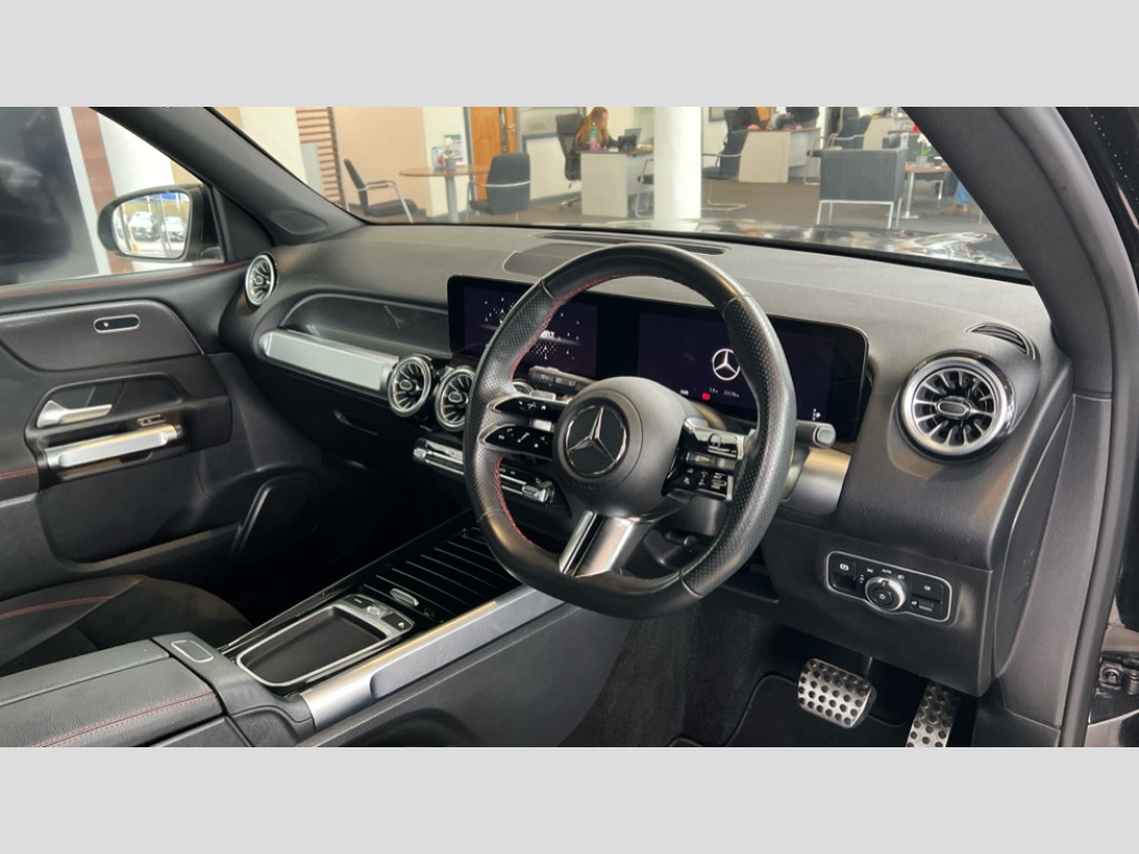 Mercedes-Benz Glb GLB 200 AMG Line Executive 5dr 7G-Tronic 10.25 inch touchscreen central media display, 10.25" Digital instrument cluster display screen, 12 ultrasonic sensors in front and rear bumpers, 180 degree reversing camera with parking guidelines, Assisted parking: reversing backwards into perpendicular and parallel parking spaces, Attention assist - Monitors steering behaviour and long journey fatigue, Bluetooth connection, Brake pad wear indicator warning light, Car wash mode, Convenience opening and closing, Direct steering, DYNAMIC SELECT with a choice of driving modes (ECO, Comfort, Sport and Individual), ECO start/stop function, Engine start/stop button, Fluid level warning indicator for fuel, oil, coolant and washer fluid, Hard disk navigation, Hey Mercedes Voice activation, Lamp failure indicator, Lane keep assist, MBUX navigation premium, Mercedes me connect including emergency call system, accident recovery, breakdown and maintenance management, Mercedes me remote services, Outside temperature gauge, Owners manual and service booklet in English, Pre-installation of private car share, Preinstallation for parking damage notification, Radio aerial integrated into front and rear windshields, Remote boot closing, Service indicator (ASSYST), Smartphone integration with Apple CarPlay and Android auto, Speed limit assist, Tailgate, Trip computer in multifunction display with current consumption indicator, Ultrasound sensors - positioned in the handle of the tailgate, Wireless charging, Comfort suspension with ride height lowering, Rear axle multi-link, 1 USB-C port in the oddments compartment (Charge + Data transfer), 2 USB-C ports for the rear on the centre armrest (Charge only), 2 USB-C ports under the front centre armrest (Charge + Data transfer), DAB digital radio tuner, MBUX multimedia system, Mercedes Benz sound system (100 W) with 6 speakers, Pre installation for Mercedes Benz Link, Adaptive brake lights, Adaptive high beam assist, AMG front apron with front splitter in the colour of the vehicle with chrome trim element, AMG rear apron with visible tailpipe trim and chrome trim element, AMG specific/dual flow exhaust pipes in chrome (non-functional), Auto dimming rear view mirror, Beltline trim and window line trim strip in high gloss aluminium, Black grained side sill trim with chrome inlay, Body coloured door handles, Electric adjustable and heated door mirrors with integrated LED side indicators, Electric folding door mirrors, Front and rear electric windows, Headlamp assist automatic headlamp activation, Heat insulating dark-tinted glass starting from B-pillar, Heated glass rear windscreen + timer control, High level LED third brake light, Interior mirror with black reading lamps and frameless, LED high performance headlamps with integrated LED daytime running lights, LED tail lamp, Polished aluminium roof rails, Radiator grille as a diamond grille with chrome pins and central Mercedes star, Rain sensor windscreen wipers, Rear fog lamp, Rear side wing doors, Rear wiper, Single louvre in matt grey with chrome inserts and black highlights, Two visible tailpipe trim elements exhaust, Ultrasonic sensors - positioned in the front and rear bumpers, Wheel arch liners in the colour of the vehicle, 12V socket in the oddments compartment, 3 seat bench in 2nd row, 3 twin spoke flattened multifunction steering wheel in nappa leather - horizontal twin spoke in high gloss black, vertical twin spoke in silver chrome, 4 way adjustable lumbar support, 40:20:40 split folding rear seats, Air vents with silver chrome surrounds, AMG floor mats, AMG sports pedals with brushed stainless steel surfaces and black rubber studs, Automatic child seat recognition sensor, Black roof lining, Door handles with chrome inserts, Fluorescent jacket, Front and rear headrests, Front centre armrest with stowage, Galvanised steering wheel gearshift paddles in silver chrome, Handle recess lighting, Heated front seats, Height adjustable head restraints, Height/reach adjustable steering column, Interior lighting - 64 colour Ambient lighting, Luggage net on driver/front passenger seat backrest, Single front passenger seat, Sports seats, Stowage compartment with retractable cover, Sun visors with illuminated vanity mirrors, THERMATIC automatic climate control, Third row of seats for two people on rear seat, Twin front cup holders, Two outer rear seat isofix and top tether child seat fixing points, Easy pack tailgate, Interior lighting with light and sight pack - GLB, Seat comfort package - GLB, 3 rear 3 point seatbelts, Active bonnet pedestrain safety measure which detects an impact and raises bonnet by 65mm, Active brake assist includes forward collision warning system with autonomous braking, Adaptive brake assist with hold function and hill start assist, Airbags - kneebag for driver, Anti-lock braking system (ABS) with brake assist, Black seatbelts, Bonnet with power domes, Childproof locks manually operated for rear doors and electrically operated for rear power windows, Crash responsive emergency lighting, Curve dynamic assist, Driver and front passenger head and sidebags, Driver and front passenger windowbags, Dual stage driver and front passenger airbags, Electric parking brake, Electronic stability programme with acceleration skid control, Front and rear seatbelt reminder, Front brake callipers with Mercedes Benz lettering, Front passenger seat occupancy sensor, Perforated front brake discs, Tyre pressure monitoring system, Warning triangle and first aid kit, Guard 360 degree vehicle protection - Anti theft alarm system, tow away protection with visual, acoustic warning and alarm, Interior monitoring system, Keyless Go Access and drive authorisation system, KEYLESS-GO starting function, Remote central locking and crash sensor with emergency opening function, Thatcham category 1 alarm system with immobiliser and interior protection, Vehicle key with KEYLESS GO functionality, Carbon structure trim, 19" A