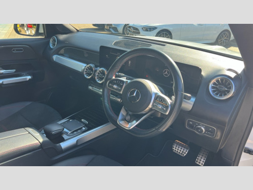 Mercedes-Benz Glb GLB 200 AMG Line Premium 5dr 7G-Tronic 10.25" Digital instrument cluster display screen, 10.25" Digital media screen display, Active lane keeping assist, Attention assist - Monitors steering behaviour and long journey fatigue, Brake pad wear indicator warning light, Car wash mode, Cruise control with limiter, DYNAMIC SELECT with a choice of driving modes (ECO, Comfort, Sport and Individual), ECO start/stop function, Fluid level warning indicator for fuel, oil, coolant and washer fluid, Hard disk navigation, Hey Mercedes Voice activation, Lamp failure indicator, Mercedes me connect including emergency call system, accident recovery, breakdown and maintenance management, Mercedes me remote services, Outside temperature gauge, Owners manual and service booklet in English, Parameter steering system, Pre-installation of private car share, Preinstallation for parking damage notification, Radio aerial integrated into front and rear windshields, Service indicator (ASSYST), Smartphone integration with Apple CarPlay and Android auto, Speed limit assist, Trip computer in multifunction display with current consumption indicator, Comfort suspension, Rear axle multi-link, DAB digital radio tuner, MBUX multimedia system with DAB digital radio and touchpad including satellite navigation, Mercedes Benz sound system (225 W) with 10 speakers, 1 central speaker, speakers on doors, a tweeter on door,one sub woofer + boost amplifier, Pre installation for Mercedes Benz Link, USB (type C) port in front stowage compartment, USB (type C) ports (2) in stowage compartment, Adaptive brake lights, Aerial for GPS, AMG bodystyling door panels black grained with chrome plated inserts, AMG bodystyling front apron with chrome splitter, AMG bodystyling rear apron with diffuser optics and chrome trim element, AMG specific front and rear bumper including underride guard in high gloss chrome, Beltline strips and weather strip in chrome, Body coloured bumpers, Body coloured door handles with chrome insert for keyless entry, Body coloured door mirror caps, Electric adjustable and heated door mirrors with integrated LED side indicators, Exhaust system with dual flow exhaust pipes (non-functional), Front and rear electric windows, Headlamp assist automatic headlamp activation, Heated glass rear windscreen + timer control, High level LED third brake light, Interior mirror with black reading lamps and frameless, LED high performance headlamps with integrated LED daytime running lights, LED tail lamp, Polished aluminium roof rails, Privacy glass with dark tinting on rear side windows and rear window, Radiator grille with pins in chrome and single louvre with chrome insert, Rain sensor windscreen wipers, Rear fog lamp, Rear side wing doors, Rear wiper, Two visible tailpipe trim elements exhaust, 3 seat bench in 2nd row, 3 spoke multifunction sport steering wheel in nappa leather, Air conditioning - Two zone thermotronic luxury automatic climate control with display, AMG sports pedals with brushed stainless steel surfaces and black rubber studs, Artico man-made leather/Microfibre Dinamica upholstery with red contrast stitching, Automatic child seat recognition sensor, Black floor mats with AMG lettering, Black roof lining, Fore/aft adjustment rear seats, Freight packaging with tie-down hooks, Front centre armrest with stowage, Front door sills with illuminated changeable cover, Front passenger grab handle with brushed side silver chrome, Front sports seats with adjustable head restraints, Galvanished gear shift paddles on steering wheel, Heated front seats, Height/reach adjustable steering column, Interior lighting - 64 colour Ambient lighting, Luggage net on driver/front passenger seat backrest, Net in front passenger footwell, Rear armrest with two integral cup holders for drinks, Rear seat easy entry, Single front passenger seat, Stowage compartment in centre console, Stowage compartment with retractable cover, Third row of seats for two people on rear seat, Touchpad on center console, Twin front cup holders, Two outer rear seat isofix and top tether child seat fixing points, Interior lighting with light and sight pack - GLB, Keyless go pack - GLB, Mirror pack - GLB, Parking pack - GLB, Seat comfort package - GLB, 3 rear 3 point seatbelts, Active bonnet pedestrain safety measure which detects an impact and raises bonnet by 65mm, Active brake assist includes forward collision warning system with autonomous braking, Adaptive brake assist with hold function and hill start assist, Airbags - kneebag for driver, Anti-lock braking system (ABS) with brake assist, Childproof locks manually operated for rear doors and electrically operated for rear power windows, Crash responsive emergency lighting, Curve dynamic assist, Driver and front passenger head and sidebags, Driver and front passenger windowbags, Dual stage driver and front passenger airbags, Electronic parking brake, Electronic stability programme with acceleration skid control, Front and rear seatbelt reminder, Front brake callipers with Mercedes Benz lettering, Front passenger seat occupancy sensor, Tyre pressure monitoring system, Warning triangle and first aid kit, Interior monitoring system, Remote central locking and crash sensor with emergency opening function, Thatcham category 1 alarm system with immobiliser and interior protection, Urban guard vehicle protection - Anti theft alarm system, tow away protection with visual and acoustic warning and alarm siren, Vehicle key with decorative surround in chrome, Black air vents with chrome surround, Carbon structure trim, 19" AMG 5 twin spoke light alloy wheels painted in high gloss black with high sheen finish, Summer tyres, Tirefit tyre sealant kit