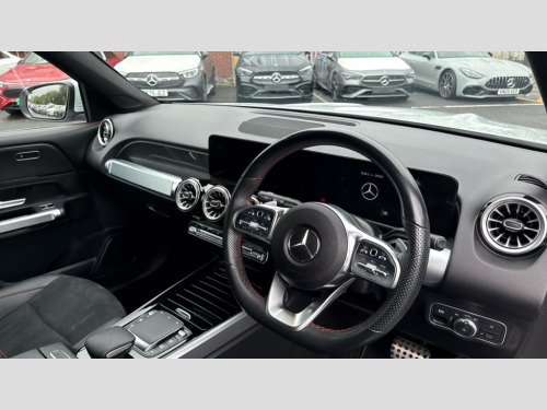 Mercedes-Benz Glb GLB 200 AMG Line Premium 5dr 7G-Tronic 10.25" Digital instrument cluster display screen, 10.25" Digital media screen display, Active lane keeping assist, Attention assist - Monitors steering behaviour and long journey fatigue, Brake pad wear indicator warning light, Car wash mode, Cruise control with limiter, DYNAMIC SELECT with a choice of driving modes (ECO, Comfort, Sport and Individual), ECO start/stop function, Fluid level warning indicator for fuel, oil, coolant and washer fluid, Hard disk navigation, Hey Mercedes Voice activation, Lamp failure indicator, Mercedes me connect including emergency call system, accident recovery, breakdown and maintenance management, Mercedes me remote services, Outside temperature gauge, Owners manual and service booklet in English, Parameter steering system, Pre-installation of private car share, Preinstallation for parking damage notification, Radio aerial integrated into front and rear windshields, Service indicator (ASSYST), Smartphone integration with Apple CarPlay and Android auto, Speed limit assist, Trip computer in multifunction display with current consumption indicator, Comfort suspension, Rear axle multi-link, DAB digital radio tuner, MBUX multimedia system with DAB digital radio and touchpad including satellite navigation, Mercedes Benz sound system (225 W) with 10 speakers, 1 central speaker, speakers on doors, a tweeter on door,one sub woofer + boost amplifier, Pre installation for Mercedes Benz Link, USB (type C) port in front stowage compartment, USB (type C) ports (2) in stowage compartment, Adaptive brake lights, Aerial for GPS, AMG bodystyling door panels black grained with chrome plated inserts, AMG bodystyling front apron with chrome splitter, AMG bodystyling rear apron with diffuser optics and chrome trim element, AMG specific front and rear bumper including underride guard in high gloss chrome, Beltline strips and weather strip in chrome, Body coloured bumpers, Body coloured door handles with chrome insert for keyless entry, Body coloured door mirror caps, Electric adjustable and heated door mirrors with integrated LED side indicators, Exhaust system with dual flow exhaust pipes (non-functional), Front and rear electric windows, Headlamp assist automatic headlamp activation, Heated glass rear windscreen + timer control, High level LED third brake light, Interior mirror with black reading lamps and frameless, LED high performance headlamps with integrated LED daytime running lights, LED tail lamp, Polished aluminium roof rails, Privacy glass with dark tinting on rear side windows and rear window, Radiator grille with pins in chrome and single louvre with chrome insert, Rain sensor windscreen wipers, Rear fog lamp, Rear side wing doors, Rear wiper, Two visible tailpipe trim elements exhaust, 3 seat bench in 2nd row, 3 spoke multifunction sport steering wheel in nappa leather, Air conditioning - Two zone thermotronic luxury automatic climate control with display, AMG sports pedals with brushed stainless steel surfaces and black rubber studs, Artico man-made leather/Microcut microfibre upholstery with red contrast stitching, Automatic child seat recognition sensor, Black floor mats with AMG lettering, Black roof lining, Fore/aft adjustment rear seats, Freight packaging with tie-down hooks, Front centre armrest with stowage, Front door sills with illuminated changeable cover, Front passenger grab handle with brushed side silver chrome, Front sports seats with adjustable head restraints, Galvanished gear shift paddles on steering wheel, Heated front seats, Height/reach adjustable steering column, Interior lighting - 64 colour Ambient lighting, Luggage net on driver/front passenger seat backrest, Net in front passenger footwell, Rear armrest with two integral cup holders for drinks, Rear seat easy entry, Single front passenger seat, Stowage compartment in centre console, Stowage compartment with retractable cover, Third row of seats for two people on rear seat, Touchpad on center console, Twin front cup holders, Two outer rear seat isofix and top tether child seat fixing points, Interior lighting with light and sight pack - GLB, Keyless go comfort pack - GLB with easy pack tailgate, Mirror pack - GLB, Parking pack - GLB, Seat comfort package - GLB, 3 rear 3 point seatbelts, Active bonnet pedestrain safety measure which detects an impact and raises bonnet by 65mm, Active brake assist includes forward collision warning system with autonomous braking, Adaptive brake assist with hold function and hill start assist, Airbags - kneebag for driver, Anti-lock braking system (ABS) with brake assist, Childproof locks manually operated for rear doors and electrically operated for rear power windows, Crash responsive emergency lighting, Curve dynamic assist, Driver and front passenger head and sidebags, Driver and front passenger windowbags, Dual stage driver and front passenger airbags, Electronic parking brake, Electronic stability programme with acceleration skid control, Front and rear seatbelt reminder, Front brake callipers with Mercedes Benz lettering, Front passenger seat occupancy sensor, Tyre pressure monitoring system, Warning triangle and first aid kit, Guard 360 degree vehicle protection - Anti theft alarm system, tow away protection with visual, acoustic warning and alarm, Interior monitoring system, KEYLESS-GO Spanner communicates with the vehicle within two metres of the door, Remote central locking and crash sensor with emergency opening function, Thatcham category 1 alarm system with immobiliser and interior protection, Vehicle key with decorative surround in chrome, Black air vents with chrome surround, Carbon structure trim, 19" AMG 5 twin spoke light alloy wheels painted in high gloss black with high sheen finish, Summer tyres, Tirefit tyre sealant kit