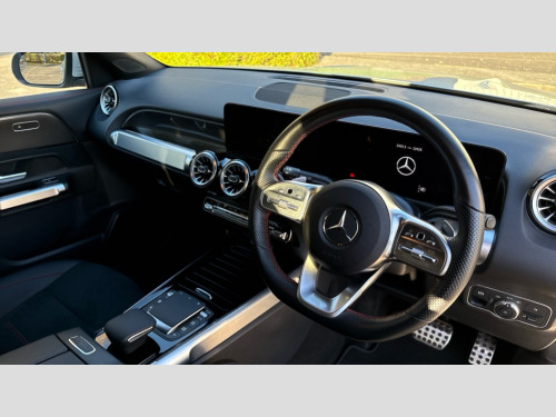 Mercedes-Benz Glb GLB 200 AMG Line Premium 5dr 7G-Tronic 10.25" Digital instrument cluster display screen, 10.25" Digital media screen display, Active lane keeping assist, Attention assist - Monitors steering behaviour and long journey fatigue, Brake pad wear indicator warning light, Car wash mode, Cruise control with limiter, DYNAMIC SELECT with a choice of driving modes (ECO, Comfort, Sport and Individual), ECO start/stop function, Fluid level warning indicator for fuel, oil, coolant and washer fluid, Hard disk navigation, Hey Mercedes Voice activation, Lamp failure indicator, Mercedes me connect including emergency call system, accident recovery, breakdown and maintenance management, Mercedes me remote services, Outside temperature gauge, Owners manual and service booklet in English, Parameter steering system, Pre-installation of private car share, Preinstallation for parking damage notification, Radio aerial integrated into front and rear windshields, Service indicator (ASSYST), Smartphone integration with Apple CarPlay and Android auto, Speed limit assist, Trip computer in multifunction display with current consumption indicator, Comfort suspension, Rear axle multi-link, DAB digital radio tuner, MBUX multimedia system with DAB digital radio and touchpad including satellite navigation, Mercedes Benz sound system (225 W) with 10 speakers, 1 central speaker, speakers on doors, a tweeter on door,one sub woofer + boost amplifier, Pre installation for Mercedes Benz Link, USB (type C) port in front stowage compartment, USB (type C) ports (2) in stowage compartment, Adaptive brake lights, Aerial for GPS, AMG bodystyling door panels black grained with chrome plated inserts, AMG bodystyling front apron with chrome splitter, AMG bodystyling rear apron with diffuser optics and chrome trim element, AMG specific front and rear bumper including underride guard in high gloss chrome, Beltline strips and weather strip in chrome, Body coloured bumpers, Body coloured door handles with chrome insert for keyless entry, Body coloured door mirror caps, Electric adjustable and heated door mirrors with integrated LED side indicators, Exhaust system with dual flow exhaust pipes (non-functional), Front and rear electric windows, Headlamp assist automatic headlamp activation, Heated glass rear windscreen + timer control, High level LED third brake light, Interior mirror with black reading lamps and frameless, LED high performance headlamps with integrated LED daytime running lights, LED tail lamp, Polished aluminium roof rails, Privacy glass with dark tinting on rear side windows and rear window, Radiator grille with pins in chrome and single louvre with chrome insert, Rain sensor windscreen wipers, Rear fog lamp, Rear side wing doors, Rear wiper, Two visible tailpipe trim elements exhaust, 3 seat bench in 2nd row, 3 spoke multifunction sport steering wheel in nappa leather, Air conditioning - Two zone thermotronic luxury automatic climate control with display, AMG sports pedals with brushed stainless steel surfaces and black rubber studs, Artico man-made leather/Microcut microfibre upholstery with red contrast stitching, Automatic child seat recognition sensor, Black floor mats with AMG lettering, Black roof lining, Fore/aft adjustment rear seats, Freight packaging with tie-down hooks, Front centre armrest with stowage, Front door sills with illuminated changeable cover, Front passenger grab handle with brushed side silver chrome, Front sports seats with adjustable head restraints, Galvanished gear shift paddles on steering wheel, Heated front seats, Height/reach adjustable steering column, Interior lighting - 64 colour Ambient lighting, Luggage net on driver/front passenger seat backrest, Net in front passenger footwell, Rear armrest with two integral cup holders for drinks, Rear seat easy entry, Single front passenger seat, Stowage compartment in centre console, Stowage compartment with retractable cover, Third row of seats for two people on rear seat, Touchpad on center console, Twin front cup holders, Two outer rear seat isofix and top tether child seat fixing points, Interior lighting with light and sight pack - GLB, Keyless go comfort pack - GLB with easy pack tailgate, Mirror pack - GLB, Parking pack - GLB, Seat comfort package - GLB, 3 rear 3 point seatbelts, Active bonnet pedestrain safety measure which detects an impact and raises bonnet by 65mm, Active brake assist includes forward collision warning system with autonomous braking, Adaptive brake assist with hold function and hill start assist, Airbags - kneebag for driver, Anti-lock braking system (ABS) with brake assist, Childproof locks manually operated for rear doors and electrically operated for rear power windows, Crash responsive emergency lighting, Curve dynamic assist, Driver and front passenger head and sidebags, Driver and front passenger windowbags, Dual stage driver and front passenger airbags, Electronic parking brake, Electronic stability programme with acceleration skid control, Front and rear seatbelt reminder, Front brake callipers with Mercedes Benz lettering, Front passenger seat occupancy sensor, Tyre pressure monitoring system, Warning triangle and first aid kit, Guard 360 degree vehicle protection - Anti theft alarm system, tow away protection with visual, acoustic warning and alarm, Interior monitoring system, KEYLESS-GO Spanner communicates with the vehicle within two metres of the door, Remote central locking and crash sensor with emergency opening function, Thatcham category 1 alarm system with immobiliser and interior protection, Vehicle key with decorative surround in chrome, Black air vents with chrome surround, Carbon structure trim, 19" AMG 5 twin spoke light alloy wheels painted in high gloss black with high sheen finish, Summer tyres, Tirefit tyre sealant kit