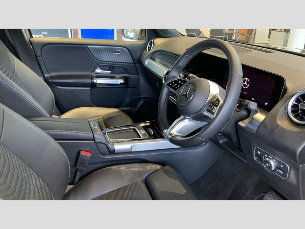 Mercedes-Benz Glb GLB 200 Sport Executive 5dr 7G-Tronic 10.25 inch touchscreen central media display, 10.25" Digital instrument cluster display screen, Attention assist - Monitors steering behaviour and long journey fatigue, Blind spot assist, Bluetooth connection, Brake pad wear indicator warning light, Car wash mode, Direct steering, DYNAMIC SELECT with a choice of driving modes (ECO, Comfort, Sport and Individual), ECO start/stop function, Exit warning function, Fluid level warning indicator for fuel, oil, coolant and washer fluid, Hard disk navigation, Hey Mercedes Voice activation, Lamp failure indicator, Lane keep assist, MBUX navigation premium, Mercedes me connect including emergency call system, accident recovery, breakdown and maintenance management, Mercedes me remote services, Outside temperature gauge, Owners manual and service booklet in English, Pre-installation of private car share, Preinstallation for parking damage notification, Radio aerial integrated into front and rear windshields, Service indicator (ASSYST), Smartphone integration with Apple CarPlay and Android auto, Speed limit assist, Tailgate, Trip computer in multifunction display with current consumption indicator, Comfort suspension, Rear axle multi-link, DAB digital radio tuner, MBUX multimedia system, Mercedes Benz sound system (100 W) with 6 speakers, Pre installation for Mercedes Benz Link, Adaptive brake lights, Adaptive high beam assist, Beltline trim and window line trim strip in chrome, Body coloured door handles, Electric adjustable and heated door mirrors with integrated LED side indicators, Exhaust system with dual flow exhaust pipes (non-functional), Front and rear electric windows, Headlamp assist automatic headlamp activation, Heat insulating dark tinted glass for rear side windows and rear window, Heated glass rear windscreen + timer control, High level LED third brake light, Interior mirror with black reading lamps and frameless, LED high performance headlamps with integrated LED daytime running lights, LED tail lamp, Rain sensor windscreen wipers with two sensitivity stages, Rear fog lamp, Rear side wing doors, Rear wiper, Roof rails painted black, Simulated under guard at the front and rear in high-gloss black, Two visible tailpipe trim elements exhaust, 3 seat bench in 2nd row, 3 spoke multifunction sport steering wheel in ARTICO man made leather, 4 way adjustable lumbar support, 40:20:40 split folding rear seats, Air vents with silver chrome surrounds, Artico man-made leather/Fabric upholstery, Automatic child seat recognition sensor, Black roof lining, Comfort seats, Fluorescent jacket, Front and rear headrests, Front centre armrest with stowage, Heated front seats, Height/reach adjustable steering column, Luggage net on driver/front passenger seat backrest, Single front passenger seat, Steering wheel gearshift paddles, Stowage compartment in centre console with retractable cover and double cupholder and 12 V socket, Sun visors with illuminated vanity mirrors, THERMATIC automatic climate control, Third row of seats for two people on rear seat, Twin front cup holders, Two outer rear seat isofix and top tether child seat fixing points, Velour floor mats, Easy pack tailgate, Interior lighting with light and sight pack - GLB, Mirror package - GLB, Night Package - GLB, Parking Package with reversing camera - GLB, Seat comfort package - GLB, USB package plus - GLB, 3 rear 3 point seatbelts, Active bonnet pedestrain safety measure which detects an impact and raises bonnet by 65mm, Active brake assist includes forward collision warning system with autonomous braking, Adaptive brake assist with hold function and hill start assist, Airbags - kneebag for driver, Anti-lock braking system (ABS) with brake assist, Black seatbelts, Bonnet with power domes, Childproof locks manually operated for rear doors and electrically operated for rear power windows, Crash responsive emergency lighting, Curve dynamic assist, Driver and front passenger head and sidebags, Driver and front passenger windowbags, Dual stage driver and front passenger airbags, Electric parking brake, Electronic stability programme with acceleration skid control, Front and rear seatbelt reminder, Front passenger seat occupancy sensor, Tyre pressure monitoring system, Warning triangle and first aid kit, Guard 360 degree vehicle protection - Anti theft alarm system, tow away protection with visual, acoustic warning and alarm, Interior monitoring system, KEYLESS-GO starting function, Remote central locking and crash sensor with emergency opening function, Thatcham category 1 alarm system with immobiliser and interior protection, Star pattern trim elements, 18" 5 twin spoke light alloy wheels aerodynamically optimised and painted in black with a high-sheen finish 01R, Summer tyres, Tirefit tyre sealant kit