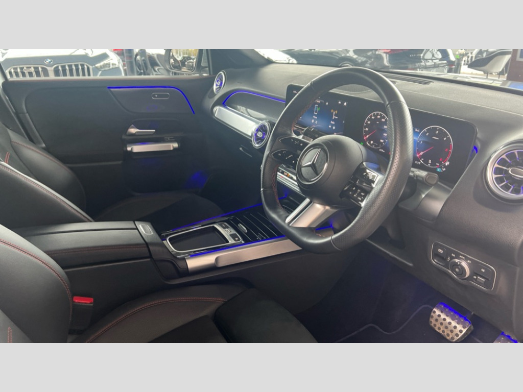 Mercedes-Benz Glb GLB 220d 4Matic AMG Line Premium 5dr 8G-Tronic 10.25 inch touchscreen central media display, 10.25" Digital instrument cluster display screen, 12 ultrasonic sensors in front and rear bumpers, 180 degree reversing camera with parking guidelines, Additional drive program "OFF-ROAD", Assisted parking: reversing backwards into perpendicular and parallel parking spaces, Attention assist - Monitors steering behaviour and long journey fatigue, Blind spot assist, Bluetooth connection, Brake pad wear indicator warning light, Car wash mode, Convenience opening and closing, Direct steering, DYNAMIC SELECT with a choice of driving modes (ECO, Comfort, Sport and Individual), ECO start/stop function, Engine start/stop button, Exit warning function, Fluid level warning indicator for fuel, oil, coolant and washer fluid, Hard disk navigation, Hey Mercedes Voice activation, Lamp failure indicator, Lane keep assist, MBUX augmented reality for navigation, MBUX navigation premium, Mercedes me connect including emergency call system, accident recovery, breakdown and maintenance management, Mercedes me remote services, Outside temperature gauge, Owners manual and service booklet in English, Pre-installation of private car share, Preinstallation for parking damage notification, Radio aerial integrated into front and rear windshields, Remote boot closing, Service indicator (ASSYST), Smartphone integration with Apple CarPlay and Android auto, Speed limit assist, Tailgate, Trip computer in multifunction display with current consumption indicator, Ultrasound sensors - positioned in the handle of the tailgate, Wireless charging, Comfort suspension with ride height lowering, Rear axle multi-link, 1 USB-C port in the oddments compartment (Charge + Data transfer), 2 USB-C ports for the rear on the centre armrest (Charge only), 2 USB-C ports under the front centre armrest (Charge + Data transfer), DAB digital radio tuner, MBUX multimedia system, Mercedes Benz sound system (225 W) with 10 speakers, 1 central speaker, speakers on doors, a tweeter on door,one sub woofer + boost amplifier, Pre installation for Mercedes Benz Link, Adaptive brake lights, Adaptive high beam assist, AMG front apron with front splitter in the colour of the vehicle with chrome trim element, AMG rear apron with visible tailpipe trim and chrome trim element, AMG specific/dual flow exhaust pipes in chrome (non-functional), Auto dimming rear view mirror, Beltline trim and window line trim strip in high gloss aluminium, Black grained side sill trim with chrome inlay, Body coloured door handles, Electric adjustable and heated door mirrors with integrated LED side indicators, Electric folding door mirrors, Front and rear electric windows, Headlamp assist automatic headlamp activation, Heat insulating dark-tinted glass starting from B-pillar, Heated glass rear windscreen + timer control, High level LED third brake light, Illuminated door sill panels with Mercedes-Benz lettering, Interior mirror with black reading lamps and frameless, LED high performance headlamps with integrated LED daytime running lights, LED tail lamp, Polished aluminium roof rails, Radiator grille as a diamond grille with chrome pins and central Mercedes star, Rain sensor windscreen wipers, Rear fog lamp, Rear side wing doors, Rear wiper, Single louvre in matt grey with chrome inserts and black highlights, Two visible tailpipe trim elements exhaust, Ultrasonic sensors - positioned in the front and rear bumpers, Wheel arch liners in the colour of the vehicle, 12V socket in the oddments compartment, 3 seat bench in 2nd row, 3 twin spoke flattened multifunction steering wheel in nappa leather - horizontal twin spoke in high gloss black, vertical twin spoke in silver chrome, 4 way adjustable lumbar support, 40:20:40 split folding rear seats, Air conditioning - Two zone thermotronic luxury automatic climate control with display, Air vents with silver chrome surrounds, AMG floor mats, AMG sports pedals with brushed stainless steel surfaces and black rubber studs, Automatic child seat recognition sensor, Black roof lining, Door handles with chrome inserts, Fluorescent jacket, Front and rear headrests, Front centre armrest with stowage, Galvanised steering wheel gearshift paddles in silver chrome, Handle recess lighting, Heated front seats, Height adjustable head restraints, Height/reach adjustable steering column, Interior lighting - 64 colour Ambient lighting, Luggage net on driver/front passenger seat backrest, Single front passenger seat, Sports seats, Stowage compartment with retractable cover, Sun visors with illuminated vanity mirrors, Third row of seats for two people on rear seat, Twin front cup holders, Two outer rear seat isofix and top tether child seat fixing points, Easy pack tailgate, Interior lighting with light and sight pack - GLB, Seat comfort package - GLB, 3 rear 3 point seatbelts, Active bonnet pedestrain safety measure which detects an impact and raises bonnet by 65mm, Active brake assist includes forward collision warning system with autonomous braking, Adaptive brake assist with hold function and hill start assist, Airbags - kneebag for driver, Anti-lock braking system (ABS) with brake assist, Black seatbelts, Bonnet with power domes, Childproof locks manually operated for rear doors and electrically operated for rear power windows, Crash responsive emergency lighting, Curve dynamic assist, Downhill speed regulation (DSR), Driver and front passenger head and sidebags, Driver and front passenger windowbags, Dual stage driver and front passenger airbags, Electric parking brake, Electronic stability programme with acceleration skid control, Front and rear seatbelt reminder, Front brake callipers with Mercedes Benz lettering, Front passenger seat occupancy sensor, Perforated front brake discs, Tyre pressure monitoring system, Warning triangle and first aid kit, Guard 360 degree vehicle protection - Anti theft alarm system, tow away protection with visua