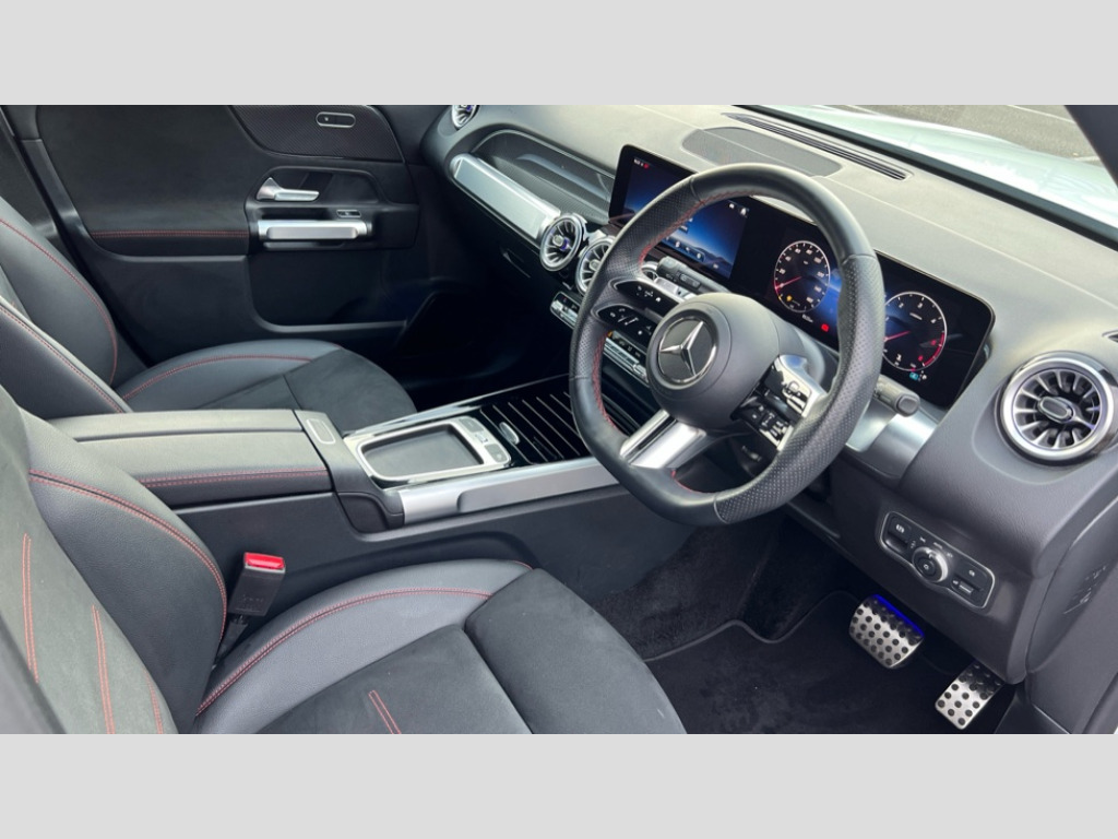 Mercedes-Benz Glb GLB 220d 4Matic AMG Line Premium 5dr 8G-Tronic 10.25 inch touchscreen central media display, 10.25" Digital instrument cluster display screen, 12 ultrasonic sensors in front and rear bumpers, 180 degree reversing camera with parking guidelines, Additional drive program "OFF-ROAD", Assisted parking: reversing backwards into perpendicular and parallel parking spaces, Attention assist - Monitors steering behaviour and long journey fatigue, Blind spot assist, Bluetooth connection, Brake pad wear indicator warning light, Car wash mode, Convenience opening and closing, Direct steering, DYNAMIC SELECT with a choice of driving modes (ECO, Comfort, Sport and Individual), ECO start/stop function, Engine start/stop button, Exit warning function, Fluid level warning indicator for fuel, oil, coolant and washer fluid, Hard disk navigation, Hey Mercedes Voice activation, Lamp failure indicator, Lane keep assist, MBUX navigation premium, Mercedes me connect including emergency call system, accident recovery, breakdown and maintenance management, Mercedes me remote services, Outside temperature gauge, Owners manual and service booklet in English, Pre-installation of private car share, Preinstallation for parking damage notification, Radio aerial integrated into front and rear windshields, Remote boot closing, Service indicator (ASSYST), Smartphone integration with Apple CarPlay and Android auto, Speed limit assist, Tailgate, Trip computer in multifunction display with current consumption indicator, Ultrasound sensors - positioned in the handle of the tailgate, Wireless charging, Comfort suspension with ride height lowering, Rear axle multi-link, 1 USB-C port in the oddments compartment (Charge + Data transfer), 2 USB-C ports for the rear on the centre armrest (Charge only), 2 USB-C ports under the front centre armrest (Charge + Data transfer), DAB digital radio tuner, MBUX multimedia system, Mercedes Benz sound system (225 W) with 10 speakers, 1 central speaker, speakers on doors, a tweeter on door,one sub woofer + boost amplifier, Pre installation for Mercedes Benz Link, Adaptive brake lights, Adaptive high beam assist, AMG front apron with front splitter in the colour of the vehicle with chrome trim element, AMG rear apron with visible tailpipe trim and chrome trim element, AMG specific/dual flow exhaust pipes in chrome (non-functional), Auto dimming rear view mirror, Beltline trim and window line trim strip in high gloss aluminium, Black grained side sill trim with chrome inlay, Body coloured door handles, Electric adjustable and heated door mirrors with integrated LED side indicators, Electric folding door mirrors, Front and rear electric windows, Headlamp assist automatic headlamp activation, Heat insulating dark-tinted glass starting from B-pillar, Heated glass rear windscreen + timer control, High level LED third brake light, Illuminated door sill panels with Mercedes-Benz lettering, Interior mirror with black reading lamps and frameless, LED high performance headlamps with integrated LED daytime running lights, LED tail lamp, Polished aluminium roof rails, Radiator grille as a diamond grille with chrome pins and central Mercedes star, Rain sensor windscreen wipers, Rear fog lamp, Rear side wing doors, Rear wiper, Single louvre in matt grey with chrome inserts and black highlights, Two visible tailpipe trim elements exhaust, Ultrasonic sensors - positioned in the front and rear bumpers, Wheel arch liners in the colour of the vehicle, 12V socket in the oddments compartment, 3 seat bench in 2nd row, 3 twin spoke flattened multifunction steering wheel in nappa leather - horizontal twin spoke in high gloss black, vertical twin spoke in silver chrome, 4 way adjustable lumbar support, 40:20:40 split folding rear seats, Air conditioning - Two zone thermotronic luxury automatic climate control with display, Air vents with silver chrome surrounds, AMG floor mats, AMG sports pedals with brushed stainless steel surfaces and black rubber studs, Automatic child seat recognition sensor, Black roof lining, Door handles with chrome inserts, Fluorescent jacket, Front and rear headrests, Front centre armrest with stowage, Galvanised steering wheel gearshift paddles in silver chrome, Handle recess lighting, Heated front seats, Height adjustable head restraints, Height/reach adjustable steering column, Interior lighting - 64 colour Ambient lighting, Luggage net on driver/front passenger seat backrest, Single front passenger seat, Sports seats, Stowage compartment with retractable cover, Sun visors with illuminated vanity mirrors, Third row of seats for two people on rear seat, Twin front cup holders, Two outer rear seat isofix and top tether child seat fixing points, Easy pack tailgate, Interior lighting with light and sight pack - GLB, Seat comfort package - GLB, 3 rear 3 point seatbelts, Active bonnet pedestrain safety measure which detects an impact and raises bonnet by 65mm, Active brake assist includes forward collision warning system with autonomous braking, Adaptive brake assist with hold function and hill start assist, Airbags - kneebag for driver, Anti-lock braking system (ABS) with brake assist, Black seatbelts, Bonnet with power domes, Childproof locks manually operated for rear doors and electrically operated for rear power windows, Crash responsive emergency lighting, Curve dynamic assist, Downhill speed regulation (DSR), Driver and front passenger head and sidebags, Driver and front passenger windowbags, Dual stage driver and front passenger airbags, Electric parking brake, Electronic stability programme with acceleration skid control, Front and rear seatbelt reminder, Front brake callipers with Mercedes Benz lettering, Front passenger seat occupancy sensor, Perforated front brake discs, Tyre pressure monitoring system, Warning triangle and first aid kit, Guard 360 degree vehicle protection - Anti theft alarm system, tow away protection with visual, acoustic warning and alarm, Interior