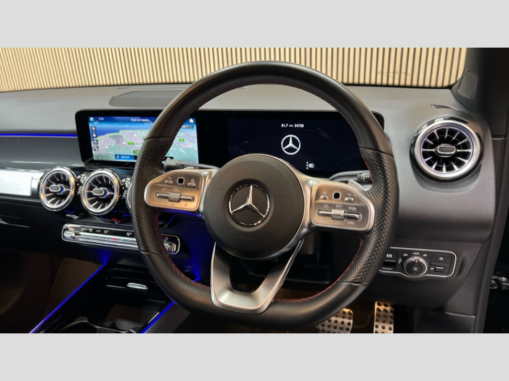 Mercedes-Benz Glb GLB 220d 4Matic AMG Line Premium 5dr 8G-Tronic 10.25" Digital instrument cluster display screen, 10.25" Digital media screen display, Active lane keeping assist, Attention assist - Monitors steering behaviour and long journey fatigue, Brake pad wear indicator warning light, Car wash mode, Cruise control with limiter, DYNAMIC SELECT with a choice of driving modes (ECO, Comfort, Sport and Individual), ECO start/stop function, Fluid level warning indicator for fuel, oil, coolant and washer fluid, Hard disk navigation, Hey Mercedes Voice activation, Lamp failure indicator, Mercedes me connect including emergency call system, accident recovery, breakdown and maintenance management, Mercedes me remote services, Outside temperature gauge, Owners manual and service booklet in English, Parameter steering system, Pre-installation of private car share, Preinstallation for parking damage notification, Radio aerial integrated into front and rear windshields, Service indicator (ASSYST), Smartphone integration with Apple CarPlay and Android auto, Speed limit assist, Trip computer in multifunction display with current consumption indicator, 23.8 litre AdBlue fuel tank, Comfort suspension, Rear axle multi-link, DAB digital radio tuner, MBUX multimedia system with DAB digital radio and touchpad including satellite navigation, Mercedes Benz sound system (225 W) with 10 speakers, 1 central speaker, speakers on doors, a tweeter on door,one sub woofer + boost amplifier, Pre installation for Mercedes Benz Link, USB (type C) port in front stowage compartment, USB (type C) ports (2) in stowage compartment, Adaptive brake lights, Aerial for GPS, AMG bodystyling door panels black grained with chrome plated inserts, AMG bodystyling front apron with chrome splitter, AMG bodystyling rear apron with diffuser optics and chrome trim element, AMG specific front and rear bumper including underride guard in high gloss chrome, Beltline strips and weather strip in chrome, Body coloured bumpers, Body coloured door handles with chrome insert for keyless entry, Body coloured door mirror caps, Electric adjustable and heated door mirrors with integrated LED side indicators, Exhaust system with dual flow exhaust pipes (non-functional), Front and rear electric windows, Headlamp assist automatic headlamp activation, Heated glass rear windscreen + timer control, High level LED third brake light, Interior mirror with black reading lamps and frameless, LED high performance headlamps with integrated LED daytime running lights, LED tail lamp, Polished aluminium roof rails, Privacy glass with dark tinting on rear side windows and rear window, Radiator grille with pins in chrome and single louvre with chrome insert, Rain sensor windscreen wipers, Rear fog lamp, Rear side wing doors, Rear wiper, Two visible tailpipe trim elements exhaust, 3 seat bench in 2nd row, 3 spoke multifunction sport steering wheel in nappa leather, Air conditioning - Two zone thermotronic luxury automatic climate control with display, AMG sports pedals with brushed stainless steel surfaces and black rubber studs, Artico man-made leather/Microcut microfibre upholstery with red contrast stitching, Automatic child seat recognition sensor, Black floor mats with AMG lettering, Black roof lining, Fore/aft adjustment rear seats, Freight packaging with tie-down hooks, Front centre armrest with stowage, Front door sills with illuminated changeable cover, Front passenger grab handle with brushed side silver chrome, Front sports seats with adjustable head restraints, Galvanished gear shift paddles on steering wheel, Heated front seats, Height/reach adjustable steering column, Interior lighting - 64 colour Ambient lighting, Luggage net on driver/front passenger seat backrest, Net in front passenger footwell, Rear armrest with two integral cup holders for drinks, Rear seat easy entry, Single front passenger seat, Stowage compartment in centre console, Stowage compartment with retractable cover, Third row of seats for two people on rear seat, Touchpad on center console, Twin front cup holders, Two outer rear seat isofix and top tether child seat fixing points, Interior lighting with light and sight pack - GLB, Keyless go comfort pack - GLB with easy pack tailgate, Mirror pack - GLB, Off-road engineering package - GLB, Parking pack - GLB, Seat comfort package - GLB, 3 rear 3 point seatbelts, Active bonnet pedestrain safety measure which detects an impact and raises bonnet by 65mm, Active brake assist includes forward collision warning system with autonomous braking, Adaptive brake assist with hold function and hill start assist, Airbags - kneebag for driver, Anti-lock braking system (ABS) with brake assist, Childproof locks manually operated for rear doors and electrically operated for rear power windows, Crash responsive emergency lighting, Curve dynamic assist, Driver and front passenger head and sidebags, Driver and front passenger windowbags, Dual stage driver and front passenger airbags, Electronic parking brake, Electronic stability programme with acceleration skid control, Front and rear seatbelt reminder, Front brake callipers with Mercedes Benz lettering, Front passenger seat occupancy sensor, Perforated and ventilated front brake discs, Tyre pressure monitoring system, Warning triangle and first aid kit, Guard 360 degree vehicle protection - Anti theft alarm system, tow away protection with visual, acoustic warning and alarm, Interior monitoring system, KEYLESS-GO Spanner communicates with the vehicle within two metres of the door, Remote central locking and crash sensor with emergency opening function, Thatcham category 1 alarm system with immobiliser and interior protection, Vehicle key with decorative surround in chrome, Black air vents with chrome surround, Carbon structure trim, 19" AMG 5 twin spoke light alloy wheels painted in high gloss black with high sheen finish, Summer tyres, Tirefit tyre sealant kit