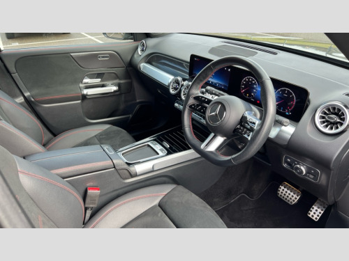 Mercedes-Benz Glb GLB 220d 4Matic AMG Line Premium 5dr 8G-Tronic 10.25 inch touchscreen central media display, 10.25" Digital instrument cluster display screen, Attention assist - Monitors steering behaviour and long journey fatigue, Blind spot assist, Bluetooth connection, Brake pad wear indicator warning light, Car wash mode, Direct steering, DYNAMIC SELECT with a choice of driving modes (ECO, Comfort, Sport and Individual), ECO start/stop function, Exit warning function, Fingerprint scanner, Fluid level warning indicator for fuel, oil, coolant and washer fluid, Hard disk navigation, Hey Mercedes Voice activation, Lamp failure indicator, Lane keep assist, MBUX navigation premium, Mercedes me connect including emergency call system, accident recovery, breakdown and maintenance management, Mercedes me remote services, Outside temperature gauge, Owners manual and service booklet in English, Pre-installation of private car share, Preinstallation for parking damage notification, Radio aerial integrated into front and rear windshields, Service indicator (ASSYST), Smartphone integration with Apple CarPlay and Android auto, Speed limit assist, Tailgate, Trip computer in multifunction display with current consumption indicator, Wireless charging, Comfort suspension with ride height lowering, Rear axle multi-link, DAB digital radio tuner, MBUX multimedia system, Mercedes Benz sound system (225 W) with 10 speakers, 1 central speaker, speakers on doors, a tweeter on door,one sub woofer + boost amplifier, Pre installation for Mercedes Benz Link, Adaptive brake lights, Adaptive high beam assist, AMG front apron with front splitter in the colour of the vehicle with chrome trim element, AMG rear apron with visible tailpipe trim and chrome trim element, AMG specific/dual flow exhaust pipes in chrome (non-functional), Beltline trim and window line trim strip in high gloss aluminium, Black grained side sill trim with chrome inlay, Body coloured door handles, Electric adjustable and heated door mirrors with integrated LED side indicators, Front and rear electric windows, Headlamp assist automatic headlamp activation, Heat insulating dark tinted glass for rear side windows and rear window, Heated glass rear windscreen + timer control, High level LED third brake light, Illuminated door sill panels with Mercedes-Benz lettering, Interior mirror with black reading lamps and frameless, LED daytime running lights, LED tail lamp, Polished aluminium roof rails, Radiator grille as a diamond grille with chrome pins and central Mercedes star, Rain sensor windscreen wipers, Rear fog lamp, Rear side wing doors, Rear wiper, Single louvre in matt grey with chrome inserts and black highlights, Two visible tailpipe trim elements exhaust, Wheel arch liners in the colour of the vehicle, 3 seat bench in 2nd row, 3 twin spoke flattened multifunction steering wheel in nappa leather - horizontal twin spoke in high gloss black, vertical twin spoke in silver chrome, 4 way adjustable lumbar support, 40:20:40 split folding rear seats, Air vents with silver chrome surrounds, AMG floor mats, AMG sports pedals with brushed stainless steel surfaces and black rubber studs, Automatic child seat recognition sensor, Black roof lining, Electrically adjustable front memory seats, Fluorescent jacket, Front and rear headrests, Front centre armrest with stowage, Galvanised steering wheel gearshift paddles in silver chrome, Heated front seats, Height adjustable head restraints, Height/reach adjustable steering column, Interior lighting - 64 colour Ambient lighting, Luggage net on driver/front passenger seat backrest, Single front passenger seat, Sports seats, Stowage compartment in centre console with retractable cover and double cupholder and 12 V socket, Sun visors with illuminated vanity mirrors, THERMOTRONIC automatic climate control, Third row of seats for two people on rear seat, Twin front cup holders, Two outer rear seat isofix and top tether child seat fixing points, Driving assistance package with active steering assist - GLB, Easy pack tailgate, Engineering package - GLB, Interior lighting with light and sight pack - GLB, KEYLESS-GO Comfort package - GLB, Mirror package - GLB, Off road engineering pack - GLB, Parking Package with reversing camera - GLB, Seat comfort package - GLB, USB package plus - GLB, 3 rear 3 point seatbelts, Active bonnet pedestrain safety measure which detects an impact and raises bonnet by 65mm, Active brake assist includes forward collision warning system with autonomous braking, Adaptive brake assist with hold function and hill start assist, Airbags - kneebag for driver, Anti-lock braking system (ABS) with brake assist, Black seatbelts, Bonnet with power domes, Childproof locks manually operated for rear doors and electrically operated for rear power windows, Crash responsive emergency lighting, Curve dynamic assist, Driver and front passenger head and sidebags, Driver and front passenger windowbags, Dual stage driver and front passenger airbags, Electric parking brake, Electronic stability programme with acceleration skid control, Front and rear seatbelt reminder, Front brake callipers with Mercedes Benz lettering, Front passenger seat occupancy sensor, Off road light, Perforated front brake discs, Tyre pressure monitoring system, Warning triangle and first aid kit, Guard 360 degree vehicle protection - Anti theft alarm system, tow away protection with visual, acoustic warning and alarm, Interior monitoring system, KEYLESS-GO starting function, Remote central locking and crash sensor with emergency opening function, Thatcham category 1 alarm system with immobiliser and interior protection, Carbon structure trim, 20" AMG multi spoke light alloy wheels aerodynamically optimised and painted in black with a high-sheen finish RVU, Summer tyres, Tirefit tyre sealant kit