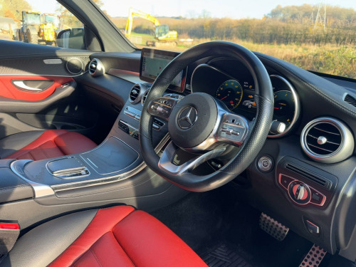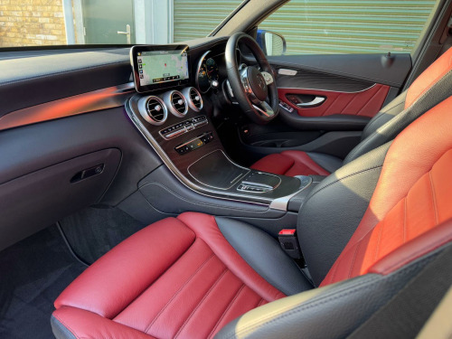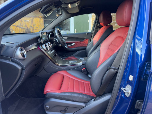 Winchmore Car Sales Ltd are delighted to be able to offer you this Stunning & Sporty New Shape Mercedes GLC 220d AMG COUPE with PREMIUM PACKAGE Including Virtual Electronic Cockpit/Dashboard, 20'' Multi-Spoke Alloy Wheels & Aluminium Running Boards!! This Beautiful Example has covered 47,000 miles with a FULL MERCEDES SERVICE HISTORY!!!! It is beautifully finished in Eye Catching Brilliant Blue Metallic and Contrasted by a Full Black & Red Leather Interior with Black Stitching. This vehicle is offered with original manufacturers owners manuals and Spare Key. For your convenience we also offer very competitive rates on vehicle finance, all subject to acceptance. All our vehicles are HPI clear and need to be seen to be appreciated! This vehicle is VAT QUALIFYING, THE PRICE IS INCLUDING VAT & Could be reclaimed! Worldwide Export Also Available If Required!! ather - cranberry red-black, 20in alloy wheels - amg multi-spoke design - painted titanium grey with high-sheen finish, abs - anti-lock braking system, amg bodystyling - amg front apron with sporty air intakes and chrome trim elements, attention assist, active bonnet - pedestrian safety measure which detects an impact and raises bonnet, active parking assist including parktronic, adaptive brake lights, adaptive brake system with hold function and brake drying in the wet, alarm system with immobiliser and interior protection, ambient lighting, augmented reality navigation, automatic child seat recognition sensor, brake calipers - with mercedes-benz lettering and perforated front brake discs, chrome trim - front - side and rear, collision prevention assist plus, dab digital radio tuner, direct-steer speed sensitive steering, door mirrors - electrically adjustable and heated, dual-stage airbags - driver and front passenger - driver kneebag and windowbags for driver - front passenger and rear passengers, dynamic select with a choice of driving modes - comfort - eco - sport - sport plus - individual, easy-pack load compartment cover - removable, easy-pack powered tailgate, electric parking brake, electric windows - front, electronic stability programme-esp with curve dynamic assist and crosswind assist, floor mats - amg with edging and embroidered amg lettering, front door sill panels with mercedes-benz lettering, hard-disk navigation, headlamp assist - automatic headlamp activation, hey mercedes - voice activation, isofix child seat attachment points with top tether in rear - two outer seats, instrument cluster with 12.3in digital instrument cluster display, interior lighting package, keyless-go starting function, led tail lights, live traffic and map updates, mbux multimedia system, multibeam led headlights, media display - 10.25-inch with touchscreen, mercedes connect me - standard services, mercedes me connect - vehicle set-up and vehicle monitoring, mercedes-benz sound system - 225 w, mirror package, navigation services, outside temperature display - rear seat belt status indicator, pre-installation for mercedes-benz link, privacy glass - dark glass from b-pillar backwards, radiator grille - diamond grille, rain sensing windscreen wipers, remote boot release, reversing camera, roof liner in black fabric, running boards, seats - front electrically adjustable, seats - heated front, service indicator assyst, smartphone integration, sports pedals in brushed stainless steel with rubber studs, sports suspension tuned for improved handling and driving dynamics, steering column - manually adjustable for height and reach, steering column gear selector - direct select steering wheel gearshift paddles - speedtronic cruise control with variable speed limiter, steering wheel - 3-spoke multifunction amg steering wheel in nappa leather, stowage - double cup holder in centre console, stowage - illuminated and lockable glove compartment, stowage package, tirefit tyre-sealant kit, tailpipe - two chrome-plated tailpipe trim elements, thermatic - automatic climate control, tinted glass all round - single-layer safety glass, traffic sign assist, trim - black open-pore ash wood, two usb ports in centre console, tyre pressure monitoring system, wireless charging