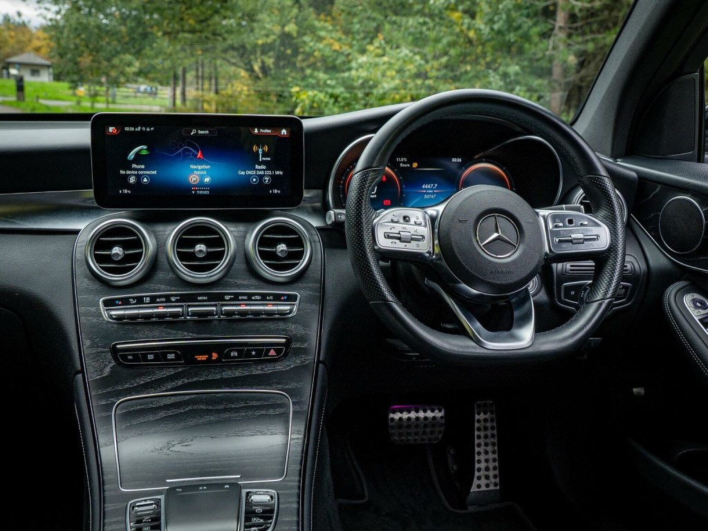 FREE DELIVERY WITHIN 200 MILES – Here we have a stunning Mercedes GLC220d AMG Line Premium finished in Obsidian Black Metallic. This being the Premium trim means it comes with fantastic spec from the factory, with things such as: Digital Dispays -- 20 Multispoke Alloy Wheels -- Ambient Lighting -- DAB Radio -- Dynamic Select with Drive Modes -- MBUX Multimedia System -- Privacy Glass -- Rain Sensors -- Running Boards -- Smartphone Integration -- Heated Seats and plenty more. This example also comes with optional extras such as: Black Leather Interior – Night Package Dechrome – Panamericana GT Style Front Grille – and more. This car has had 4 services in total (all carried out by Mercedes) last carried out at 49,650 miles. The MOT expires October 2026. 3 Month £2000 Claim Limit Warranty is included with the sale but the option to upgrade to a 12M, 24M, & 36M £5000 Claim Limit Nation Wide Premium Autoguard Warranty with Breakdown Cover is available. Multiple Finance Options, Competitive Part Exchange Prices. All Cars Are HPI, MotorCheck & Experian Clear. Further Vehicle Delivery Options Also Available. All Rights Reserved - Whitethor cars exercise all reasonable care and skill in providing you with vehicle information and data. The specification is attained through HPI, Experian & Autotrader VRM. Options Sold as packs may be shown individually, spec check is a guide so please contact us or physically verify any info that is crucial.