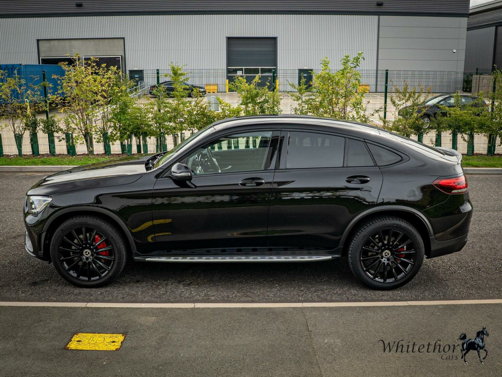 FREE DELIVERY WITHIN 200 MILES – Here we have a stunning Mercedes GLC220d AMG Line Premium finished in Obsidian Black Metallic. This being the Premium is loaded with equipment, this includes: Digital Dispays -- 20 Multispoke Alloy Wheels -- Ambient Lighting -- DAB Radio -- Dynamic Select with Drive Modes -- MBUX Multimedia System -- Privacy Glass -- Rain Sensors -- Running Boards -- Smartphone Integration -- Heated Seats and plenty more. This example also comes with optional extras such as: Black Leather Interior – Night Package Dechrome – Panamericana GT Style Front Grille – and more. This car has had 5 services in total (3 Mercedes, 2 Independent) last carried out at 48,900 miles. The MOT expires May 2026. 3 Month £2000 Claim Limit Warranty is included with the sale but the option to upgrade to a 12M, 24M, & 36M £5000 Claim Limit Nation Wide Premium Autoguard Warranty with Breakdown Cover is available. Multiple Finance Options, Competitive Part Exchange Prices. All Cars Are HPI, MotorCheck & Experian Clear. Further Vehicle Delivery Options Also Available. All Rights Reserved - Whitethor cars exercise all reasonable care and skill in providing you with vehicle information and data. The specification is attained through HPI, Experian & Autotrader VRM. Options Sold as packs may be shown individually, spec check is a guide so please contact us or physically verify any info that is crucial.