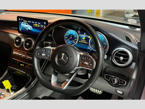 With exceptionally low mileage for its age, this 2021 Mercedes Benz GLC300d AMG Line (Premium) presents a superb ownership proposition. This four wheel drive, Euro 6 compliant diesel SUV boasts a powerful 2.0 litre engine and a swift 0-60mph acceleration of just 6.5 seconds. Having had only one owner from new and with a mere 25980 miles on the clock, this vehicle benefits from a suite of premium features. These include Active Parking Assist with front and rear sensors for effortless manoeuvring, heated front seats for comfort in all conditions, and THERMOTRONIC 3 zone automatic climate control. The advanced MULTIBEAM LED headlights provide exceptional visibility, while Smartphone Integration with both Android Auto and Apple CarPlay ensures seamless connectivity. The generous boot space offers practicality for everyday life and longer journeys, complemented by a substantial towing weight of 2500 kg. These highlights demonstrate how this Mercedes Benz GLC300d AMG Line (Premium) stands out from other vehicles in its class, offering a refined driving experience, advanced technology, and impressive capability. Mojave Silver, 20in Alloy Wheels - AMG Multi-Spoke Desi, ABS - Anti-Lock Braking System, AMG Bodystyling - AMG Front Apron with S, AMG Diffuser-Look Rear Apron, ATTENTION Assist, Active Bonnet - Pedestrian Safety Measur, Active Parking Assist including PARKTRON, Adaptive Brake Lights, Adaptive Brake System with HOLD Function, Alarm System with Immobiliser and Interi, Ambient Lighting, Augmented Reality Navigation, Automatic Child Seat Recognition Sensor, Brake Calipers - with Mercedes-Benz Lett, Chrome Trim - Front - Side and Rear, Collision Prevention Assist Plus, DAB Digital Radio Tuner, Direct-Steer Speed Sensitive Steering, Door Mirrors - Electrically Adjustable a, Dual-Stage Airbags - D