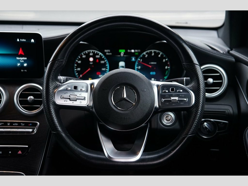 Prestige Car Supermarket in York presents this highly efficient and luxurious 2021 Mercedes-Benz GLC 300de AMG Line (Premium) SUV. Finished in Selenite Grey metallic paint, a desirable factory option costing £685.00, and featuring a luxurious Black Leather interior, this automatic diesel plug-in hybrid 4MATIC SUV offers a commanding and refined driving experience. It rides on 20in AMG Multi-Spoke Design alloy wheels and features AMG Bodystyling with Running Boards and Aluminium Finish Roof Rails. Illumination is provided by LED High Performance Headlamps and LED Tail Lights. Step inside the highly appointed cabin to find a 12.3in Digital Instrument Cluster, a 10.25in touchscreen Media Display, Heated and Electrically Adjustable Front Seats, and 3-Zone Automatic Climate Control. Technology is comprehensive with a Hard-Disk Navigation system, MBUX Voice Control, and DAB Digital Radio. Convenience is a priority with a Reversing Camera, Active Parking Assist, and an EASY-PACK Powered Tailgate. This model also includes Privacy Glass and a dashcam. Safety and driver assistance systems are extensive, including Traffic Sign Assist, Collision Prevention Assist Plus, and a Tyre Pressure Monitoring System (TPMS), ensuring a secure and confident drive. Leather - Black, Selenite Grey, 1 x 3 Pin Domestic Charging Cable - 8m -, 1 x Type 2 - 3 Phase Wallbox Cable - 4m , 20in Alloy Wheels - AMG Multi-Spoke Desi, ABS - Anti-Lock Braking System, AMG Bodystyling - AMG Front Apron with S, AMG Diffuser-Look Rear Apron, ARTICO Leather Dashboard with Contrast S, ATTENTION Assist, Active Bonnet - Pedestrian Safety Measur, Active Parking Assist including PARKTRON, Adaptive Brake Lights, Adaptive Brake System with HOLD Function, Alarm System with Immobiliser and Interi, Ambient Lighting, Automatic Child Seat Recognition Sensor, Brake Calipers - with Mercedes-Benz Lett, Charging Socket, Charging System - AC Charging System Rat, Chrome Trim - Front - Side