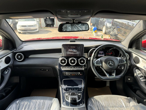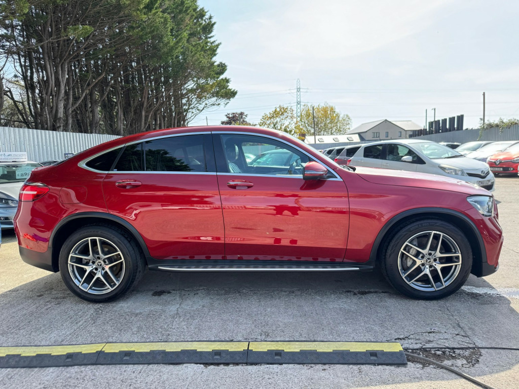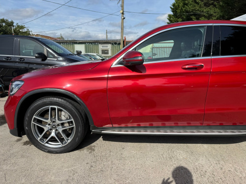 Stunning GLC220d Finished In Cardinal Red Metallic With Black Artico Leather and Dinamica Microfibre Interior. Fantastic Spec Inc: Premium Plus Pack, 19 AMG 5 Twin Spoke Alloys, AMG line, Side Running Boards, 360 Surround Cameras, Surround Sound, COMAND Online, DAB Radio, DVD, External Media Interface, LED High Performance Headlamps, Active Parking Assist, PARKTRONIC, Front & Rear Parking Sensors, Rear Camera With Guidance Lines, Auto Dimming Mirrors, Electric Heated Seats With Memory, Electric Folding Mirrors With Memory, Collision Prevention Assist, Cruise Control, Touchpad, Sports Suspension, Traffic Sign Assist, Keyless Start, Keyless Entry, Privacy Glass, Ambient Lighting, Easy Pack Tailgate, Dynamic Select, Active Bonnet, Multi Function Steering Wheel With Paddleshift Gear Change, Climate Control, A/C, Computer. This GLC is equipped with a GLC 63s style Body Kit with facelift headlights.