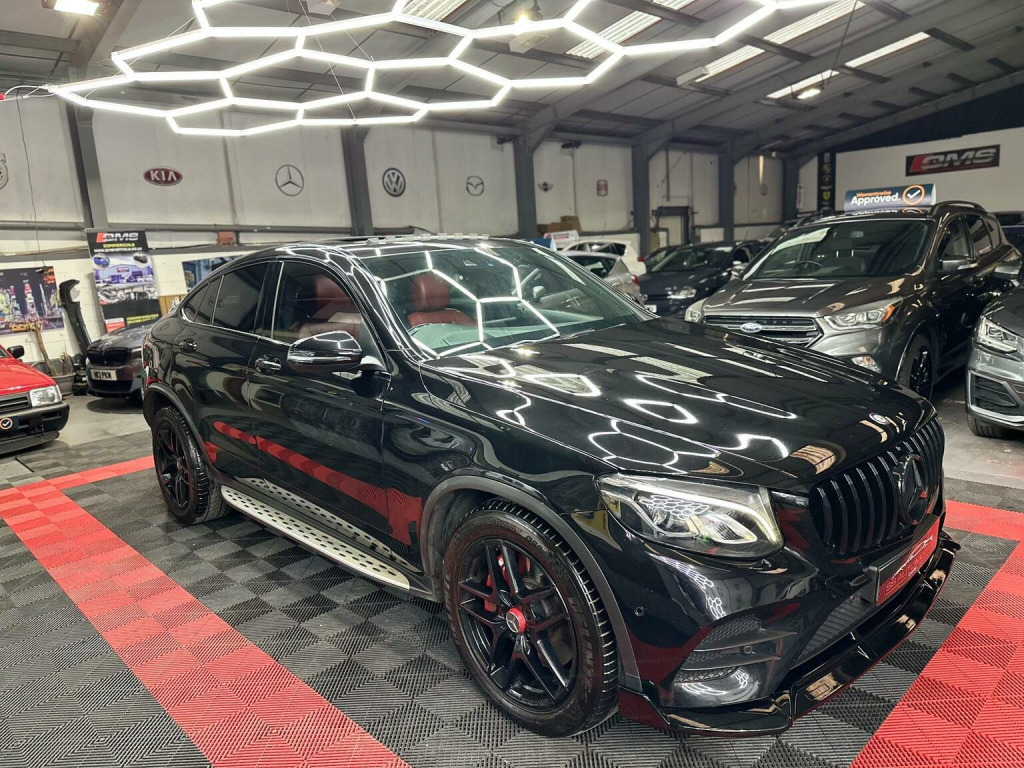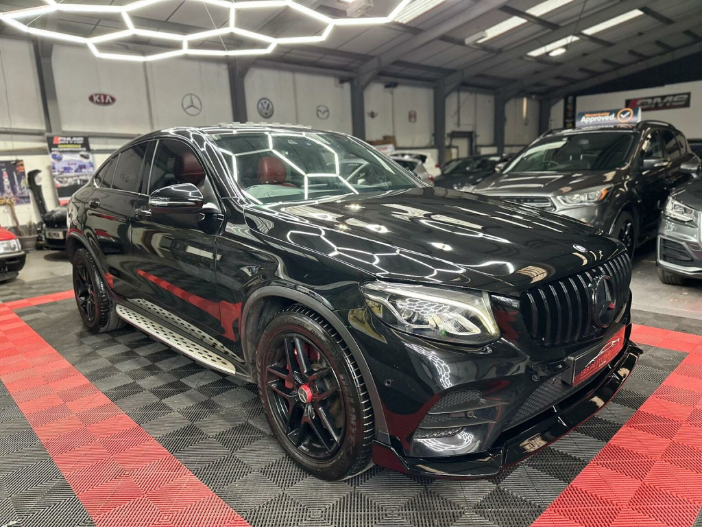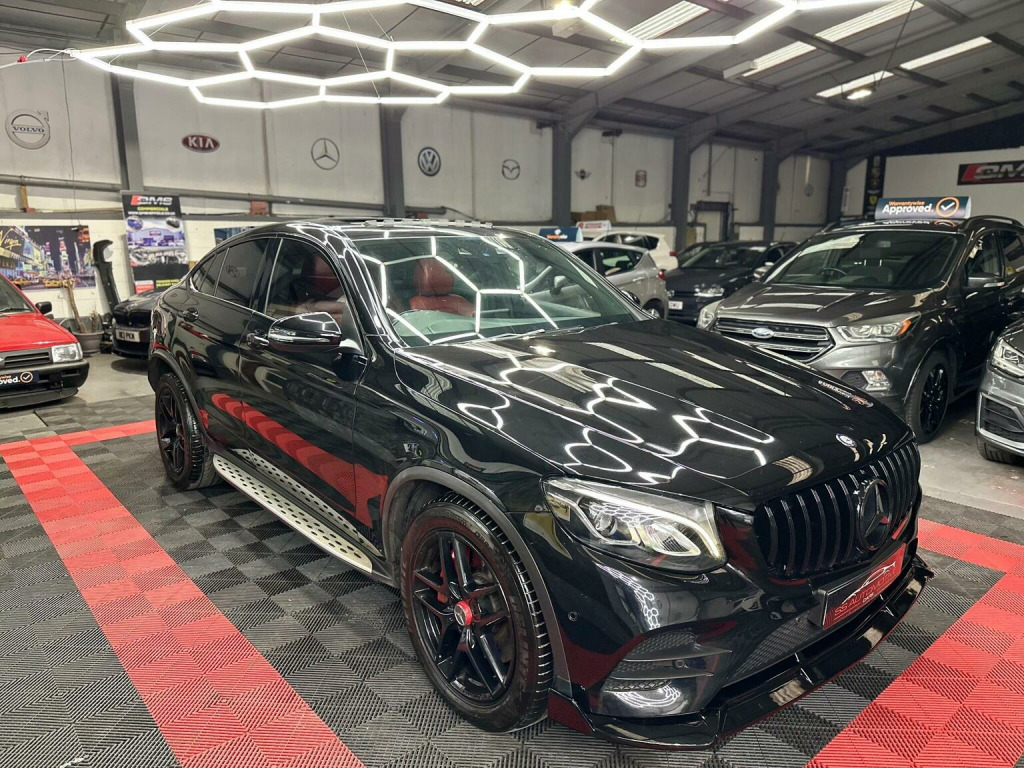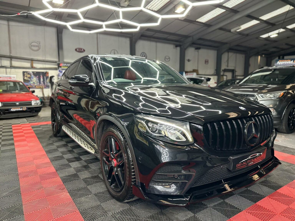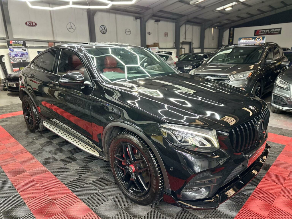 Mercedes GLC coupe, Premium, 4MATIC, 2016, Automatic , 125k with service history, 1 former keeeper from new, , GLC63 body styling conversion,, GLC63 front grill, GLC63 front splitter, GLC63 rear spoiler, GLC63 rear quad exhaust diffuser, And more…, Wheels freshly refurbished with red calipers, Black badges, Sunroof, Heads up display, Lane assist, Rear camera, Heated electric seats, 2 tone red interior, Led Drl headlights, LED rear lights, AMG matts, Satellite navigation , Media, Bluetooth, Electric tailgate , And more, Drives absolutely faultless , No issues at all, Nice quite engine very highly Maintained, Condition is great, Very mininal age related marks as expected for age and miles. Nothing major. Small little chip on rear bumper touched in. Nothing off putting, HPI clear, 2 keys