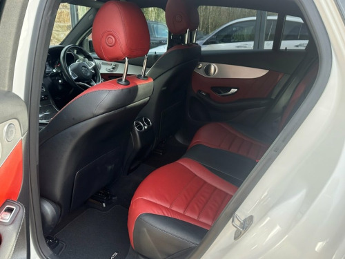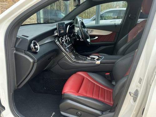 This 2018 Mercedes Benz GLC220d AMG Line Premium Plus boasts an exceptionally low mileage for its age, having covered just 59,000 miles with only one owner from new. This Euro 6 compliant four wheel drive model features a 2.1 litre diesel engine and comes with a full service history, with its last service completed on 23 October 2025 at 59,395 miles. It also benefits from a 6 month warranty for your peace of mind. The AMG Line trim enhances the already impressive GLC, and this particular example is further elevated by the desirable Night Package and striking 20 inch AMG multi spoke bi colour alloy wheels. Inside, you will find a luxurious cabin equipped with a sliding glass sunroof, a premium Burmester surround sound system, and a 360 degree camera with parking assistance, all contributing to a superior driving experience. With a towing weight of 2500 kg and an acceleration of 0 to 60 mph in just 8.3 seconds, this GLC offers a compelling blend of performance and practicality that sets it apart from other vehicles in its class. 360 Degree Camera, Trim - AMG Carbon Fibre with Aluminium, Polar White, Leather - Two-Tone Cranberry Red - Black, Running Boards with Rubber Studs, Night Package, 20in Alloy Wheels - AMG Multi-Spoke Desi, ABS - Anti-Lock Braking System, AMG Bodystyling - Front and Rear Apron -, ATTENTION Assist, Active Bonnet - Pedestrian Safety Measur, Active Parking Assist including PARKTRON, Adaptive Brake Lights, Adaptive Brake System with HOLD Function, Alarm System with Immobiliser and Interi, Ambient Lighting, Automatic Child Seat Recognition Sensor, Brake Calipers - with Mercedes-Benz Lett, Burmester Surround Sound System, COMAND Online System, Chrome Trim - Front - Side and Rear, Collision Preventio