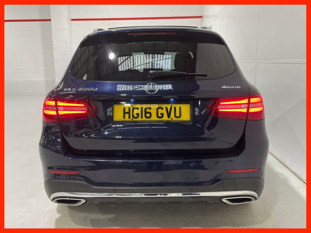 FINANCE & PART EXCHANGE AVAILABLE* - Only 2 registered keepers & 95,928 miles from new, MERCEDES MAIN DEALER SERVICE HISTORY, 2 KEYS - this SUPERB HIGH SPECIFICATION MERCEDES GLC220D AMG LINE PREMIUM PLUS AUTOMATIC WITH 4 WHEEL DRIVE & GLASS PANORAMIC SUNROOF is finished in stunning sports blue metallic & is complimented with contrasting full black leather sports trim and extends itself to the following additional features - Mercedes AMG Line Sports styling, full electric tilt & sliding glass panoramic sunroof with electric blind, on board satellite navigation system, 360 camera, dual zone climate control / automatic air conditioning, trip computer, cruise control with speed limiter, leather trimmed multi function steering wheel with paddle shift, front & rear park distance control, driver & passenger electric heated front seats with memory, Bluetooth, DAB digital radio, media input, Burmester surround sound system, voice command, keyless entry & start, start / stop, collision prevention assist, lumbar support, electric tailgate, traffic sign assist, attention assist, dynamic select, electric folding & heated exterior mirrors, privacy glass, LED auto headlights, rain sensor, power steering, abs, airbags, electric mirrors, electric windows, remote central locking, Mercedes 19''sports alloy wheels, Mercedes anti theft system. ***FINANCE AVAILABLE - subject to status. T&C's apply.***PART EXCHANGE AVAILABLE***ALL VEHICLES ARE HPI & NATIONAL MILEAGE REGISTER CHECKED***THE AA WARRANTY IS SUBJECT TO TERMS & CONDITIONS AND DOES NOT COVER VEHICLES THAT ARE BEING USED FOR TAXI, PRIVATE HIRE, CHAUFFEURING PURPOSES OR FOR REWARD.***Please note, that the specifications etc. are generic to that vehicle of the type advertised but may not be included in the specific vehicle that is for sale. It is for the intended purchaser to satisfy themselves of the presence or absence of any specifications/components/features before sale. Please ask if you are uncertain of anything and we will see if we can assist.. 10GB Music Register and MP3 Compatibility, 12V Socket in Luggage Compartment, 19in Alloy Wheels - AMG 5-Twin-Spoke Design - Painted in Titanium Grey, 3 Years Free European Map Updates, 8.4in Colour Display - High-Resolution, 9-channel Amplifier - 590 W, ABS - Anti-Lock Braking System, AMG Bodystyling - Front and Rear Apron - Side Skirts, ASR - Acceleration Skid Control, ATTENTION Assist, Active Bonnet - Pedestrian Safety which Detects an Impact and Raises Bonnet, Active Light System, Active Park Assist with Parktronic, Adaptive Brake Lamps, Adaptive Brake System with Hold Function and Brake Drying Function, Airbags - Drivers Kneebag, Airbags - Dual Stage - Driver, Airbags - Dual Stage - Front Passenger, Alarm System with Interior Protection, Ambient Lighting - Choice of Three Colour Settings, Ambient Lighting - Cupholders - Door Handle Recess and Overhead Panel in LED, Ambient Lighting - Door Trim and Side of Centre Console in LED, Ambient Lighting - Footwells in LED, Ambient Lighting - Front Door Sills in LED, Audio 20 Radio-CD, Automatic Child Seat Recognition Sensor, Automatic Powered Boot Closing, Automatically Dimming Rear View Mirror, Bluetooth Interface with Hands-Free Function and Music Transfer, Brushed Stainless Steel Sports Pedals with Rubber Studs, Burmester Surround Sound System, Chrome Trim on Front and Rear Bumper and Side Strips, Collapsible Box, Collision Prevention Assist Plus, Courtesy Lights in Doors, Crosswind Assist, Cruise Control with SPEEDTRONIC Variable Speed Limiter, Cup Holder in Centre Console x2, DAB Digital Radio Tuner, Daytime Running Lights - LED, Dividing Net for Luggage Compartment Partition and Occupant Protection, Door Centre Panel - Black, Door Mirrors - Drivers Automatically Dimming, Door Mirrors - Electrically Folding, Door Mirrors - Memory Function, Door Sill Panels - Mercedes-Benz Lettering, Door Trim at Beltline - Black, Dynamic Select with a Choice of Driving Modes - Comfort - ECO - Sport - Sport Plus - Individual, EASY-PACK Powered Tailgate, ESP - Electronic Stability Programme, ESP Curve Dynamic Assist, Easy-Pack Load Compartment Cover, Electric Parking Brake, Electric Windows - 4 - With One-Touch Opening and Closing - including Obstruction Sensors, Enhanced Foglight System, Exhaust System - Visible Tail-Pipe Integrated into Rear Bumper, Floor Mats - AMG with Edging and Embroidered AMG Lettering, Front Seats - Electrical Height and Backrest Adjustment, Hard Disk Drive HDD, Headlamp Assist - Automatic Headlamp Activation, Headlights - LED, Heated Front Seats, Heated Windscreen Washer System, ISOFIX Child Seat Fixing Points in Rear - Two Outer Seats, Illuminated Glove Compartment, Immobiliser, In-Car Internet Access, Instrument Cluster with 5.5in TFT Multifunction Display, Integrated WLAN Hotspot for Onboard Access of WLAN Enabled Devices, Interior Lighting Package, KEYLESS-GO Starting Function, Keyless Go Comfort Package, LED Tail Lights, Linguatronic Voice Control, Live Traffic Information, Load Compartment - Lockable Floor, Lockable Glove Compartment, Lower Dashboard Trim - Black, Lumbar Support - Four Way for Front Seats, Map Pockets on Front Seat Backrests, Media Interface, Memory Package, Mercedes Me Connect, Mercedes-Benz Apps, Mirror Package, Outside Air Temperature Gauge, Panoramic Electric Sunroof with Interior Sun Blind, Parking Sensor - Front, Parking Sensor - Rear, Power Steering - Direct Steer System with Speed Sensitive, Privacy Glass - From B-Pillar Backwards, Radiator Grille with Integrated Star - Two Chrome-Trimmed Louvres, Rain Sensing Windscreen Wipers, Rear Reading Lights - LED, Rear Seat Belts Status Indicator, Remote Boot Release, Retaining Net on Luggage Compartment Floor, Reversing Camera, Roof Lining - Black, Roof Rails - Aluminium Finish, Satellite Navigation - COMAND Online System, Seats - Cushion Depth Adjustment, Seats - Electrically Adjustable Driver and Passenger, Seats - Front Memory Function, Seats - Power Release for Rear Seat