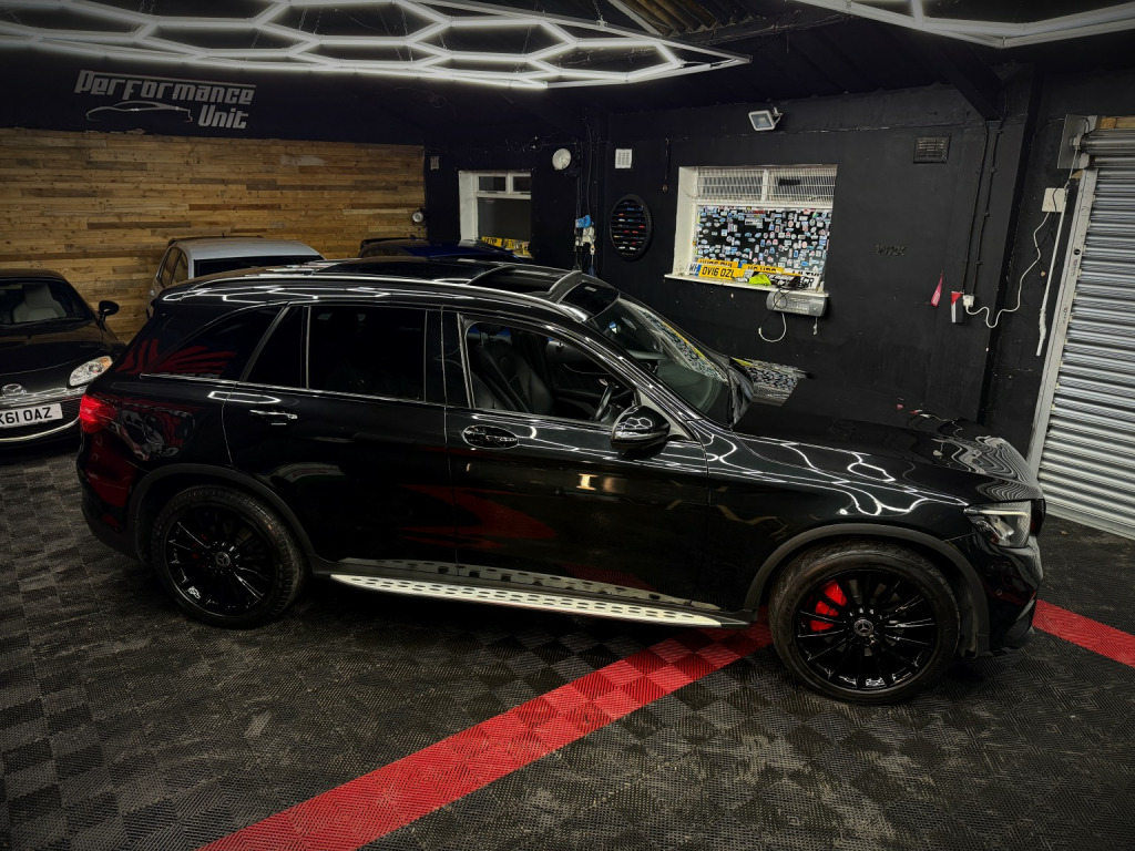 Performance Unit Present this lovely Mercedes-Benz GLC 250D AMG Line – 2018 – ULEZ Compliant, Automatic • Diesel • SUV • Black • 68,209 Miles, A superbly maintained and tastefully enhanced Mercedes-Benz GLC 250D AMG Line finished in black, featuring a Panamerica grille, full de-chroming and freshly refurbished alloy wheels in black with red brake calipers. ULEZ compliant with two former keepers and complete full service history. Recently fitted with new brake pads and maintained to a high standard throughout. , Insurance Group: 34E, CO2 Emissions: 129 g/km, Year: 2018, Road Tax: £195, Former Keepers: 2, , Full Service History, 02.04.2019 – 13,434 miles, 12.05.2020 – 24,764 miles, 20.05.2021 – 32,884 miles, 22.07.2022 – 35,405 miles, 02.08.2023 – 46,563 miles, 25.07.2024 – 52,886 miles, 31.07.2025 – 64,808 miles, Recent Servicing and Maintenance, 31.07.2025 – HiQ Interim Service, Oil filter, GTX 5W-30 C3 engine oil (Castrol), Sump plug/washer, Used oil disposal, 02.08.2023 – Full Service, 25.07.2024 – HiQ Full Service, 5W-30 LL engine oil, Oil filter, Air filter, Used oil disposal, Additional Maintenance, , New brake pads recently fitted, Alloy wheels professionally refurbished in gloss black, Red painted brake calipers, , Exterior Features, Upgraded Panamericana front grille, De-chromed exterior for a clean, modern finish, 19in AMG 5-Twin-Spoke Alloy Wheels (refurbished in black), AMG Bodystyling including front and rear aprons and side skirts, Panoramic roof, Electrically adjustable and heated door mirrors, Electric windows with one-touch function and obstruction sensors, Mirror package, Privacy glass from B-pillar backwards, Tinted all-round safety glass, Roof rails in aluminium finish, Integrated visible exhaust trims, Exterior illumination, TIREFIT tyre sealant kit, This GLC 250D AMG Line combines strong performance, premium comfort and standout styling. With full service history, recent maintenance, upgraded appearance and ULEZ compliance, it represents an excellent, ready-to-drive example for its next owner. , Call our sales team today to enquire about this vehicle. , Performance vehicles are the ultimate thrill so why not experience the adrenaline rush through your body as you fulfil your ambition. At Performance Unit we supply our customer with some of the finest performance vehicles across the UK. We also offer nationwide delivery. Reserve this vehicle now with a small deposit. Warranty Packages included.
