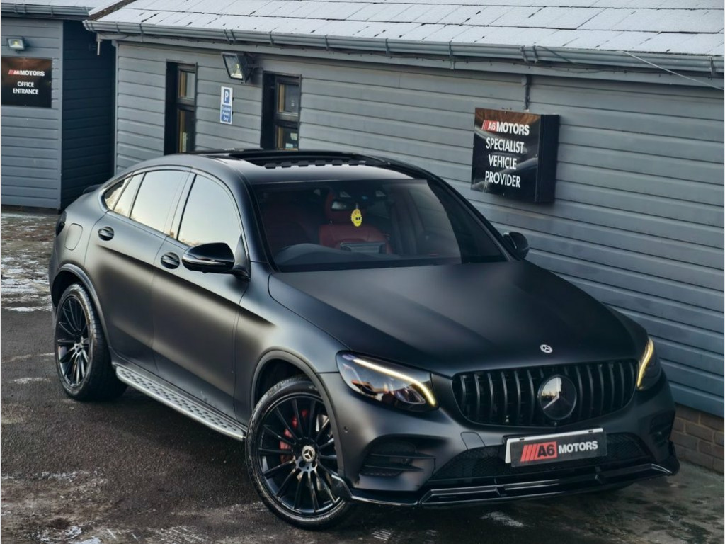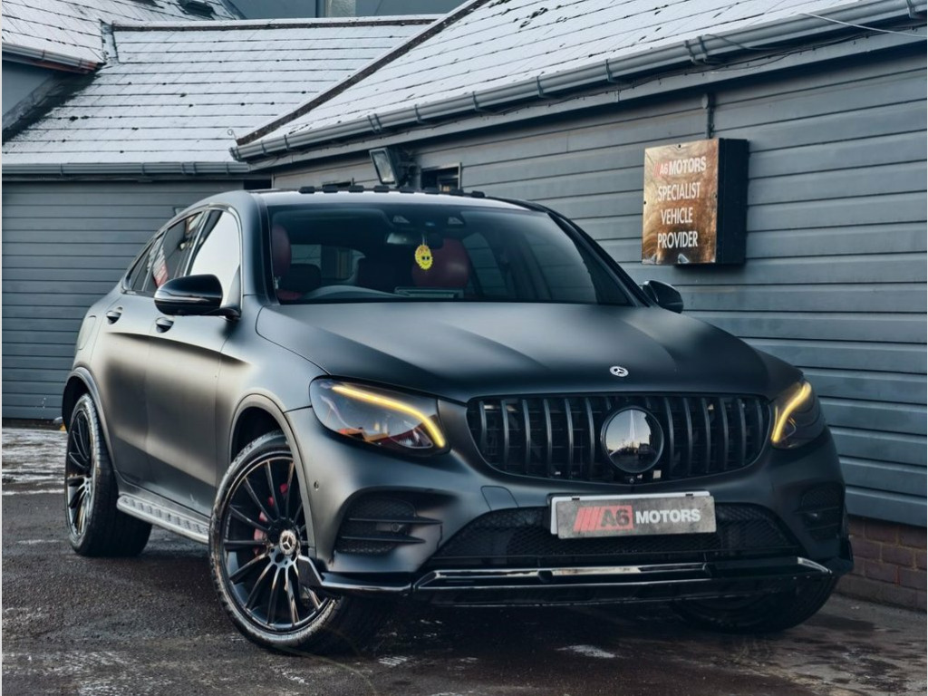 SAME DAY FINANCE AVAILABLE WITH £0 DEPOSIT. CALL OUR FINANCE TEAM FOR A QUOTATION TODAY. REQUEST A PERSONALISED VIDEO TODAY. STUNNING MERCEDES GLC 250D AMG LINE WITH PREMIUM PLUS PACK BOASTING A BIG FACTORY SPEC. WRAPPED IN MATT BLACK & WITH A FRONT LIP FITTED THIS EXAMPLE STANDS OUT FROM THE CROWD. LOOKS THE PART. SUPPLIED HPI CLEAR & WITH A NATIONWIDE WARRANTY. HAS AMBIENT LIGHTING, BIG WHEELS, RUNNING SIDE BOARDS, 360 CAM, NIGHT PACK, ADAPTIVE CRUISE CONTROL, LANE KEEP ASSIST, STEERING ASSIST, SAT NAV, DAB, BLUETOOT & MORE. INFOTAINMENT SCREEN UPGRADED TO NEWER MODEL. Headlamps - LED Intelligent Light System, Selenite Grey, Leather - Black, Leather - Cranberry Red, 360 Degree Camera, Driving Assistance Package, Lane Tracking Package, 20in Alloy Wheels - AMG Multi-Spoke Desi, Running Boards with Rubber Studs, Night Package, 19in Alloy Wheels - AMG 5-Twin-Spoke Des, ABS - Anti-Lock Braking System, AMG Bodystyling - Front and Rear Apron -, ATTENTION Assist, Active Bonnet - Pedestrian Safety Measur, Active Parking Assist including PARKTRON, Adaptive Brake Lights, Adaptive Brake System with HOLD Function, Alarm System with Immobiliser and Interi, Audio 20 CD, Automatic Child Seat Recognition Sensor, Brake Calipers - with Mercedes-Benz Lett, Chrome Trim - Front