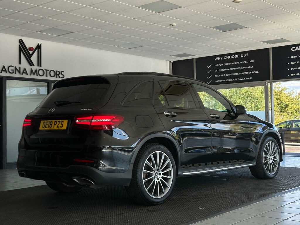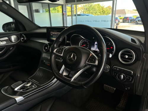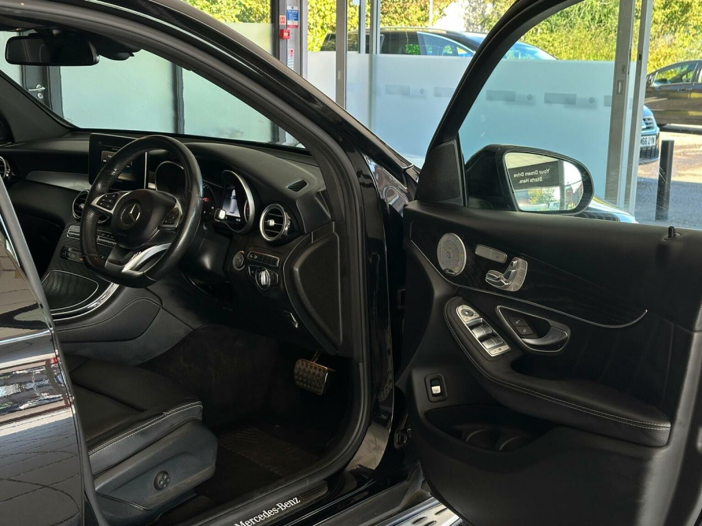 This 2018 Mercedes Benz GLC350d V6 AMG Line (Premium Plus) is finished in sleek black leather, this four wheel drive SUV is powered by a robust 3.0 litre diesel engine, meeting Euro 6 emissions standards. The AMG Line trim enhances its sporty appeal, while the Premium Plus designation signifies a high level of specification. Notable features include the advanced LED Intelligent Light System for superior visibility, a comprehensive Driving Assistance Package with adaptive cruise control and blind spot assistance, and the Lane Tracking Package for added safety. Manoeuvring is made effortless with Active Parking Assist, incorporating front and rear parking sensors. This impressive Mercedes Benz GLC offers a compelling blend of performance and practicality. Its acceleration is noteworthy, reaching 0 to 62 miles per hour in a swift 6.2 seconds, demonstrating its dynamic capability. The vehicle also benefits from a low insurance group, making it an economical choice. Furthermore, the generous boot space provides ample room for luggage or shopping, indicating its suitability for families and those with active lifestyles. With a substantial towing weight of 2500 kg, this GLC is also well equipped for towing caravans or trailers, setting it apart from many similar vehicles on the market.