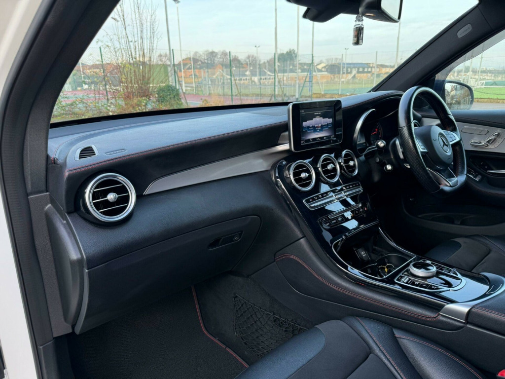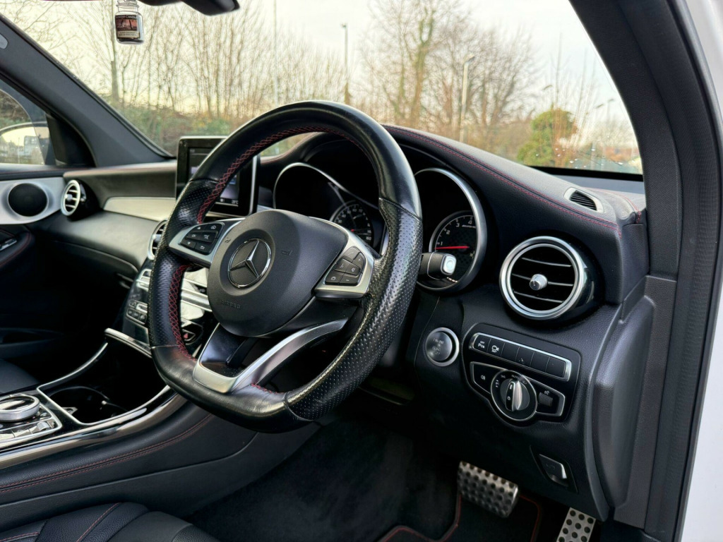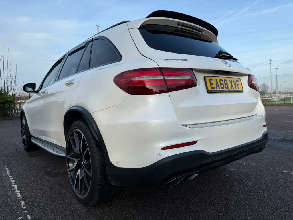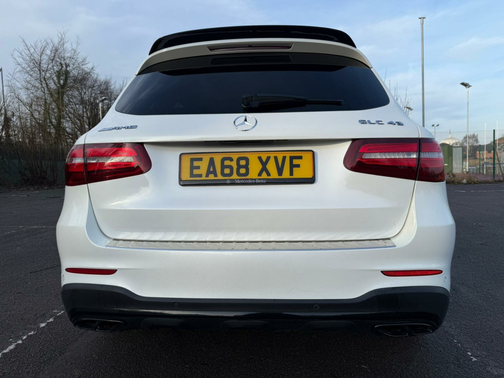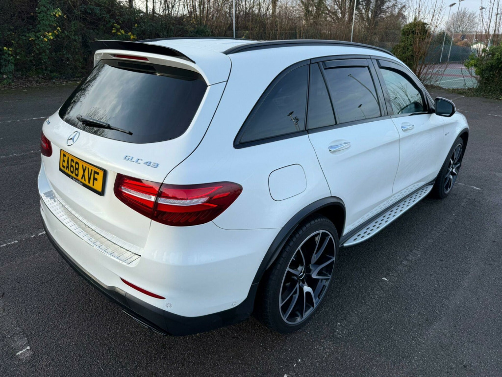 This 2018 Mercedes Benz GLC43 V6 AMG (Premium) boasts exceptionally low mileage for its age, having covered just 45,413 miles. This four wheel drive, Euro 6 compliant model features a powerful 3.0L petrol engine and an AMG trim, offering a dynamic driving experience. Inside, you'll find heated front seats for added comfort, and the convenience of automatic headlamp activation. For effortless parking, it includes a reversing camera and Active Parking Assist with front and rear sensors. Entertainment and connectivity are handled by the Audio 20 CD system with Bluetooth.The GLC43 AMG stands out with its impressive acceleration, reaching 0-62mph in a swift 4.9 seconds, demonstrating its performance capabilities. This vehicle also offers a generous boot space, making it practical for everyday use and longer journeys. Furthermore, its classification within a low insurance group indicates that running costs are kept more manageable compared to similar vehicles. With a substantial towing weight of 2170 kg, this Mercedes Benz GLC is a versatile and capable option.. 19in Alloy Wheels - AMG 5-Twin-Spoke Design - Bi-Colour, ABS - Anti-Lock Braking System, AMG Bodystyling - Front Apron with Distinctive Air Intakes - AMG Side Sill Panels - AMG Rear Apron with Diffuser Look, AMG Bodystyling - Front and Rear Apron - Side Skirts, AMG Boot Logo in Central Screen, AMG Performance 4MATIC with Torque Distribution of 31-69 - Front-Rear, AMG Spoiler Lip in Vehicle Colour, ARTICO Leather Dashboard with Red Contrast Stitching, ATTENTION Assist, Active Bonnet - Pedestrian Safety Measure which Detects an Impact and Raises Bonnet, Active Parking Assist including PARKTRONIC, Adaptive Brake Lights, Adaptive Brake System with HOLD Function and Brake Drying in the Wet, Air Body Control - Air Suspension for Front and Rear Axles with Continuously Adjustable Damping, Alarm System with Immobiliser and Interior Protection, Ambient Lighting, Audio 20 CD, Automatic Child Seat Recognition Sensor, BITURBO 4MATIC Lettering on Front Wings, Beltline Trim Strip and Window Surround in High-gloss Black, Black Mirror Housings, Brake Calipers - with AMG Lettering and Perforated Front Brake Discs, Collision Prevention Assist Plus, DAB Digital Radio Tuner, Door Mirrors - Electrically Adjustable and Heated, Dual-Stage Airbags - Driver and Front Passenger - Driver Kneebag and Windowbags for Driver - Front Passenger and Rear Passengers, Dynamic Select with a Choice of Driving Modes - Comfort - ECO - Sport - Sport Plus - Individual, EASY-PACK Load Compartment Cover - Removable, EASY-PACK Powered Tailgate, Electric Panoramic Glass Sunroof, Electric Parking Brake, Electric Windows - 4 - With One-Touch Opening and Closing - including Obstruction Sensors, Electronic Stability Programme-ESP with Curve Dynamic Assist and Crosswind Assist, Floor Mats - Black with AMG Lettering and Red Piping, Front Door Sill Panels with AMG Lettering, Fuel Tank with Increased Capacity - 66-litres, Garmin Map Pilot Navigation System with Live Traffic Information, Glove Compartment Illuminated and Lockable, Headlamp Assist - Automatic Headlamp Activation, Headlamps - LED High Performance with Integrated LED Daytime Running Lights, High-Resolution 7in Multimedia Colour Display, ISOFIX Child Seat Attachment Points with Top Tether in Rear - Two Outer Seats, Instrument Cluster with 5.5in TFT Multifunction Display, Interior Lighting Package, KEYLESS-GO Starting Function, Keyless Go Comfort Package, LED Tail Lights, Memory Package, Mercedes Connect Me - Standard Services, Mercedes Me Connect - Remote Online, Mirror Package, Outside Temperature Display - Rear Seat Belt Status Indicator, Pre-Wiring for Garmin Map Pilot Navigation System, Privacy Glass - Dark Glass from B-Pillar Backwards, Radiator Grille - Diamond Grille with Integrated Star - Chrome Pins, Rain Sensing Windscreen Wipers, Remote Boot Release, Reversing Camera, Roof Rails - Aluminium Finish, Seat Belts - Red, Seats - Front Electrically Adjustable, Seats - Heated Front, Service Indicator ASSYST, Speakers with Frontbass x5, Sports Pedals in Brushed Stainless Steel with Rubber Studs, Steering - AMG 2 Stage Speed-Sensitive Sports Steering, Steering Column Gear Selector - DIRECT SELECT Steering Wheel Gearshift Paddles - SPEEDTRONIC Cruise Control with Variable Speed Limiter, Steering Wheel - 3-Spoke Multi-function Sports in Black Leather with Flattened Bottom Section - Deep Embossing in Grip Area and Red Contrasting Topstitching, Stowage - Dividing Net for Luggage Compartment Partitioning and Occupant Protection, Stowage - Double Cup Holder in Centre Console, Stowage Package, Sun Visors with Illuminated Vanity Mirrors, TIREFIT Tyre-Sealant Kit, Thermatic - Automatic Climate Control, Tinted Glass All Round - Single-Layer Safety Glass, Trim - High-Gloss Black with Aluminium, Two Twin Tailpipe Trim Elements, Two USB Ports in Centre Console, Tyre Pressure Monitoring System.