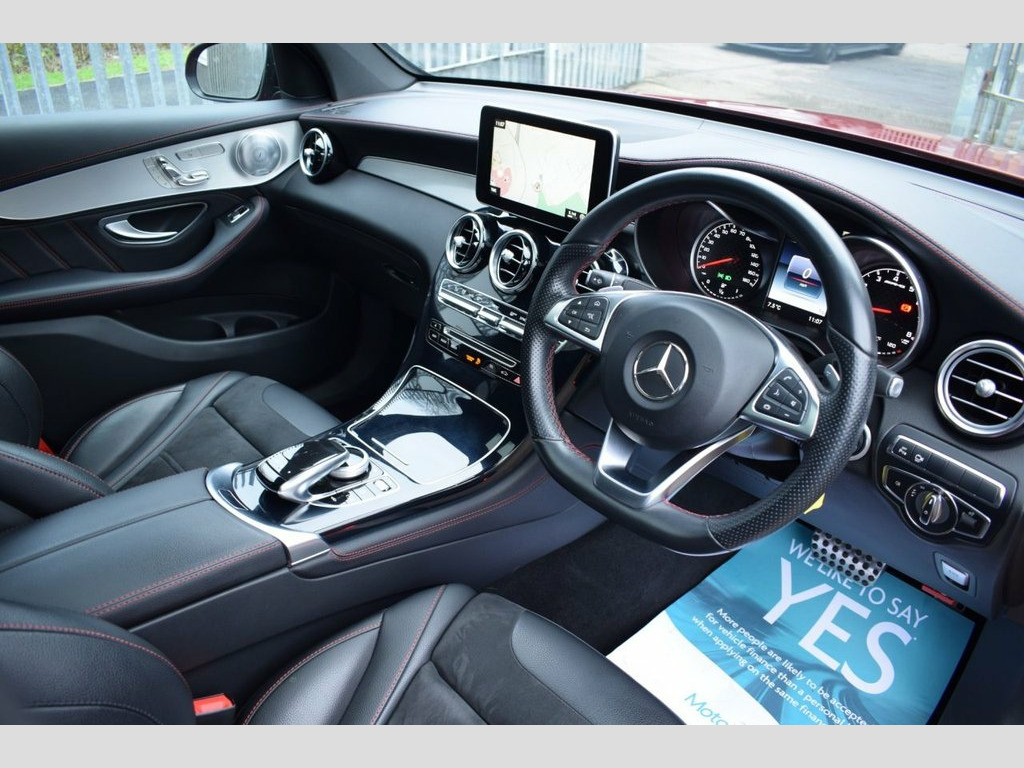 This rare Mercedes GLC 43 AMG looks stunning in this executive colour combination and comes with great extras such as glass sunroof, burmester sound, comand navigation, memory seats and more! HYACINTH RED METALLIC - BLACK LEATHER / ALCANTARA INTERIOR - AMG BODYSTYLING - AMG NIGHT PACKAGE - 21" AMG MULTI SPOKE WHEELS - ELECTRIC GLASS SUNROOF - BURMESTER SURROUND SOUND - 360 VIEW CAMERA - ELECTRIC MEMORY SEATS - KEYLESS ENTRY / START - POWERED BOOTLID ( UP & DOWN) - REVERSE CAMERA - COMAND NAVIGATION SAT NAV - BI XENON HEADLAMPS - LED DAYTIME LIGHTS - HEATED FRONT SEATS - AMBIENT LIGHTING - BLUETOOTH PHONE PREP - BLUETOOTH AUDIO STREAM - ELECTRIC FOLDING MIRRORS - FRONT & REAR PARKING SENSORS - DAB DIGITAL RADIO - MULTI FUNCTION S/WHEEL - CRUISE CONTROL - PRIVACY GLASS - AUTO HEADLIGHT ACTIVATION - AUTO WIPER ACTIVATION - AIR CONDITIONING - CLIMATE CONTROL - EURO 6 ULEZ COMPLIANT Iridium Silver, Diamond Silver, Artico Leather-Dinamica Microfibre - Bla, Running Boards with Rubber Studs, 20in Alloy Wheels - AMG Multi-Spoke Desi, Hyacinth Red, 360 Degree Camera, Night Package, 21in Alloy Wheels - AMG 5-Twin-Spoke Des, 20in Alloy Wheels - AMG Multi-Spoke Desi, 19in Alloy Wheels - AMG 5-Twin-Spoke Des, ABS - Anti-Lock Braking System, AMG Bodystyling - Front and Rear Apron -, ATTENTION Assist, Active Bonnet - Pedestrian Safety Measur, Active Parking Assist including PARKTRON, Adaptive Brake Lights, Adaptive Brake System with HOLD Function, Air Body Control - Air Suspension for Fr, Alarm System with Immobiliser and Interi, Artico Leather Dashboard, Audio 20 CD, Automatic Ch