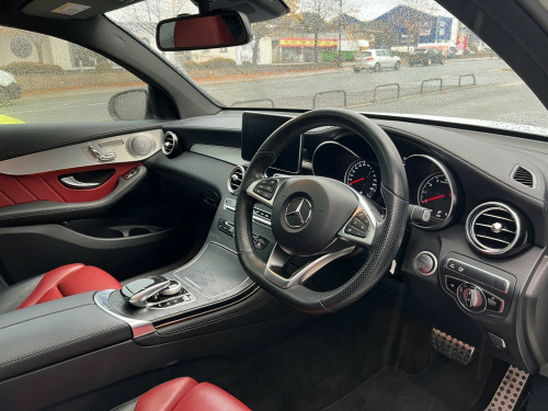 3.0 GLC43 V6 AMG (Premium Plus). Factory Options: 21” Alloys, Red/Black Two-Tone Leather Interior. Standard Specification: Sliding Glass Sunroof, 360 Degree Camera, Air Body Control (Air Suspension with Continuously Adjustable Damping), Burmester Surround Sound System, Privacy Glass, Ambient Lighting, AMG Spoiler Lip, KEYLESS-GO, 3-Spoke Black Leather Multi-Function Flat Bottom Sports Steering Wheel, Electrically Adjustable Front Seats, Heated Front Seats, Memory Package (Front Seats, Steering Column, Mirrors), Active Parking Assist including PARKTRONIC, SPEEDTRONIC Cruise Control with Variable Speed Limiter, Collision Prevention Assist Plus, ATTENTION Assist, Thermatic Automatic Climate Control, Dynamic Select (Comfort, ECO, Sport, Sport Plus, Individual), LED High Performance Headlights, LED Tail Lights, Instrument Cluster with 5.5” TFT Multifunction Display, 8.4” Multimedia Display, DAB Radio, Electric Folding Door Mirrors, EASY-PACK Powered Tailgate.Finished in Polar White Paint. Panoramic Roof, Pan Roof, Pano Roof, Panorama Roof, Sunroof, Glass Roof. Proudly No.1 in the UK for customer service in 2024, as awarded by AutoTrader. Our bespoke customisation services include Upgrade Alloy Wheels/Colour Changed & Refurbishment, Carbon Dipping, Bodykits, Window Tints, Black Pack / De-chroming.We offer a comprehensive selection of luxury vehicles including, Rolls-Royce, Bentley, Lamborghini, Ferrari, Aston Martin, McLaren, Porsche, Maserati, Audi, Mercedes-Benz, BMW, Lexus, Jaguar, Land Rover, Tesla, Alfa Romeo, Lotus, Alpine and much more.All our cars are HPI clear. Please contact us for your own personal video presentation of this particular car. We offer competitive finance rates with our in-house team from PCP, lease purchase and HP. Whilst we make every effort to ensure that the specification and technical information for the cars on our website is correct, some of it is supplied by third party providers and we cannot guarantee its accuracy. It is therefore important that you do not solely rely on this information.. Sliding Glass Sunroof, 360 Degree Camera, Air Body Control (Air Suspension with Continuously Adjustable Damping), Burmester Surround Sound System, Privacy Glass, Ambient Lighting, AMG Spoiler Lip, KEYLESS-GO, 3-Spoke Black Leather Multi-Function Flat Bottom Sports Steering Wheel, Electrically Adjustable Front Seats, Heated Front Seats, Memory Package (Front Seats, Steering Column, Mirrors), Active Parking Assist including PARKTRONIC, SPEEDTRONIC Cruise Control with Variable Speed Limiter, Collision Prevention Assist Plus, ATTENTION Assist, Thermatic Automatic Climate Control, Dynamic Select (Comfort, ECO, Sport, Sport Plus, Individual), LED High Performance Headlights, LED Tail Lights, Instrument Cluster with 5.5” TFT Multifunction Display, 8.4” Multimedia Display, DAB Radio, Electric Folding Door Mirrors, EASY-PACK Powered Tailgate, 21” Alloys, Red/Black Two-Tone Leather Interior..