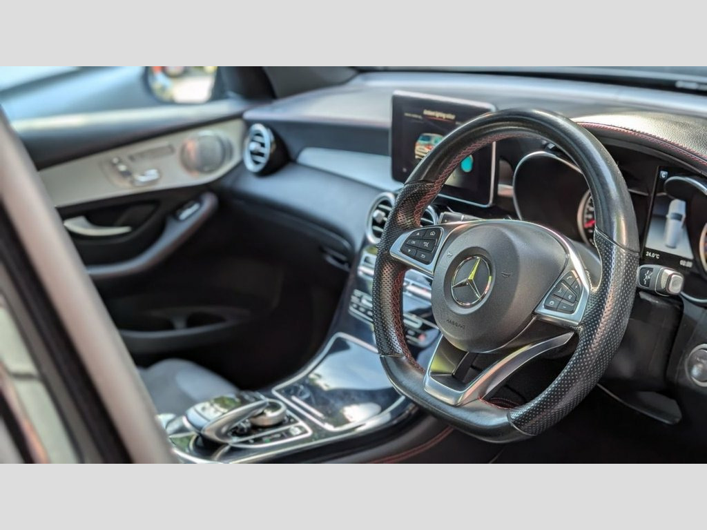 THIS STUNNING AMG GLC43 COMES WITH A GREAT SPEC INCLUDING - 21" alloys - GTS style grille - Side steps - Full Mercedes-Benz main dealer service history - Obsidian black metallic paintwork - Automatic transmission with gearshift paddles - Panoramic tinted glass sunroof - Black artico leather and microfibre interior with contrast red stitching - Artico leather dashboard with contrast red stitching - Red seat belts - Electric memory seats inc. steering column and mirrors - Burmester sound system - Gloss black interior trims - Media display with DAB - 360 degree reverse camera - Dual zone front climate control - Ambient lighting - High performance LED headlights - Airmatic suspension - Collision prevention assist OPTIONAL EXTRAS / UPGRADES AVAILABLE: - Optional brake caliper painting to a colour of your choice - Optional rear privacy - Optional gloss black badges - Optional debadge - Optional 12 month manufacturer equivalent warranty available - The fitment of the brand new tyres, alloy wheels and styling parts are subject to a fee of £249. This also warrants the styling parts for 12 months. - Number of keys to be confirmed at the point of sale. Air-Balance Package, Running Boards with Rubber Studs, Headlamps - LED Intelligent Light System, Night Package, 360 Degree Camera, Artico Leather-Dinamica Microfibre - Bla, ABS - Anti-Lock Braking System, AMG Bodystyling - Front and Rear Apron -, AMG Speed-Sensitive Sports Steering, ARTICO Leather Dashboard with Red Contra, ATTENTION Assist, Active Bonnet - Pedestrian Safety Measur, Active Parking Assist including PARKTRON, Adaptive Brake Lights, Adaptive Brake System with HOLD Function, Air Body Control - Air Suspension for Fr, Alarm System with Immobiliser and Interi, Automatic Child Seat Recognition Sensor, BITURBO 4MATIC Lettering on Front Wings, Beltline Trim Strip and Window Surround ,