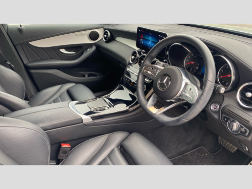 Mercedes-Benz Glc GLC 220d 4Matic AMG Line 5dr 9G-Tronic Active parking assist with parktronic system, Attention assist, Bluetooth interface for hands free telephone, Collision prevention assist plus, Cruise control with speedtronic variable speed limiter, Direct steer speed sensitive steering, DYNAMIC SELECT with a choice of driving modes (ECO, Comfort, Sport, Sport+ and Individual), Easy pack automatic powered tailgate, eCall emergency call system, ECO start/stop function, Hard disk navigation, Hey Mercedes Voice activation, Instrument cluster with 5.5-inch TFT multi-function display, MBUX Interior assistant, Mercedes connect me with remote online services, Multi function trip computer, Outside temperature display, rear seatbelt status indicator, Remote boot release, Reversing camera, Service indicator (ASSYST), 4MATIC permanent four wheel drive, 66 litre fuel tank, 9G TRONIC plus automatic transmission with steering column gear selector, DIRECT SELECT steering wheel gearshift paddles, Diesel particulate filter, Sports suspension tuned for improved handling and driving dynamics, 5 speakers, Frontbass loudspeakers, MBUX multimedia system with DAB digital radio and touchpad, Media display 10.25-inch touchscreen display, Pre installation for Mercedes Benz Link, USB ports x 2 in centre console, Adaptive brake lights, Aluminium roof rails, AMG bodystyling - AMG front apron with sporty air intakes and chrome trim element, AMG diffuser-look rear apron with insert in black, Body colour door mirrors, Body coloured bumpers, Electric windows one touch open/close, Electrically adjustable and heated door mirrors, Front, side and rear exterior chrome trim, Headlamp assist automatic headlamp activation, High level LED brake light, LED high performance headlamps with integrated LED daytime running lights, LED tail lamp, Privacy glass with dark glass from B pillar backwards, Radiator diamond grille, Rain sensor windscreen wipers, Range adjustable headlights, Rear side wing doors, Rear wiper, Roof spoiler, Tinted glass all round with single layer safety glass, Tinted rear windows, Two chrome plated tailpipe trim elements, Variable front intermittent wipers, 2 way rear head restraints, 3-spoke multifunction sport AMG steering wheel in black nappa leather with flattened bottom section, chrome insert and perforated leather in grip area, 40:20:40 split folding rear seats, AMG floor mats with edging and embroidered AMG lettering, AMG sports seats, Artico man-made leather upper dashboard with contrast topstitching, Automatic child seat recognition sensor, Black roof lining, Dividing net - rear, Double cup holder in centre console, Easy-pack removable load compartment cover, Front armrest with storage box, Front door sills with Mercedes Benz lettering, Front head restraints, Front passenger seat, Front seats with electric adjust (backrest, height and seat cushion inclination) with 4 way electric lumbar support and manual cushion depth adjust, Heated front seats, Height/reach adjustable steering column, Illuminated and lockable glove compartment, Leather upholstery, Rear top tether child seat ISOFIX attachment, Sports pedals with stainless steel surfaces and rubber studs, Steering wheel with touch control buttons, THERMOTRONIC 3 zone automatic climate control, Interior lighting pack - GLC, Mirror pack - GLC, Storage pack - GLC, 3 rear 3 point seatbelts, Active bonnet, Adaptive brake system with HOLD function and brake drying in the wet, ASR, Black seat belts, Brake calipers with Mercedes-Benz lettering + perforated brake discs, Child proof door locks, Dual-stage airbags - driver and front passenger, driver knee bag and window bags for driver, front passenger and rear passengers, Electronic parking brake, Electronic stability programme (ESP) with curve dynamic assist and cross wind assist, Front and rear seatbelt reminder, Front passenger seat occupancy sensor, Hill hold function, Tyre pressure monitoring system, Warning triangle and first aid kit, Alarm system/interior protection/immobiliser, Automatic door locking, KEYLESS-GO starting function, Remote central locking, High gloss black with grained aluminium trim, 19" AMG 5 twin spoke alloy wheels painted tremolite grey with high sheen finish, Summer tyres, Tirefit tyre sealant kit