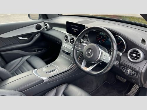Mercedes-Benz Glc GLC 220d 4Matic AMG Line Premium 5dr 9G-Tronic Active parking assist with parktronic system, Attention assist, Bluetooth interface for hands free telephone, Collision prevention assist plus, Cruise control with speedtronic variable speed limiter, Direct steer speed sensitive steering, DYNAMIC SELECT with a choice of driving modes (ECO, Comfort, Sport, Sport+ and Individual), Easy pack automatic powered tailgate, eCall emergency call system, ECO start/stop function, Hard disk navigation, Hey Mercedes Voice activation, Instrument cluster with12.3-inch digital instrument cluster display. High resolution instrument cluster screen with choice of three display styles, MBUX Interior assistant, Mercedes connect me with remote online services, Multi function trip computer, Outside temperature display, rear seatbelt status indicator, Remote boot release, Reversing camera, Service indicator (ASSYST), Smartphone integration with Apple CarPlay and Android auto, Traffic sign assist, 4MATIC permanent four wheel drive, 66 litre fuel tank, 9G TRONIC plus automatic transmission with steering column gear selector, DIRECT SELECT steering wheel gearshift paddles, Diesel particulate filter, Sports suspension tuned for improved handling and driving dynamics, 5 speakers, Frontbass loudspeakers, MBUX multimedia system with DAB digital radio and touchpad, Media display 10.25-inch touchscreen display, Pre installation for Mercedes Benz Link, USB ports x 2 in centre console, Adaptive brake lights, Aluminium roof rails, AMG bodystyling - AMG front apron with sporty air intakes and chrome trim element, AMG diffuser-look rear apron with insert in black, Body colour door mirrors, Body coloured bumpers, Electric windows one touch open/close, Electrically adjustable and heated door mirrors, Front, side and rear exterior chrome trim, Headlamp assist automatic headlamp activation, High level LED brake light, LED high performance headlamps with integrated LED daytime running lights, LED tail lamp, Motor way mode function and locator lighting, Privacy glass with dark glass from B pillar backwards, Radiator diamond grille, Rain sensor windscreen wipers, Range adjustable headlights, Rear side wing doors, Rear wiper, Roof spoiler, Running boards, Tinted glass all round with single layer safety glass, Tinted rear windows, Two chrome plated tailpipe trim elements, Variable front intermittent wipers, 2 way rear head restraints, 3-spoke multifunction sport AMG steering wheel in black nappa leather with flattened bottom section, chrome insert and perforated leather in grip area, 40:20:40 split folding rear seats, Ambient lighting, AMG floor mats with edging and embroidered AMG lettering, AMG sports seats, Artico man-made leather upper dashboard with contrast topstitching, Automatic child seat recognition sensor, Black roof lining, Dividing net - rear, Double cup holder in centre console, Easy-pack removable load compartment cover, Front armrest with storage box, Front door sills with Mercedes Benz lettering, Front head restraints, Front passenger seat, Front seats with electric adjust (backrest, height and seat cushion inclination) with 4 way electric lumbar support and manual cushion depth adjust, Heated front seats, Height/reach adjustable steering column, Illuminated and lockable glove compartment, Leather upholstery, Rear top tether child seat ISOFIX attachment, Sports pedals with stainless steel surfaces and rubber studs, Steering wheel with touch control buttons, THERMOTRONIC 3 zone automatic climate control, Interior lighting pack - GLC, Mirror pack - GLC, Storage pack - GLC, 3 rear 3 point seatbelts, Active bonnet, Adaptive brake system with HOLD function and brake drying in the wet, ASR, Black seat belts, Brake calipers with Mercedes-Benz lettering + perforated brake discs, Child proof door locks, Dual-stage airbags - driver and front passenger, driver knee bag and window bags for driver, front passenger and rear passengers, Electronic parking brake, Electronic stability programme (ESP) with curve dynamic assist and cross wind assist, Front and rear seatbelt reminder, Front passenger seat occupancy sensor, Hill hold function, Tyre pressure monitoring system, Warning triangle and first aid kit, Alarm system/interior protection/immobiliser, Automatic door locking, KEYLESS-GO starting function, Remote central locking, Open pore black ash wood trim, 20" AMG multi spoke design alloy wheels painted in titanium grey with high sheen finish, Run flat tyres, Summer tyres
