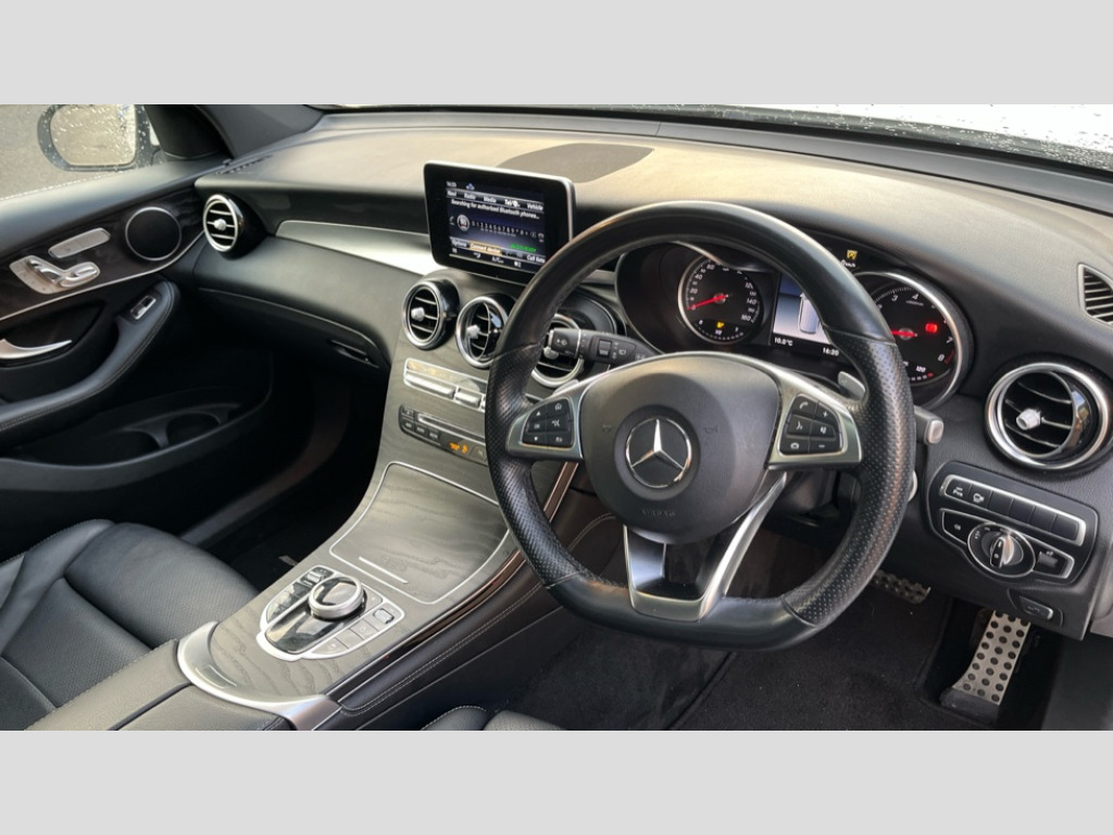 Rare 7" colour screen, Active park assist with parktronic system, Attention assist, Bluetooth interface for hands free telephone, Collision prevention assist plus, Crosswind Assist, DYNAMIC SELECT with a choice of driving modes (ECO, Comfort, Sport, Sport+ and Individual), Garmin Map Pilot navigation system with SD card, touchpad and voice control, Instrument cluster with 5.5-inch TFT multi-function display, Multi function trip computer, Outside temperature gauge, Power opening/closing tailgate, Remote boot release, Service indicator (ASSYST), 66 litre fuel tank, 5 speakers, DAB Digital radio, Frontbass loudspeakers, Mercedes Audio 20 radio/single CD + telephone keypad, USB connection, Adaptive brake lights, Aerodynamic rear spoiler, AMG bodystyling, Automatic headlights, Body coloured bumpers, Chrome exterior trim, Electric panoramic sunroof with sunblind, Electric windows one touch open/close, Electrically adjustable and heated door mirrors, Exhaust tailpipe finisher, LED daytime running lights, LED rear lamps, Privacy glass (to rear of B post), Rain sensor windscreen wipers, Range adjustable headlights, Rear wiper, Tinted glass all round, 2 cupholders in front centre console, 2 way rear head restraints, 3 spoke flat bottom AMG steering wheel in nappa leather, 4 way adjustable front head restraints, 4 way electric lumbar support for driver and front passenger, 40:20:40 split folding rear seats, Ambient lighting, AMG floor mats, AMG sports seats, Auto Mercedes-Benz child seat recognition sensor, Automatic climate control, Black roof lining, Dividing net - rear, Electric front seat height adjustment, Front armrest with storage box, Front door sills with Mercedes Benz lettering, Gearshift paddles, Heated front seats, Height/reach adjustable steering column, Lockable/illuminated glovebox, Multifunction steering wheel, Rear top tether child seat ISOFIX attachment, Sports pedals with stainless steel surfaces and rubber studs, Sunvisors with illuminated vanity mirrors, Easy-pack load compartment cover, Interior lighting pack - GLC, Memory pack - GLC, Mirror pack - GLC, Storage pack - GLC, 3 rear 3 point seatbelts, ABS with Brake Assist, Active bonnet, Adaptive brake system, Brake calipers with Mercedes-Benz lettering + perforated brake discs, Child proof door locks, Drivers knee airbag, Dual stage driver/passenger airbags, Electronic parking brake, ESP with ASR, Front and rear seatbelt reminder, Front passenger seat occupancy sensor, Front side airbags, Hill hold function, Tyre pressure monitoring system, Warning triangle and first aid kit, Window airbags, Alarm system/interior protection/immobiliser, Automatic door locking, Keyless entry and keyless start, Remote central locking, Tyre inflation kit