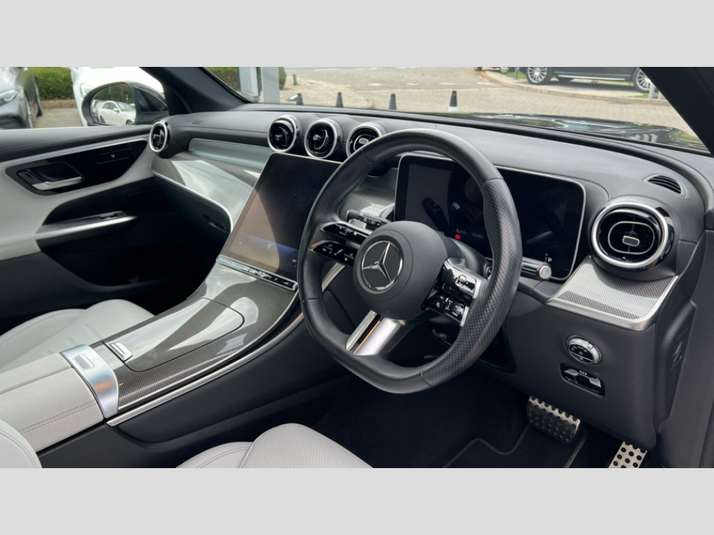 Mercedes-Benz Glc GLC 300 4Matic AMG Line 5dr 9G-Tronic 11.9" high resolution multimedia colour display, 12.3" Digital individually configurable instrument display, Acoustic presence indicator, Active lane keeping assist, Attention assist, Bluetooth interface for hands free telephone, Collision prevention assist plus, Cruise control with speedtronic variable speed limiter, Direct steer speed sensitive steering, DYNAMIC SELECT with a choice of driving modes (ECO, Comfort, Sport, Sport+ and Individual), Easy pack automatic powered tailgate, eCall emergency call system, ECO start/stop function, Fingerprint scanner, Fluorescent jacket for driver, Hard disk navigation, Instrument display in miles with English lettering, MBUX navigation premium, MBUX voice control activated by keywords "Hey Mercedes", Mercedes me connect, Outside temperature display, Remote boot release, Remote services, Service indicator (ASSYST), Smartphone integration, Speed limit assist, Status display for rear seat belts in instrument cluster, Trip computer, Wireless charging, 48V Mild hybrid technology, 4MATIC permanent four wheel drive, 62 litre fuel tank, 9G TRONIC plus automatic transmission, Petrol Particulate Filter (PPF), Sport suspension, DAB digital radio tuner, MBUX extended functions, Mercedes benz sound system, Pre installation for Mercedes Benz Link, Adaptive brake lights, Adaptive high beam assist, Aluminium look running boards with rubber studs, Aluminium roof rails, AMG bodystyling front apron, rear apron and side skirts, AMG Line exterior, Auto headlights, Body colour bumpers, Body colour door mirrors, Electrically adjustable door mirrors, Front and rear electric windows, Headlight washers, Heat insulating dark tinted glass, Heated rear window, High level LED brake light, LED high performance headlamps with integrated LED daytime running lights, LED indicator lights, LED rear fog lights, LED tail lamp, Radiator grille with Mercedes Benz pattern and integreated Mercedes star and louvre in dark grey matt with chrome inlay and black frame, Rain sensor windscreen wipers, Range adjustable headlights, Rear side wing doors, Rear wiper, Two chrome plated tailpipe trim elements, Variable front intermittent wipers, Welcome and follow-me home light functionality, Wider wheel arch for AMG wheels, 3 seat bench in 2nd row, 40:20:40 split folding rear seats, Ambient lighting, AMG line interior, Artico man-made leather upholstery, Automatic child seat recognition sensor, Black fabric roof lining, Black floor mats with AMG lettering, Double cup holder in centre console, Easy-pack removable load compartment cover, Front centre armrest with stowage compartment, Front head restraints, Galvanised steering wheel gearshift paddles, Heated front seats, Height/reach adjustable steering column, Illuminated glove compartment, Instrument panel and beltlines in ARTICO manmade leather in nappa look, Multifunction sports steering wheel in nappa leather, Rear centre headrest, Rear head restraints, Rear top tether child seat ISOFIX attachment, Single front passenger seat, Sports pedals with stainless steel surfaces and rubber studs, Sports seats, Steering wheel with audio and onboard settings control, Sun visors, THERMATIC 2 zone automatic climate control, Anti theft protection package - GLC, Boot comfort package - GLC, Exterior chrome package - GLC, Interior chrome package - GLC, Interior lighting pack - GLC, Mirror pack - GLC, Parking package with reversing camera - GLC, Seat comfort package - GLC, Stowage space package - GLC, USB Package - GLC, 3 rear 3 point seatbelts, Active braking assist, Anti-lock braking system (ABS), ASR traction control, Automatic front passenger airbag deactivation, Black seat belts, Brake calipers with Mercedes-Benz lettering + perforated brake discs, Braking system with larger brake discs on the front axle, Child proof door locks, Dual-stage airbags - driver and front passenger, driver knee bag and window bags for driver, front passenger and rear passengers, Electronic parking brake, Electronic stability programme (ESP) with curve dynamic assist and cross wind assist, Front and rear seatbelt reminder, Front passenger seat occupancy sensor, Front seatbelt pretensioners, Hill start assist, Tyre pressure monitoring system, Warning triangle and first aid kit, Alarm system/interior protection/immobiliser, Automatic door locking, Guard 360 degree vehicle protection plus, Keyless Go starting function, Remote central locking, Centre console in metal structure finish, Metal structure trim, 19" AMG 5 spoke aerodynamically optimised light alloy wheels in painted black with high sheen flange, Summer tyres, TIREFIT with tyre inflation compressor