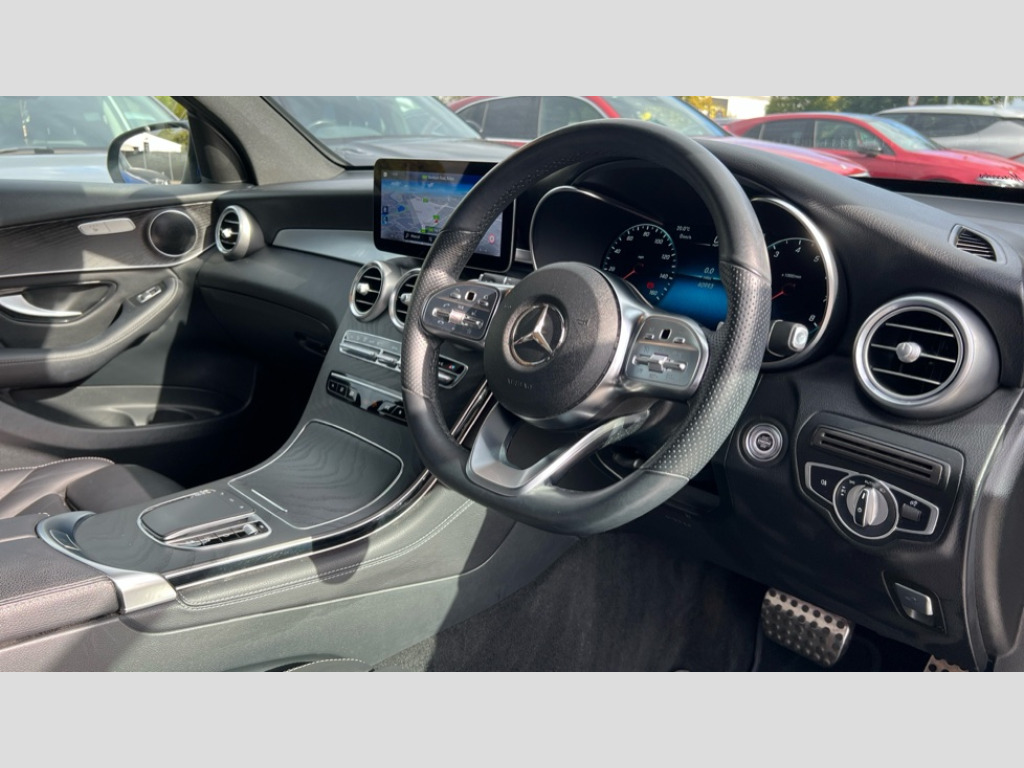 Mercedes-Benz Glc GLC 300 4Matic AMG Line Premium 5dr 9G-Tronic Active parking assist with parktronic system, Attention assist, Bluetooth interface for hands free telephone, Collision prevention assist plus, DYNAMIC SELECT with a choice of driving modes (ECO, Comfort, Sport, Sport+ and Individual), ECO start/stop function, Hard disk navigation, Hey Mercedes Voice activation, Instrument cluster with12.3-inch digital instrument cluster display. High resolution instrument cluster screen with choice of three display styles, MBUX augmented reality for navigation, MBUX Interior assistant, Mercedes connect me with remote online services, Multi function trip computer, Outside temperature display, rear seatbelt status indicator, Power opening/closing tailgate, Remote boot release, Reversing camera, Service indicator (ASSYST), Smartphone integration with Apple CarPlay and Android auto, Traffic sign assist, Wireless charging, 66 litre fuel tank, Petrol Particulate Filter (PPF), Sports suspension tuned for improved handling and driving dynamics, DAB Digital radio, MBUX multimedia system with DAB digital radio and touchpad including satellite navigation, Media display 10.25-inch touchscreen display, Mercedes Benz sound system (225w) includes mid-range sound system, Pre installation for Mercedes Benz Link, USB ports x 2 in centre console, Adaptive brake lights, Aluminium roof rails, AMG bodystyling - AMG front apron with sporty air intakes and chrome trim element, AMG diffuser-look rear apron with insert in black, Body colour door mirrors, Body coloured bumpers, Electric windows one touch open/close, Electrically adjustable and heated door mirrors, Exhaust tailpipe finisher, Front and rear exterior chrome trim, Headlamp assist automatic headlamp activation, LED tail lamp, Multi beam LED headlamps with 84 indiviually control LED,daytime running lamps,Active Light,cornering light,enhanced fog lamp,adaptive Highbeam Assist, Privacy glass (to rear of B post), Radiator diamond grille, Rain sensor windscreen wipers, Range adjustable headlights, Rear wiper, Running boards, Tinted glass all round, Two chrome plated tailpipe trim elements, 2 way rear head restraints, 3-spoke multifunction AMG steering wheel in black nappa leather with flattened bottom section, chrome inserts and perforated leather in grip area, 40:20:40 split folding rear seats, Ambient lighting, AMG floor mats with edging and embroidered AMG lettering, AMG sports seats, Automatic child seat recognition sensor, Automatic climate control, Black roof lining, Dividing net - rear, Double cup holder in centre console, Front armrest with storage box, Front door sills with Mercedes Benz lettering, Front seats with electric adjust (backrest, height and seat cushion inclination) with 4 way electric lumbar support and manual cushion depth adjust, Gearshift paddles, Heated front seats, Height/reach adjustable steering column, Illuminated and lockable glove compartment, Leather upholstery, Rear top tether child seat ISOFIX attachment, Sports pedals with stainless steel surfaces and rubber studs, Sunvisors with illuminated vanity mirrors, Easy-pack load compartment cover, Interior lighting pack - GLC, Mirror pack - GLC, Storage pack - GLC, 3 rear 3 point seatbelts, Active bonnet, Adaptive brake system with HOLD function and brake drying in the wet, ASR, Black seat belts, Brake calipers with Mercedes-Benz lettering + perforated brake discs, Child proof door locks, Dual-stage airbags - driver and front passenger, driver knee bag and window bags for driver, front passenger and rear passengers, Electronic parking brake, Electronic stability programme (ESP) with curve dynamic assist and cross wind assist, Front and rear seatbelt reminder, Front passenger seat occupancy sensor, Hill hold function, Tyre pressure monitoring system, Warning triangle and first aid kit, Alarm system/interior protection/immobiliser, Automatic door locking, KEYLESS-GO starting function, Remote central locking, Open pore black ash wood trim, 20" AMG multi spoke alloy wheels painted in titanium grey with high sheen finish and run flat tyres