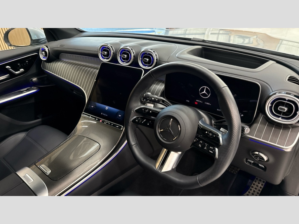 Mercedes-Benz Glc GLC 300 4Matic AMG Line Premium Plus 5dr 9G-Tronic 11.9" high resolution multimedia colour display, 12.3" Digital individually configurable instrument display, Acoustic presence indicator, Active lane keeping assist, Attention assist, Bluetooth interface for hands free telephone, Collision prevention assist plus, Direct steer speed sensitive steering, DYNAMIC SELECT with a choice of driving modes (ECO, Comfort, Sport and Individual), eCall emergency call system, ECO start/stop function, Fingerprint scanner, Fluorescent jacket for driver, Hard disc navigation, Head up Display, Instrument display in miles with English lettering, MBUX navigation premium, MBUX voice control activated by keywords "Hey Mercedes", Mercedes me connect, Multi function trip computer, Outside temperature display, Remote boot release, Remote services plus, Road sign recognition system, Service indicator (ASSYST), Smartphone integration, Status display for rear seat belts in instrument cluster, Tailgate, Traffic sign assist, Wireless charging system for mobile devices in the front, 48V Mild hybrid technology, 4MATIC permanent four wheel drive, 62 litre fuel tank, 9G TRONIC plus automatic transmission, Petrol Particulate Filter (PPF), Residual engine heat utilisation, Burmester 3D surround sound system, DAB digital radio tuner, MBUX extended functions, Pre installation for Mercedes Benz Link, Sound personalisation, Adaptive brake lights, Adaptive high beam assist plus, Aluminium look running boards with rubber studs, Aluminium roof rails, AMG bodystyling front apron, rear apron and side skirts, AMG Line exterior, Auto headlights, Body colour bumpers, Body colour door mirrors, Digital light LED headlights, Electric panoramic glass sunroof, Electrically adjustable door mirrors, Front and rear electric windows, Headlight washers, Heat and noise insulating acoustic glass, Heat insulating dark tinted glass, Heated rear window, High level LED brake light, Integrated LED daytime running lights, LED indicator lights, LED rear fog lights, LED tail lamp, Motor way mode function and locator lighting, Radiator grille with Mercedes Benz pattern and integreated Mercedes star and louvre in dark grey matt with chrome inlay and black frame, Rain sensor windscreen wipers, Range adjustable headlights, Rear side wing doors, Rear wiper, Transparent Bonnet, Two chrome plated tailpipe trim elements, Variable front intermittent wipers, Welcome and follow-me home light functionality, Wheel arch liners in the vehicle colour, 3 seat bench in 2nd row, 40:20:40 split folding rear seats, Air balance package, Ambient lighting premium, AMG floor mats, AMG line interior, Artico man-made leather upholstery, Audio and onboard settings control on multifunction steering wheel, Automatic child seat recognition sensor, Black fabric roof lining, Comfort seats, Double cup holder in centre console, Easy-pack removable load compartment cover, Electrically height/reach adjustable steering column, Front centre armrest with stowage compartment, Front head restraints, Galvanised steering wheel gearshift paddles, Heated steering wheel, Illuminated door sill panels with Mercedes Benz lettering, Illuminated glove compartment, Instrument panel and beltlines in ARTICO manmade leather in nappa look, Multifunction sports steering wheel in nappa leather, Partition net, Rear centre headrest, Rear head restraints, Rear top tether child seat ISOFIX attachment, Single front passenger seat, Sports pedals with stainless steel surfaces and rubber studs, Sun visors, THERMATIC 2 zone automatic climate control, Anti theft protection package - GLC, Boot comfort package - GLC, Energizing plus pack - GLC Coupe, Exterior chrome package - GLC, Interior chrome package - GLC, Interior lighting pack - GLC, Keyless-Go comfort package - GLC, Memory pack - GLC, Mirror pack - GLC, Parking package with 360 degree camera - GLC, Stowage space package - GLC, USB Plus Pack - GLC, 3 rear 3 point seatbelts, Anti-lock braking system (ABS), ASR traction control, Automatic front passenger airbag deactivation, Black seat belts, Brake calipers with Mercedes-Benz lettering + perforated brake discs, Braking system with larger brake discs on the front axle, Child proof door locks, Dual-stage airbags - driver and front passenger, driver knee bag and window bags for driver, front passenger and rear passengers, Electronic parking brake, Electronic stability programme (ESP) with curve dynamic assist and cross wind assist, Front and rear seatbelt reminder, Front passenger seat occupancy sensor, Front seatbelt pretensioners, Hill start assist, Tyre pressure monitoring system, Warning triangle and first aid kit, Automatic door locking, Guard 360 degree vehicle protection plus, Interior protection/immobiliser, Remote central locking, Black open pore aluminium lines wood trim with centre console in metal structure finish, 20" AMG multi spoke light alloy wheels in painted black with high sheen finish, Summer tyres, TIREFIT with tyre inflation compressor