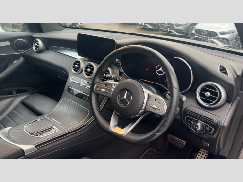 Mercedes-Benz Glc GLC 300d 4Matic AMG Line Premium 5dr 9G-Tronic Attention assist, Bluetooth interface for hands free telephone, Collision prevention assist plus, Cruise control with speedtronic variable speed limiter, Direct steer speed sensitive steering, DYNAMIC SELECT with a choice of driving modes (ECO, Comfort, Sport, Sport+ and Individual), Easy pack automatic powered tailgate, ECO start/stop function, Hard disk navigation, Hey Mercedes Voice activation, Instrument cluster with12.3-inch digital instrument cluster display. High resolution instrument cluster screen with choice of three display styles, MBUX augmented reality for navigation, MBUX Interior assistant, Mercedes connect me with remote online services, Multi function trip computer, Outside temperature display, rear seatbelt status indicator, Parktronic system with rear cross traffic alert and drive away assist, Remote boot release, Reversing camera, Service indicator (ASSYST), Smartphone integration with Apple CarPlay and Android auto, Traffic sign assist, Wireless charging, 4MATIC permanent four wheel drive, 66 litre fuel tank, 9G TRONIC plus automatic transmission with steering column gear selector, DIRECT SELECT steering wheel gearshift paddles, Diesel particulate filter, Sports suspension tuned for improved handling and driving dynamics, MBUX multimedia system with DAB digital radio and touchpad including satellite navigation, Media display 10.25-inch touchscreen display, Mercedes Benz sound system (225w) includes mid-range sound system, Pre installation for Mercedes Benz Link, USB ports x 2 in centre console, Adaptive brake lights, Aluminium roof rails, AMG bodystyling - AMG front apron with sporty air intakes and chrome trim element, AMG diffuser-look rear apron with insert in black, Body colour door mirrors, Body coloured bumpers, Electric windows one touch open/close, Electrically adjustable and heated door mirrors, Front, side and rear exterior chrome trim, Headlamp assist automatic headlamp activation, LED tail lamp, Motor way mode function and locator lighting, Multi beam LED headlamps with 84 indiviually control LED,daytime running lamps,Active Light,cornering light,enhanced fog lamp,adaptive Highbeam Assist, Privacy glass with dark glass from B pillar backwards, Radiator diamond grille, Rain sensor windscreen wipers, Range adjustable headlights, Rear wiper, Running boards, Tinted glass all round with single layer safety glass, Two chrome plated tailpipe trim elements, 2 way rear head restraints, 3-spoke multifunction sport AMG steering wheel in black nappa leather with flattened bottom section, chrome insert and perforated leather in grip area, 40:20:40 split folding rear seats, Ambient lighting, AMG floor mats with edging and embroidered AMG lettering, AMG sports seats, Artico man-made leather upper dashboard with contrast topstitching, Automatic child seat recognition sensor, Black roof lining, Dividing net - rear, Double cup holder in centre console, Easy-pack removable load compartment cover, Front armrest with storage box, Front door sills with Mercedes Benz lettering, Front head restraints, Front seats with electric adjust (backrest, height and seat cushion inclination) with 4 way electric lumbar support and manual cushion depth adjust, Heated front seats, Height/reach adjustable steering column, Illuminated and lockable glove compartment, Leather upholstery, Rear top tether child seat ISOFIX attachment, Sports pedals with stainless steel surfaces and rubber studs, Steering wheel with touch control buttons, THERMOTRONIC 3 zone automatic climate control, Interior lighting pack - GLC, Mirror pack - GLC, Storage pack - GLC, 3 rear 3 point seatbelts, Active bonnet, Adaptive brake system with HOLD function and brake drying in the wet, ASR, Black seat belts, Brake calipers with Mercedes-Benz lettering + perforated brake discs, Child proof door locks, Dual-stage airbags - driver and front passenger, driver knee bag and window bags for driver, front passenger and rear passengers, Electronic parking brake, Electronic stability programme (ESP) with curve dynamic assist and cross wind assist, Front and rear seatbelt reminder, Front passenger seat occupancy sensor, Hill hold function, Tyre pressure monitoring system, Warning triangle and first aid kit, Alarm system/interior protection/immobiliser, Automatic door locking, KEYLESS-GO starting function, Remote central locking, Open pore black ash wood trim, 20" AMG multi spoke design alloy wheels painted in titanium grey with high sheen finish, Run flat tyres