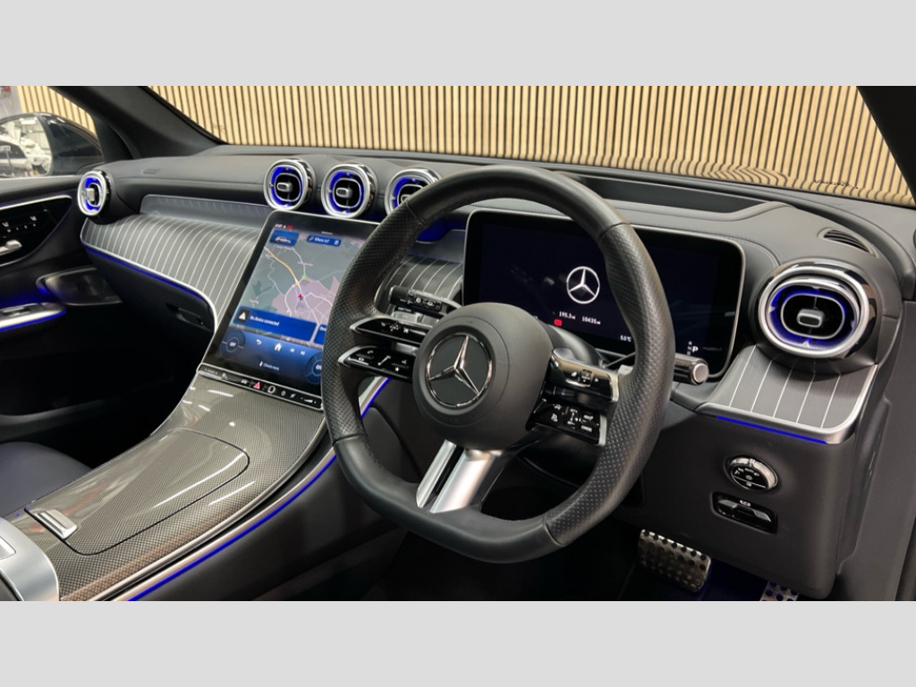 Mercedes-Benz Glc GLC 300d 4Matic AMG Line Premium + 5dr 9G-Tronic 11.9" high resolution multimedia colour display, 12.3" Digital individually configurable instrument display, Acoustic presence indicator, Active lane keeping assist, Attention assist, Bluetooth interface for hands free telephone, Collision prevention assist plus, Direct steer speed sensitive steering, DYNAMIC SELECT with a choice of driving modes (ECO, Comfort, Sport and Individual), eCall emergency call system, ECO start/stop function, Fingerprint scanner, Fluorescent jacket for driver, Hard disc navigation, Head up Display, Instrument display in miles with English lettering, MBUX navigation premium, MBUX voice control activated by keywords "Hey Mercedes", Mercedes me connect, Multi function trip computer, Outside temperature display, Remote boot release, Remote services plus, Road sign recognition system, Service indicator (ASSYST), Smartphone integration, Status display for rear seat belts in instrument cluster, Tailgate, Traffic sign assist, Wireless charging system for mobile devices in the front, 48V Mild hybrid technology, 4MATIC permanent four wheel drive, 62 litre fuel tank, 9G TRONIC plus automatic transmission, Diesel particulate filter, Residual engine heat utilisation, Burmester 3D surround sound system, DAB digital radio tuner, MBUX extended functions, Pre installation for Mercedes Benz Link, Sound personalisation, Adaptive brake lights, Adaptive high beam assist plus, Aluminium look running boards with rubber studs, Aluminium roof rails, AMG bodystyling front apron, rear apron and side skirts, AMG Line exterior, Auto headlights, Body colour bumpers, Body colour door mirrors, Digital light LED headlights, Electric panoramic glass sunroof, Electrically adjustable door mirrors, Front and rear electric windows, Headlight washers, Heat and noise insulating acoustic glass, Heat insulating dark tinted glass, Heated rear window, High level LED brake light, Integrated LED daytime running lights, LED indicator lights, LED rear fog lights, LED tail lamp, Motor way mode function and locator lighting, Radiator grille with Mercedes Benz pattern and integreated Mercedes star and louvre in dark grey matt with chrome inlay and black frame, Rain sensor windscreen wipers, Range adjustable headlights, Rear side wing doors, Rear wiper, Transparent Bonnet, Two chrome plated tailpipe trim elements, Variable front intermittent wipers, Welcome and follow-me home light functionality, Wheel arch liners in the vehicle colour, 3 seat bench in 2nd row, 40:20:40 split folding rear seats, Air balance package, Ambient lighting premium, AMG floor mats, AMG line interior, Artico man-made leather upholstery, Audio and onboard settings control on multifunction steering wheel, Automatic child seat recognition sensor, Black fabric roof lining, Comfort seats, Double cup holder in centre console, Easy-pack removable load compartment cover, Electrically height/reach adjustable steering column, Front centre armrest with stowage compartment, Front head restraints, Galvanised steering wheel gearshift paddles, Heated steering wheel, Illuminated door sill panels with Mercedes Benz lettering, Illuminated glove compartment, Instrument panel and beltlines in ARTICO manmade leather in nappa look, Multifunction sports steering wheel in nappa leather, Partition net, Rear centre headrest, Rear head restraints, Rear top tether child seat ISOFIX attachment, Single front passenger seat, Sports pedals with stainless steel surfaces and rubber studs, Sun visors, THERMATIC 2 zone automatic climate control, Anti theft protection package - GLC, Boot comfort package - GLC, Energizing plus pack - GLC Coupe, Exterior chrome package - GLC, Interior chrome package - GLC, Interior lighting pack - GLC, Keyless-Go comfort package - GLC, Memory pack - GLC, Mirror pack - GLC, Parking package with 360 degree camera - GLC, Stowage space package - GLC, USB Plus Pack - GLC, 3 rear 3 point seatbelts, Anti-lock braking system (ABS), ASR traction control, Automatic front passenger airbag deactivation, Black seat belts, Brake calipers with Mercedes-Benz lettering + perforated brake discs, Braking system with larger brake discs on the front axle, Child proof door locks, Dual-stage airbags - driver and front passenger, driver knee bag and window bags for driver, front passenger and rear passengers, Electronic parking brake, Electronic stability programme (ESP) with curve dynamic assist and cross wind assist, Front and rear seatbelt reminder, Front passenger seat occupancy sensor, Front seatbelt pretensioners, Hill start assist, Tyre pressure monitoring system, Warning triangle and first aid kit, Automatic door locking, Guard 360 degree vehicle protection plus, Interior protection/immobiliser, Remote central locking, Black open pore aluminium lines wood trim with centre console in metal structure finish, 20" AMG multi spoke light alloy wheels in painted black with high sheen finish, Summer tyres, TIREFIT with tyre inflation compressor