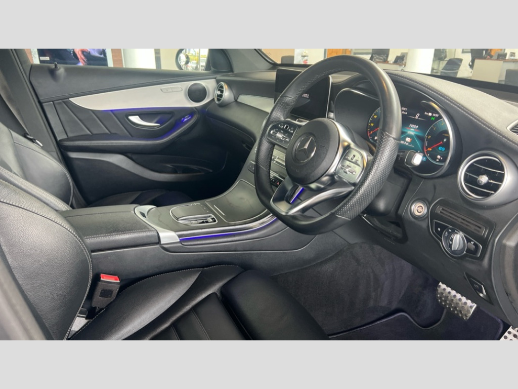 Mercedes-Benz Glc GLC 300de 4Matic AMG Line Premium 5dr 9G-Tronic Active parking assist with parktronic system, Attention assist, Bluetooth interface for hands free telephone, Collision prevention assist plus, Cruise control with speedtronic variable speed limiter, Direct steer speed sensitive steering, DYNAMIC SELECT with a choice of driving modes (ECO, Comfort, Sport, Sport+ and Individual), Easy pack automatic powered tailgate, ECO start/stop function, Hard disk navigation, Hey Mercedes Voice activation, Instrument cluster with12.3-inch digital instrument cluster display. High resolution instrument cluster screen with choice of three display styles, MBUX Interior assistant, Mercedes connect me with remote online services, Multi function trip computer, Outside temperature display, rear seatbelt status indicator, Remote and charging services plus, Remote boot release, Reversing camera, Service indicator (ASSYST), Smartphone integration with Apple CarPlay and Android auto, Traffic sign assist, 1 x 3 pin domestic 8m straight charging cable, 1 x type 2 and 3 phase 4m straight wallbox cable, 4MATIC permanent four wheel drive, 50 litre fuel tank, 9G TRONIC plus automatic transmission with steering column gear selector, DIRECT SELECT steering wheel gearshift paddles, Diesel particulate filter, Sports suspension tuned for improved handling and driving dynamics, 5 speakers, Frontbass loudspeakers, MBUX multimedia system with DAB digital radio and touchpad, Media display 10.25-inch touchscreen display, Pre installation for Mercedes Benz Link, USB ports x 2 in centre console, Adaptive brake lights, Aluminium roof rails, AMG bodystyling - AMG front apron with sporty air intakes and chrome trim element, AMG diffuser-look rear apron with insert in black, Body colour door mirrors, Body coloured bumpers, Electric windows one touch open/close, Electrically adjustable and heated door mirrors, Front, side and rear exterior chrome trim, Headlamp assist automatic headlamp activation, LED high performance headlamps with integrated LED daytime running lights, LED tail lamp, Motor way mode function and locator lighting, Privacy glass with dark glass from B pillar backwards, Radiator diamond grille, Rain sensor windscreen wipers, Range adjustable headlights, Rear wiper, Running boards, Tinted glass all round with single layer safety glass, Two chrome plated tailpipe trim elements, 2 way rear head restraints, 3-spoke multifunction sport AMG steering wheel in black nappa leather with flattened bottom section, chrome insert and perforated leather in grip area, 40:20:40 split folding rear seats, Ambient lighting, AMG floor mats with edging and embroidered AMG lettering, AMG sports seats, Artico man-made leather upper dashboard with contrast topstitching, Automatic child seat recognition sensor, Black roof lining, Dividing net - rear, Double cup holder in centre console, Easy-pack removable load compartment cover, Front armrest with storage box, Front door sills with Mercedes Benz lettering, Front head restraints, Front seats with electric adjust (backrest, height and seat cushion inclination) with 4 way electric lumbar support and manual cushion depth adjust, Heated front seats, Height/reach adjustable steering column, Illuminated and lockable glove compartment, Leather upholstery, Pre-entry climate control, Rear top tether child seat ISOFIX attachment, Sports pedals with stainless steel surfaces and rubber studs, Steering wheel with touch control buttons, THERMOTRONIC 3 zone automatic climate control, Interior lighting pack - GLC, Mirror pack - GLC, Storage pack - GLC, 3 rear 3 point seatbelts, Active bonnet, Adaptive brake system with HOLD function and brake drying in the wet, ASR, Black seat belts, Brake calipers with Mercedes-Benz lettering + perforated brake discs, Child proof door locks, Dual-stage airbags - driver and front passenger, driver knee bag and window bags for driver, front passenger and rear passengers, Electronic parking brake, Electronic stability programme (ESP) with curve dynamic assist and cross wind assist, Front and rear seatbelt reminder, Front passenger seat occupancy sensor, Hill hold function, Radar-based recuperation, Tyre pressure monitoring system, Warning triangle and first aid kit, Alarm system/interior protection/immobiliser, Automatic door locking, KEYLESS-GO starting function, Remote central locking, Open pore black ash wood trim, 20" AMG multi spoke design alloy wheels painted in titanium grey with high sheen finish, Run flat tyres, Summer tyres