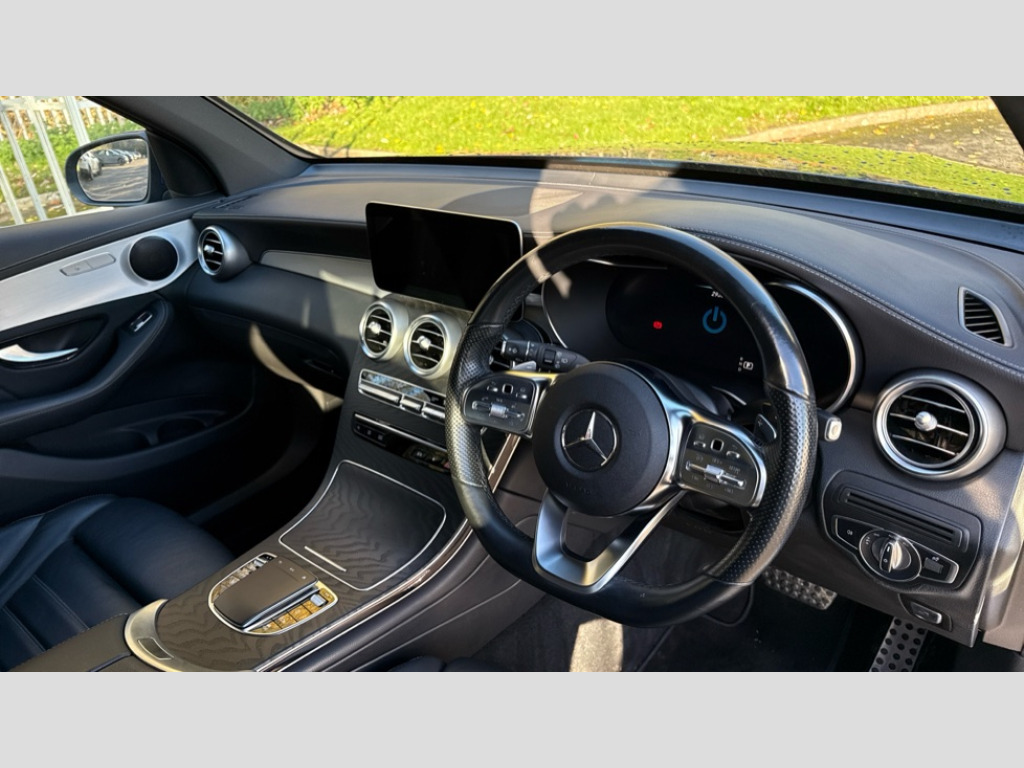 Mercedes-Benz Glc GLC 300de 4Matic AMG Line Premium 5dr 9G-Tronic Active parking assist with parktronic system, Attention assist, Bluetooth interface for hands free telephone, Collision prevention assist plus, Cruise control with speedtronic variable speed limiter, Direct steer speed sensitive steering, DYNAMIC SELECT with a choice of driving modes (ECO, Comfort, Sport, Sport+ and Individual), Easy pack automatic powered tailgate, ECO start/stop function, Hard disk navigation, Hey Mercedes Voice activation, Instrument cluster with12.3-inch digital instrument cluster display. High resolution instrument cluster screen with choice of three display styles, MBUX Interior assistant, Mercedes connect me with remote online services, Multi function trip computer, Outside temperature display, rear seatbelt status indicator, Remote and charging services plus, Remote boot release, Reversing camera, Service indicator (ASSYST), Smartphone integration with Apple CarPlay and Android auto, Traffic sign assist, 1 x 3 pin domestic 8m straight charging cable, 1 x type 2 and 3 phase 4m straight wallbox cable, 4MATIC permanent four wheel drive, 50 litre fuel tank, 9G TRONIC plus automatic transmission with steering column gear selector, DIRECT SELECT steering wheel gearshift paddles, Diesel particulate filter, Sports suspension tuned for improved handling and driving dynamics, 5 speakers, Frontbass loudspeakers, MBUX multimedia system with DAB digital radio and touchpad, Media display 10.25-inch touchscreen display, Pre installation for Mercedes Benz Link, USB ports x 2 in centre console, Adaptive brake lights, Aluminium roof rails, AMG bodystyling - AMG front apron with sporty air intakes and chrome trim element, AMG diffuser-look rear apron with insert in black, Body colour door mirrors, Body coloured bumpers, Electric windows one touch open/close, Electrically adjustable and heated door mirrors, Front, side and rear exterior chrome trim, Headlamp assist automatic headlamp activation, LED high performance headlamps with integrated LED daytime running lights, LED tail lamp, Motor way mode function and locator lighting, Privacy glass with dark glass from B pillar backwards, Radiator diamond grille, Rain sensor windscreen wipers, Range adjustable headlights, Rear wiper, Running boards, Tinted glass all round with single layer safety glass, Two chrome plated tailpipe trim elements, 2 way rear head restraints, 3-spoke multifunction sport AMG steering wheel in black nappa leather with flattened bottom section, chrome insert and perforated leather in grip area, 40:20:40 split folding rear seats, Ambient lighting, AMG floor mats with edging and embroidered AMG lettering, AMG sports seats, Artico man-made leather upper dashboard with contrast topstitching, Automatic child seat recognition sensor, Black roof lining, Dividing net - rear, Double cup holder in centre console, Easy-pack removable load compartment cover, Front armrest with storage box, Front door sills with Mercedes Benz lettering, Front head restraints, Front seats with electric adjust (backrest, height and seat cushion inclination) with 4 way electric lumbar support and manual cushion depth adjust, Heated front seats, Height/reach adjustable steering column, Illuminated and lockable glove compartment, Leather upholstery, Pre-entry climate control, Rear top tether child seat ISOFIX attachment, Sports pedals with stainless steel surfaces and rubber studs, Steering wheel with touch control buttons, THERMOTRONIC 3 zone automatic climate control, Interior lighting pack - GLC, Mirror pack - GLC, Storage pack - GLC, 3 rear 3 point seatbelts, Active bonnet, Adaptive brake system with HOLD function and brake drying in the wet, ASR, Black seat belts, Brake calipers with Mercedes-Benz lettering + perforated brake discs, Child proof door locks, Dual-stage airbags - driver and front passenger, driver knee bag and window bags for driver, front passenger and rear passengers, Electronic parking brake, Electronic stability programme (ESP) with curve dynamic assist and cross wind assist, Front and rear seatbelt reminder, Front passenger seat occupancy sensor, Hill hold function, Radar-based recuperation, Tyre pressure monitoring system, Warning triangle and first aid kit, Alarm system/interior protection/immobiliser, Automatic door locking, KEYLESS-GO starting function, Remote central locking, Open pore black ash wood trim, 20" AMG multi spoke design alloy wheels painted in titanium grey with high sheen finish, Run flat tyres, Summer tyres