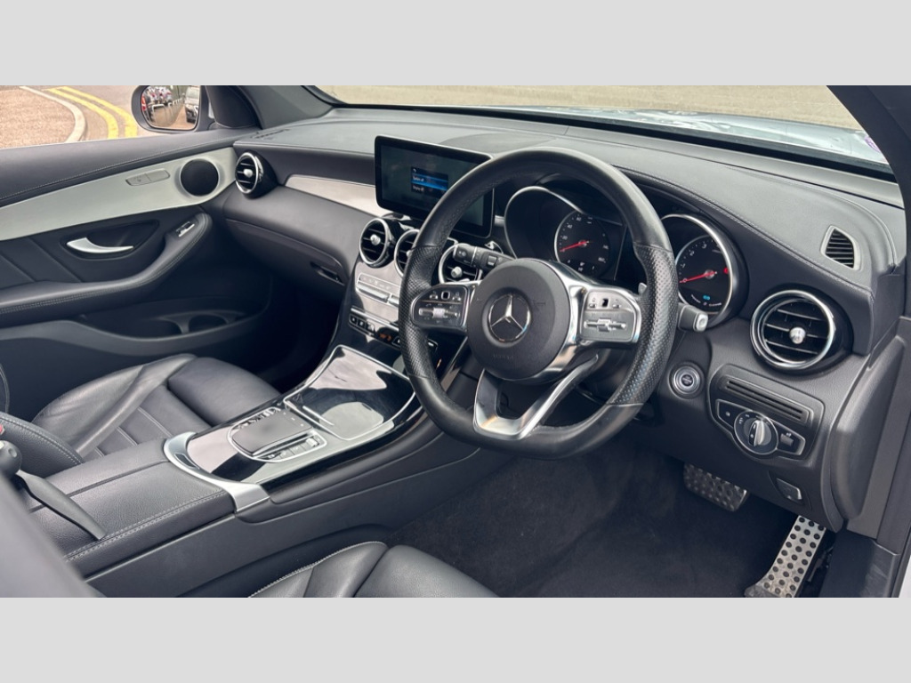 Mercedes-Benz Glc GLC 300e 4Matic AMG Line 5dr 9G-Tronic Active parking assist with parktronic system, Attention assist, Bluetooth interface for hands free telephone, Collision prevention assist plus, Cruise control with speedtronic variable speed limiter, Direct steer speed sensitive steering, DYNAMIC SELECT with a choice of driving modes (ECO, Comfort, Sport, Sport+ and Individual), Easy pack automatic powered tailgate, eCall emergency call system, ECO start/stop function, Hard disk navigation, Hey Mercedes Voice activation, Instrument cluster with 5.5-inch TFT multi-function display, MBUX Interior assistant, Mercedes connect me with remote online services, Multi function trip computer, Outside temperature display, rear seatbelt status indicator, Remote and charging services plus, Remote boot release, Reversing camera, Service indicator (ASSYST), 1 x 3 pin domestic 8m straight charging cable, 1 x type 2 and 3 phase 4m straight wallbox cable, 4MATIC permanent four wheel drive, 50 litre fuel tank, 7.4 kW onboard charger, 9G TRONIC plus automatic transmission with steering column gear selector, DIRECT SELECT steering wheel gearshift paddles, Petrol Particulate Filter (PPF), Sports suspension tuned for improved handling and driving dynamics, 5 speakers, Frontbass loudspeakers, MBUX multimedia system with DAB digital radio and touchpad, Media display 10.25-inch touchscreen display, Pre installation for Mercedes Benz Link, USB ports x 2 in centre console, Adaptive brake lights, Aluminium roof rails, AMG bodystyling - AMG front apron with sporty air intakes and chrome trim element, AMG diffuser-look rear apron with insert in black, Body colour door mirrors, Body coloured bumpers, Electric windows one touch open/close, Electrically adjustable and heated door mirrors, Front, side and rear exterior chrome trim, Headlamp assist automatic headlamp activation, High level LED brake light, LED high performance headlamps with integrated LED daytime running lights, LED tail lamp, Privacy glass with dark glass from B pillar backwards, Radiator diamond grille, Rain sensor windscreen wipers, Range adjustable headlights, Rear side wing doors, Rear wiper, Roof spoiler, Tinted glass all round with single layer safety glass, Tinted rear windows, Two chrome plated tailpipe trim elements, Variable front intermittent wipers, 2 way rear head restraints, 3-spoke multifunction sport AMG steering wheel in black nappa leather with flattened bottom section, chrome insert and perforated leather in grip area, 40:20:40 split folding rear seats, AMG floor mats with edging and embroidered AMG lettering, AMG sports seats, Artico man-made leather upper dashboard with contrast topstitching, Automatic child seat recognition sensor, Black roof lining, Dividing net - rear, Double cup holder in centre console, Easy-pack removable load compartment cover, Front armrest with storage box, Front door sills with Mercedes Benz lettering, Front head restraints, Front passenger seat, Front seats with electric adjust (backrest, height and seat cushion inclination) with 4 way electric lumbar support and manual cushion depth adjust, Heated front seats, Height/reach adjustable steering column, Illuminated and lockable glove compartment, Leather upholstery, Pre-entry climate control, Rear top tether child seat ISOFIX attachment, Sports pedals with stainless steel surfaces and rubber studs, Steering wheel with touch control buttons, THERMOTRONIC 3 zone automatic climate control, Interior lighting pack - GLC, Mirror pack - GLC, Storage pack - GLC, 3 rear 3 point seatbelts, Active bonnet, Adaptive brake system with HOLD function and brake drying in the wet, ASR, Black seat belts, Brake calipers with Mercedes-Benz lettering + perforated brake discs, Child proof door locks, Dual-stage airbags - driver and front passenger, driver knee bag and window bags for driver, front passenger and rear passengers, Electronic parking brake, Electronic stability programme (ESP) with curve dynamic assist and cross wind assist, Front and rear seatbelt reminder, Front passenger seat occupancy sensor, Hill hold function, Radar-based recuperation, Tyre pressure monitoring system, Warning triangle and first aid kit, Alarm system/interior protection/immobiliser, Automatic door locking, KEYLESS-GO starting function, Remote central locking, High gloss black with grained aluminium trim, 19" AMG 5 twin spoke alloy wheels painted tremolite grey with high sheen finish, Summer tyres, Tirefit tyre sealant kit