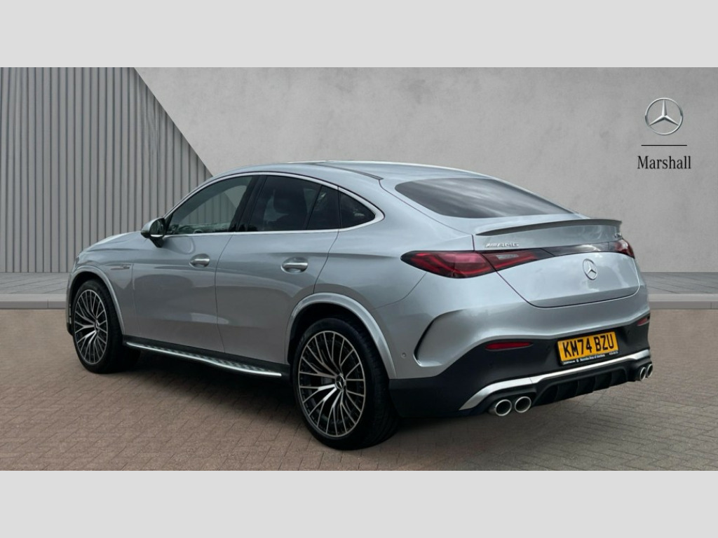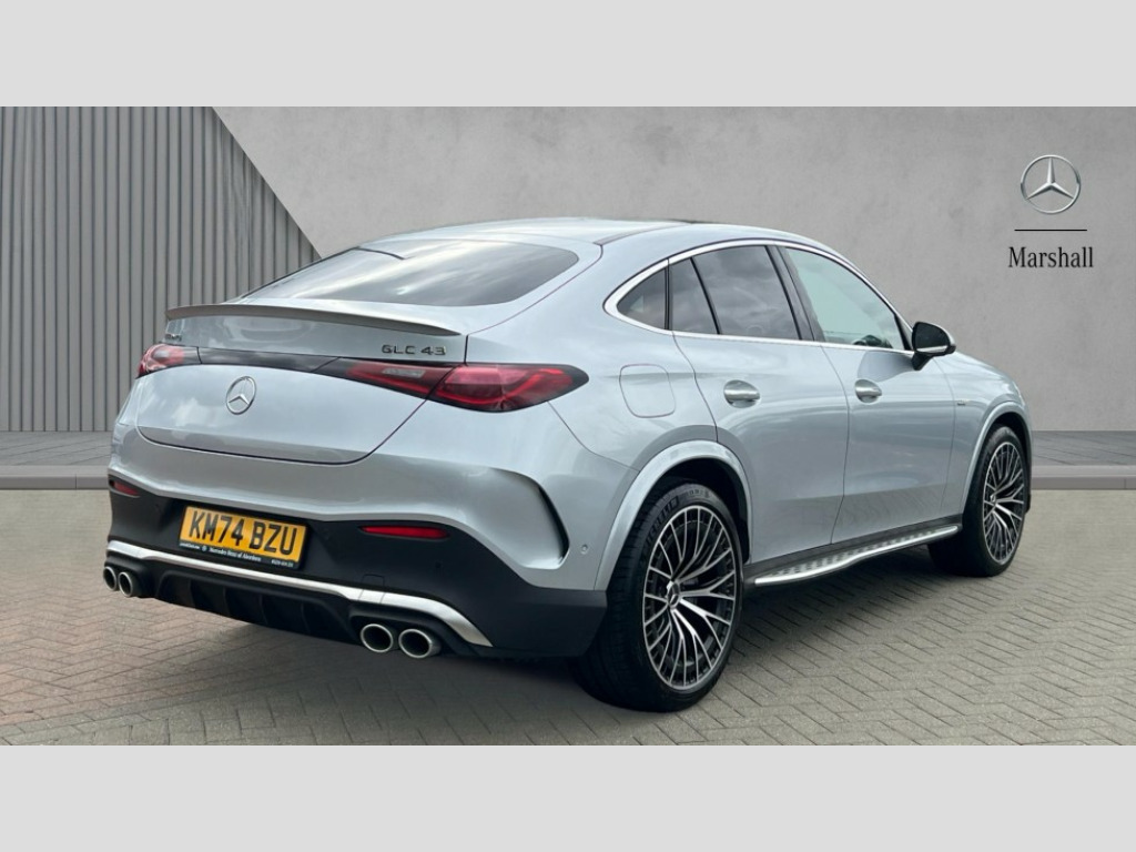 Mercedes-Benz Glc GLC 43 4Matic Premium 5dr MCT 11.9" high resolution multimedia colour display, 12.3" Digital individually configurable instrument display, 360 degree camera, Active brake assist plus, Active parking assist with parktronic system, AMG DYNAMIC SELECT with a choice of driving modes (Slippery, Comfort, Sport, Sport+, Individual), Attention assist, Blind spot assist, Bluetooth interface for hands free telephone, Dashcam - front camera for video recording, Easy pack automatic powered tailgate, eCall emergency call system, MBUX augmented reality for navigation, MBUX navigation premium, MBUX voice control activated by keywords "Hey Mercedes", Mercedes connect me with remote online services, Outside temperature display, Pre-installation for digital key transfer, Rear axle steering, Remote boot release, Service indicator (ASSYST), Smartphone integration, Speed limit assist, Sports direct steer system with speed sensitive steering, Status display for rear seat belts in instrument cluster, Traffic sign assist, Trip computer, Wireless charging surface integrated into quick stowage tray in front of centre console, 4MATIC permanent four wheel drive, 63 litre fuel tank, 9G TRONIC plus automatic transmission, Agility control comfort suspension, Petrol Particulate Filter (PPF), DAB digital radio tuner, MBUX extended functions, Adaptive brake lights, AMG bodystyling front apron, rear apron and side skirts, AMG exhaust system with sporty engine sound, AMG fuel cap, AMG radiator grille with vertical struts in high gloss chrome and AMG logo, AMG spoiler lip, Auto dimming rear view mirror, Auto headlights, Body colour door mirrors, Chrome roof rails, Digital light LED headlights, Electric windows with one touch opening/closing and obstruction sensors, Electrically adjustable and heated door mirrors, Headlight washers, Heat and noise insulating acoustic glass, Heated rear window, High level LED brake light, Illuminated front door sill panels, Integrated LED daytime running lights, LED indicator lights, LED rear fog lights, LED tail lamp, Mercedes AMG exterior, Rain sensor windscreen wipers, Range adjustable headlights, Rear side wing doors, Rear wiper, Tinted glass all round green, Variable front intermittent wipers, Welcome and follow-me home light functionality, 3 seat bench in 2nd row, 3 Spoke multi function AMG steering wheel in black nappa leather, 40:20:40 split folding rear seats, Ambient lighting, AMG sports seats, AMG steering wheel buttons, Artico leather dashboard with contrast stitching, Audio and onboard settings control on multifunction steering wheel, Automatic child seat recognition sensor, Black floor mats with AMG lettering, Double cup holder in centre console, Electrically height/reach adjustable steering column, Front centre armrest with stowage compartment, Front head restraints, Gearshift paddles on steering wheel, Heated front seats, Illuminated door sill panels with AMG lettering and with exchangable cover, Illuminated glove compartment, Load compartment cover, Mercedes AMG interior, Rear head restraints, Rear top tether child seat ISOFIX attachment, Single front passenger seat, Sports pedals with stainless steel surfaces and rubber studs, Sun visors with illuminated vanity mirrors, THERMATIC 2 zone automatic climate control, Interior lighting pack - GLC AMG, Memory pack - GLC, Mirror pack - GLC AMG, Seat comfort package - GLC AMG, Stowage pack - GLC AMG, USB Plus Pack - GLC, 3 rear 3 point seatbelts, Active bonnet, Adaptive brake system with HOLD function and brake drying in the wet, Anti-lock braking system (ABS), Child proof door locks, Dual-stage airbags - driver and front passenger, sidebags in front seats, driver kneebag, pelvis bag and window bags for driver, Electronic key chrome surround, Electronic parking brake, Electronic Stability Programme (ESP), Front and rear seatbelt reminder, Front passenger seat occupancy sensor, Front seatbelt pretensioners, Hill start assist, Silver brake calipers, Tyre pressure monitoring system, Warning triangle and first aid kit, Central locking with interior switch, automatic locking and crash sensor with emergency opening function, Guard 360 degree vehicle protection, Immobiliser, Keyless Go comfort access, Anthracite linestructure lime wood trim, Black open-pore aluminium lines wood trim, Centre console in metal structure finish, 21" AMG Y spoke light alloy wheels painted in tantalum grey with high sheen rim finish, TIREFIT with tyre inflation compressor