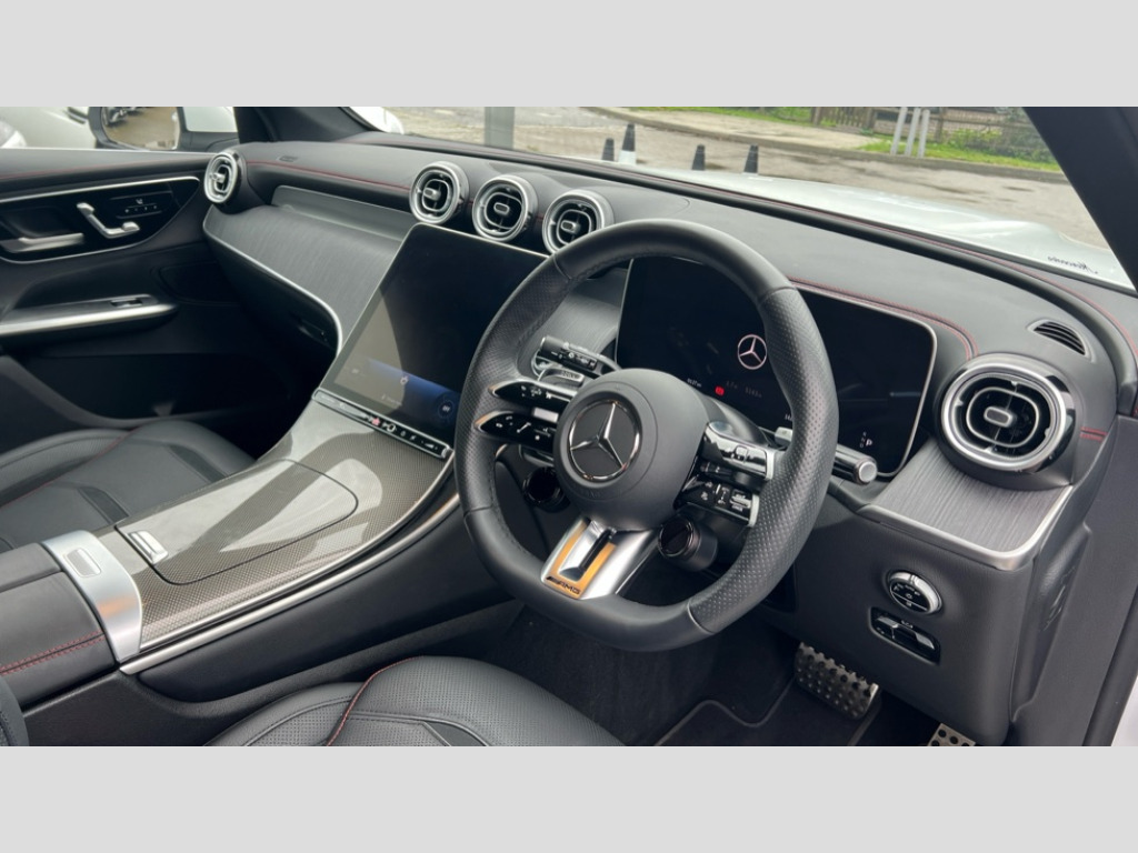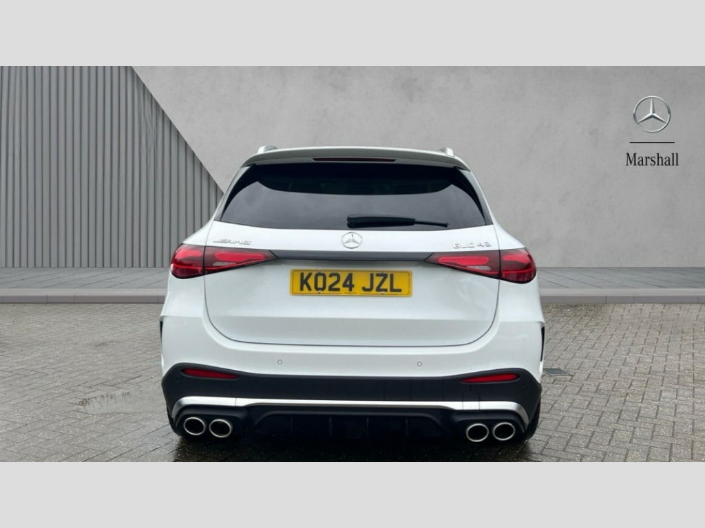 Mercedes-Benz Glc GLC 43 4Matic Premium 5dr MCT 11.9" high resolution multimedia colour display, 12.3" Digital individually configurable instrument display, 360 degree camera, Active brake assist plus, Active parking assist with parktronic system, AMG DYNAMIC SELECT with a choice of driving modes (Slippery, Comfort, Sport, Sport+, Individual), Attention assist, Blind spot assist, Bluetooth interface for hands free telephone, Dashcam - front camera for video recording, Easy pack automatic powered tailgate, eCall emergency call system, MBUX augmented reality for navigation, MBUX navigation premium, MBUX voice control activated by keywords "Hey Mercedes", Mercedes connect me with remote online services, Outside temperature display, Pre-installation for digital key transfer, Rear axle steering, Remote boot release, Service indicator (ASSYST), Smartphone integration, Speed limit assist, Sports direct steer system with speed sensitive steering, Status display for rear seat belts in instrument cluster, Traffic sign assist, Trip computer, Wireless charging surface integrated into quick stowage tray in front of centre console, 4MATIC permanent four wheel drive, 63 litre fuel tank, 9G TRONIC plus automatic transmission, Agility control comfort suspension, Petrol Particulate Filter (PPF), DAB digital radio tuner, MBUX extended functions, Adaptive brake lights, AMG bodystyling front apron, rear apron and side skirts, AMG exhaust system with sporty engine sound, AMG fuel cap, AMG radiator grille with vertical struts in high gloss chrome and AMG logo, AMG spoiler lip, Auto dimming rear view mirror, Auto headlights, Body colour door mirrors, Chrome roof rails, Digital light LED headlights, Electric windows with one touch opening/closing and obstruction sensors, Electrically adjustable and heated door mirrors, Headlight washers, Heat and noise insulating acoustic glass, Heated rear window, High level LED brake light, Illuminated front door sill panels, Integrated LED daytime running lights, LED indicator lights, LED rear fog lights, LED tail lamp, Mercedes AMG exterior, Rain sensor windscreen wipers, Range adjustable headlights, Rear side wing doors, Rear wiper, Tinted glass all round green, Variable front intermittent wipers, Welcome and follow-me home light functionality, 3 seat bench in 2nd row, 3 Spoke multi function AMG steering wheel in black nappa leather, 40:20:40 split folding rear seats, Ambient lighting, AMG sports seats, AMG steering wheel buttons, Artico leather dashboard with contrast stitching, Audio and onboard settings control on multifunction steering wheel, Automatic child seat recognition sensor, Black floor mats with AMG lettering, Double cup holder in centre console, Electrically height/reach adjustable steering column, Front centre armrest with stowage compartment, Front head restraints, Gearshift paddles on steering wheel, Heated front seats, Illuminated door sill panels with AMG lettering and with exchangable cover, Illuminated glove compartment, Load compartment cover, Mercedes AMG interior, Rear head restraints, Rear top tether child seat ISOFIX attachment, Single front passenger seat, Sports pedals with stainless steel surfaces and rubber studs, Sun visors with illuminated vanity mirrors, THERMATIC 2 zone automatic climate control, Interior lighting pack - GLC AMG, Memory pack - GLC, Mirror pack - GLC AMG, Seat comfort package - GLC AMG, Stowage pack - GLC AMG, USB Plus Pack - GLC, 3 rear 3 point seatbelts, Active bonnet, Adaptive brake system with HOLD function and brake drying in the wet, Anti-lock braking system (ABS), Child proof door locks, Dual-stage airbags - driver and front passenger, sidebags in front seats, driver kneebag, pelvis bag and window bags for driver, Electronic key chrome surround, Electronic parking brake, Electronic Stability Programme (ESP), Front and rear seatbelt reminder, Front passenger seat occupancy sensor, Front seatbelt pretensioners, Hill start assist, Silver brake calipers, Tyre pressure monitoring system, Warning triangle and first aid kit, Central locking with interior switch, automatic locking and crash sensor with emergency opening function, Guard 360 degree vehicle protection, Immobiliser, Keyless Go comfort access, Anthracite linestructure lime wood trim, Black open-pore aluminium lines wood trim, Centre console in metal structure finish, 21" AMG Y spoke light alloy wheels painted in tantalum grey with high sheen rim finish, TIREFIT with tyre inflation compressor