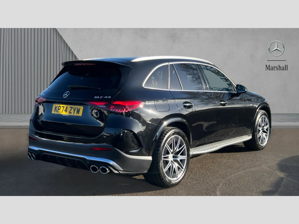 Mercedes-Benz Glc GLC 43 4Matic Premium 5dr MCT 11.9" high resolution multimedia colour display, 12.3" Digital individually configurable instrument display, 360 degree view camera, Active brake assist plus, Active parking assist with parktronic system, AMG DYNAMIC SELECT with a choice of driving modes (Slippery, Comfort, Sport, Sport+, Individual), Attention assist, Blind spot assist, Bluetooth interface for hands free telephone, Dashcam - front camera for video recording, Easy pack automatic powered tailgate, eCall emergency call system, MBUX augmented reality for navigation, MBUX navigation premium, MBUX voice control activated by keywords "Hey Mercedes", Mercedes connect me with remote online services, Outside temperature display, Pre-installation for digital key transfer, Rear axle steering, Remote boot release, Service indicator (ASSYST), Smartphone integration, Speed limit assist, Sports direct steer system with speed sensitive steering, Status display for rear seat belts in instrument cluster, Traffic sign assist, Trip computer, Wireless charging surface integrated into quick stowage tray in front of centre console, 4MATIC permanent four wheel drive, 63 litre fuel tank, 9G TRONIC plus automatic transmission, Agility control comfort suspension, Petrol Particulate Filter (PPF), DAB digital radio tuner, MBUX extended functions, Adaptive brake lights, AMG bodystyling front apron, rear apron and side skirts, AMG exhaust system with sporty engine sound, AMG fuel cap, AMG radiator grille with vertical struts in high gloss chrome and AMG logo, AMG spoiler lip, Auto dimming rear view mirror, Auto headlights, Body colour door mirrors, Chrome roof rails, Digital light LED headlights, Electric windows with one touch opening/closing and obstruction sensors, Electrically adjustable and heated door mirrors, Headlight washers, Heat and noise insulating acoustic glass, Heated rear window, High level LED brake light, Illuminated front door sill panels, Integrated LED daytime running lights, LED indicator lights, LED rear fog lights, LED tail lamp, Mercedes AMG exterior, Rain sensor windscreen wipers, Range adjustable headlights, Rear side wing doors, Rear wiper, Tinted glass all round green, Variable front intermittent wipers, Welcome and follow-me home light functionality, 3 seat bench in 2nd row, 3 Spoke multi function AMG steering wheel in black nappa leather, 40:20:40 split folding rear seats, Ambient lighting, AMG sports seats, AMG steering wheel buttons, Artico leather dashboard with contrast stitching, Audio and onboard settings control on multifunction steering wheel, Automatic child seat recognition sensor, Black floor mats with AMG lettering, Double cup holder in centre console, Electrically height/reach adjustable steering column, Front centre armrest with stowage compartment, Front head restraints, Gearshift paddles on steering wheel, Heated front seats, Illuminated door sill panels with AMG lettering and with exchangable cover, Illuminated glove compartment, Load compartment cover, Mercedes AMG interior, Rear head restraints, Rear top tether child seat ISOFIX attachment, Single front passenger seat, Sports pedals with stainless steel surfaces and rubber studs, Sun visors with illuminated vanity mirrors, THERMATIC 2 zone automatic climate control, Interior lighting pack - GLC AMG, Memory pack - GLC, Mirror pack - GLC AMG, Seat comfort package - GLC AMG, Stowage pack - GLC AMG, USB Plus Pack - GLC, 3 rear 3 point seatbelts, Active bonnet, Adaptive brake system with HOLD function and brake drying in the wet, Anti-lock braking system (ABS), Child proof door locks, Dual-stage airbags - driver and front passenger, sidebags in front seats, driver kneebag, pelvis bag and window bags for driver, Electronic key chrome surround, Electronic parking brake, Electronic Stability Programme (ESP), Front and rear seatbelt reminder, Front passenger seat occupancy sensor, Front seatbelt pretensioners, Hill start assist, Silver brake calipers, Tyre pressure monitoring system, Warning triangle and first aid kit, Central locking with interior switch, automatic locking and crash sensor with emergency opening function, Guard 360 degree vehicle protection, Immobiliser, Keyless Go comfort access, Anthracite linestructure lime wood trim, Black open-pore aluminium lines wood trim, Centre console in metal structure finish, 21" AMG Y spoke light alloy wheels painted in tantalum grey with high sheen rim finish, TIREFIT with tyre inflation compressor