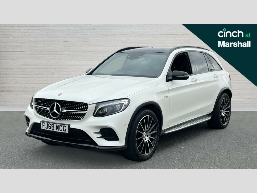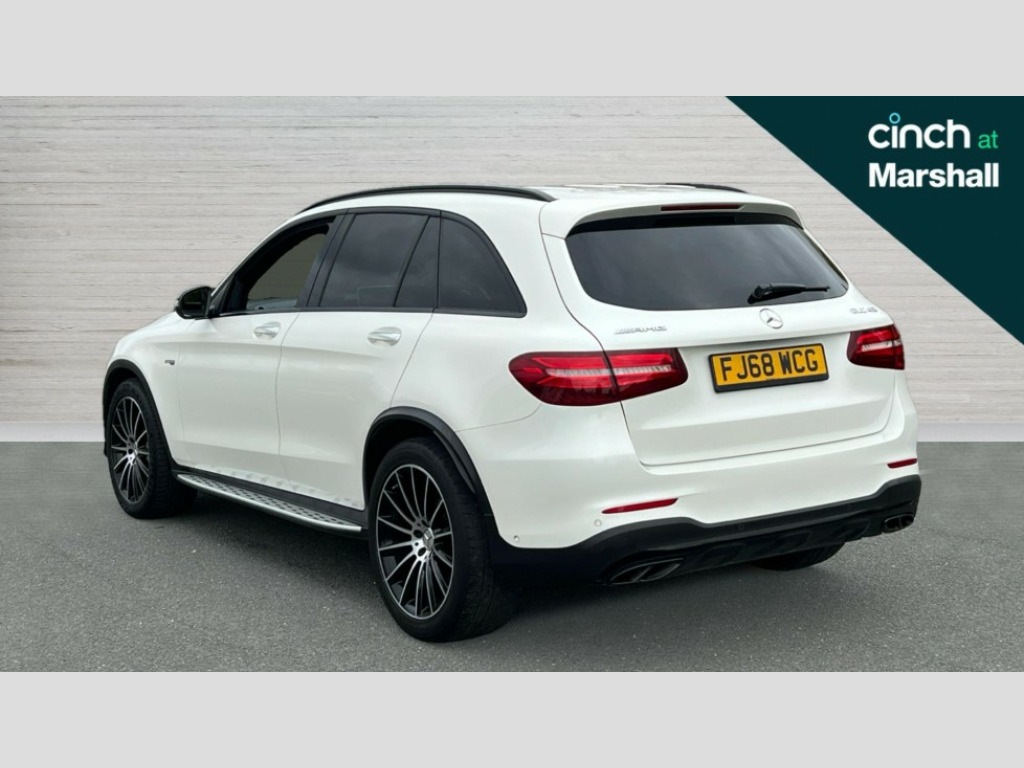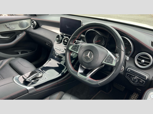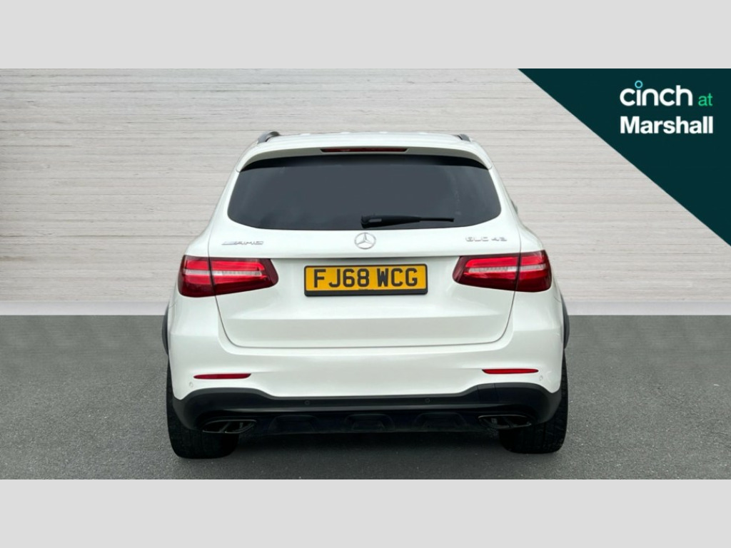 Mercedes-Benz Glc GLC 43 4Matic Premium Plus 5dr 9G-Tronic 8.4" high resolution display, Active park assist with parktronic system, Attention assist, Bluetooth interface for hands free telephone, Collision prevention assist plus, COMAND online nav with colour display, radio/CD/DVD/MP3, SD card, 10GB music, Emergency Call system, speed limit assist, linguatronic voice control, Crosswind Assist, DYNAMIC SELECT with a choice of driving modes (ECO, Comfort, Sport, Sport+ and Individual), Instrument cluster with 5.5-inch TFT multi-function display, Multi function trip computer, Outside temperature gauge, Power opening/closing tailgate, Remote boot release, Service indicator (ASSYST), Speed sensitive steering, Touch pad controller for infotainment system, Traffic sign recognition, 66 litre fuel tank, Air suspension, Burmester surround sound system, DAB Digital radio, USB connection, Adaptive brake lights, Aerodynamic rear spoiler, AMG bodystyling, AMG door sills, Automatic headlights, Body coloured bumpers, Electric panoramic sunroof with sunblind, Electric windows one touch open/close, Electrically adjustable and heated door mirrors, LED daytime running lights, LED rear lamps, Privacy glass (to rear of B post), Rain sensor windscreen wipers, Range adjustable headlights, Rear wiper, Tinted glass all round, Twin exhaust tailpipes x2, 2 cupholders in front centre console, 2 way rear head restraints, 3 Spoke sports multifunction flat bottomed leather steering wheel, 4 way adjustable front head restraints, 4 way electric lumbar support for driver and front passenger, 40:20:40 split folding rear seats, Ambient lighting, AMG sports seats, Auto Mercedes-Benz child seat recognition sensor, Automatic climate control, Black floor mats with coloured piping, Black roof lining, Dividing net - rear, Electric front seat height adjustment, Front armrest with storage box, Gearshift paddles, Heated front seats, Height/reach adjustable steering column, Lockable/illuminated glovebox, Rear top tether child seat ISOFIX attachment, Sports pedals with stainless steel surfaces and rubber studs, Sunvisors with illuminated vanity mirrors, Easy-pack load compartment cover, Interior lighting pack - GLC, Memory pack - GLC, Mirror pack - GLC, Storage pack - GLC, 3 rear 3 point seatbelts, ABS with Brake Assist, Active bonnet, Adaptive brake system, Brake calipers with AMG lettering, Child proof door locks, Drivers knee airbag, Dual stage driver/passenger airbags, Electronic parking brake, ESP with ASR, Front and rear seatbelt reminder, Front passenger seat occupancy sensor, Front side airbags, Hill hold function, Red seat belts, Tyre pressure monitoring system, Warning triangle and first aid kit, Window airbags, Alarm system/interior protection/immobiliser, Automatic door locking, Keyless entry and keyless start, Remote central locking, Artico upholstered dashboard, Tyre inflation kit