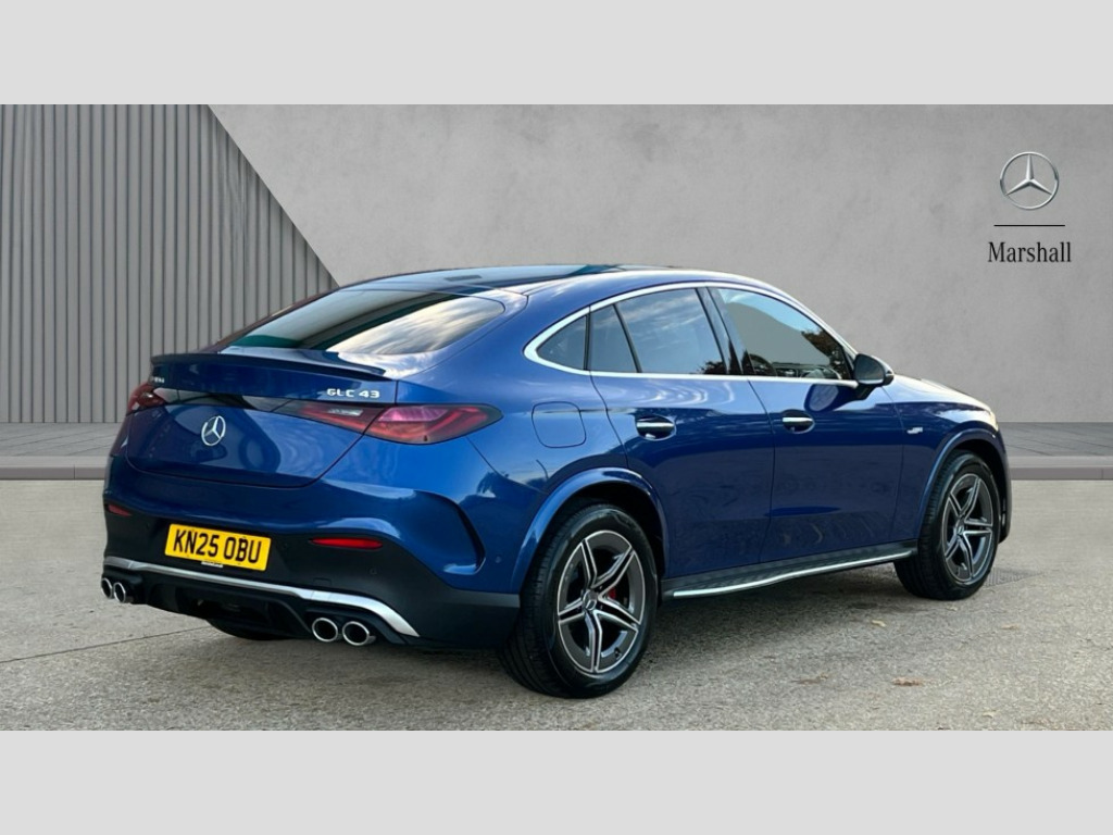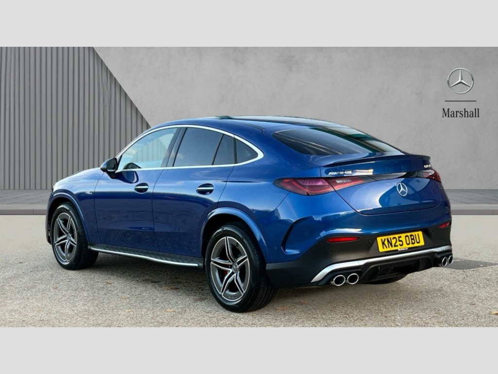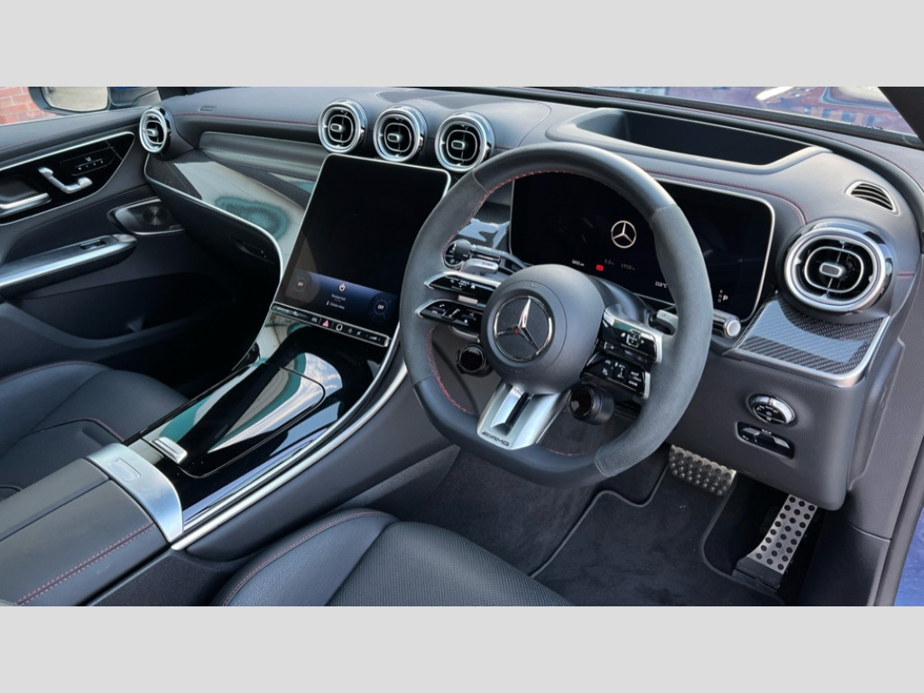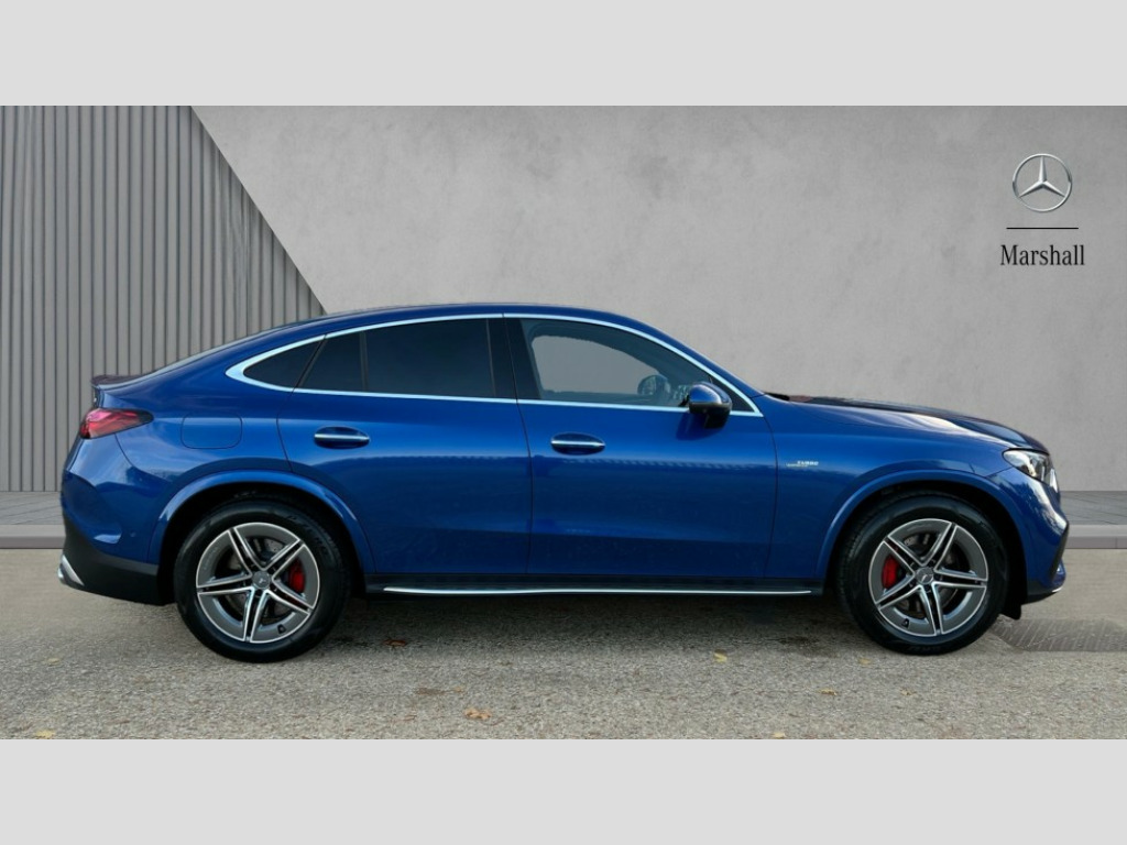Mercedes-Benz Glc GLC 43 4Matic Premium Plus 5dr MCT 11.9" high resolution multimedia colour display, 12.3" Digital individually configurable instrument display, 360 degree view camera, Active parking assist with parktronic system, AMG DYNAMIC SELECT with a choice of driving modes (Slippery, Comfort, Sport, Sport+, Individual), Attention assist, Bluetooth interface for hands free telephone, Dashcam - front camera for video recording, Easy pack automatic powered tailgate, eCall emergency call system, Head up Display, MBUX augmented reality for navigation, MBUX navigation premium, MBUX voice control activated by keywords "Hey Mercedes", Mercedes connect me with remote online services, Outside temperature display, Pre-installation for digital key transfer, Rear axle steering, Remote boot release, Service indicator (ASSYST), Smartphone integration, Sports direct steer system with speed sensitive steering, Status display for rear seat belts in instrument cluster, Traffic sign assist, Trip computer, Wireless charging surface integrated into quick stowage tray in front of centre console, 4MATIC permanent four wheel drive, 63 litre fuel tank, 9G TRONIC plus automatic transmission, Agility control comfort suspension, Petrol Particulate Filter (PPF), Burmester 3D surround sound system, DAB digital radio tuner, MBUX extended functions, Adaptive brake lights, AMG bodystyling front apron, rear apron and side skirts, AMG exhaust system with sporty engine sound, AMG radiator grille with vertical struts in high gloss chrome and AMG logo, AMG spoiler lip, Auto dimming rear view mirror, Auto headlights, Body colour door mirrors, Chrome roof rails, Digital light LED headlights with projection function, Electric panoramic glass sunroof, Electric windows with one touch opening/closing and obstruction sensors, Electrically adjustable and heated door mirrors, Headlight washers, Heat and noise insulating acoustic glass, Heated rear window, High level LED brake light, Illuminated front door sill panels, Integrated LED daytime running lights, LED indicator lights, LED rear fog lights, LED tail lamp, Mercedes AMG exterior, Rain sensor windscreen wipers, Range adjustable headlights, Rear side wing doors, Rear wiper, Tinted glass all round green, Variable front intermittent wipers, Welcome and follow-me home light functionality, 3 seat bench in 2nd row, 3 Spoke multi function AMG steering wheel in black nappa leather, 40:20:40 split folding rear seats, Ambient lighting, AMG sports seats, AMG steering wheel buttons, Artico leather dashboard with contrast stitching, Audio and onboard settings control on multifunction steering wheel, Automatic child seat recognition sensor, Black floor mats with AMG lettering, Double cup holder in centre console, Electrically height/reach adjustable steering column, Front centre armrest with stowage compartment, Front head restraints, Gearshift paddles on steering wheel, Heated front seats, Illuminated door sill panels with AMG lettering and with exchangable cover, Illuminated glove compartment, Load compartment cover, Mercedes AMG interior, Rear head restraints, Rear top tether child seat ISOFIX attachment, Single front passenger seat, Sports pedals with stainless steel surfaces and rubber studs, Sun visors with illuminated vanity mirrors, THERMOTRONIC 4 zone automatic climate control, Interior lighting pack - GLC AMG, Memory pack - GLC, Mirror pack - GLC AMG, Seat comfort package - GLC AMG, Stowage pack - GLC AMG, USB Plus Pack - GLC, 3 rear 3 point seatbelts, Active bonnet, Adaptive brake system with HOLD function and brake drying in the wet, Anti-lock braking system (ABS), Child proof door locks, Dual-stage airbags - driver and front passenger, sidebags in front seats, driver kneebag, pelvis bag and window bags for driver, Electronic key chrome surround, Electronic parking brake, Electronic Stability Programme (ESP), Front and rear seatbelt reminder, Front passenger seat occupancy sensor, Front seatbelt pretensioners, Hill start assist, Silver brake calipers, Tyre pressure monitoring system, Warning triangle and first aid kit, Central locking with interior switch, automatic locking and crash sensor with emergency opening function, Guard 360 degree vehicle protection, Immobiliser, Keyless Go comfort access, Centre console in high gloss black, High gloss black with carbon fibre trim, 21" AMG Y spoke light alloy wheels painted in tantalum grey with high sheen rim finish, TIREFIT with tyre inflation compressor
