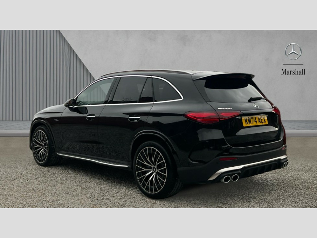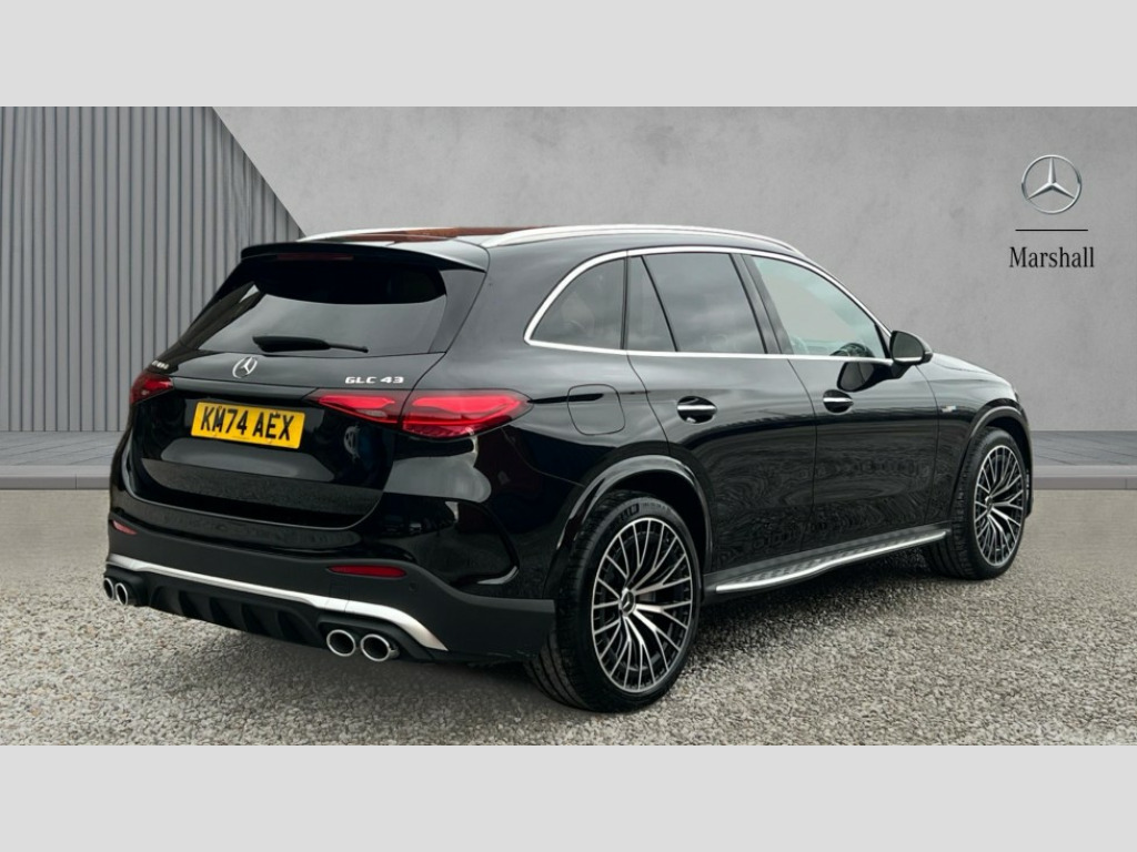Mercedes-Benz Glc GLC 43 4Matic Premium Plus 5dr MCT 11.9" high resolution multimedia colour display, 12.3" Digital individually configurable instrument display, 360 degree camera, Active parking assist with parktronic system, AMG DYNAMIC SELECT with a choice of driving modes (Slippery, Comfort, Sport, Sport+, Individual), Attention assist, Bluetooth interface for hands free telephone, Dashcam - front camera for video recording, Easy pack automatic powered tailgate, eCall emergency call system, Head up Display, MBUX augmented reality for navigation, MBUX navigation premium, MBUX voice control activated by keywords "Hey Mercedes", Mercedes connect me with remote online services, Outside temperature display, Pre-installation for digital key transfer, Rear axle steering, Remote boot release, Service indicator (ASSYST), Smartphone integration, Sports direct steer system with speed sensitive steering, Status display for rear seat belts in instrument cluster, Traffic sign assist, Trip computer, Wireless charging surface integrated into quick stowage tray in front of centre console, 4MATIC permanent four wheel drive, 63 litre fuel tank, 9G TRONIC plus automatic transmission, Agility control comfort suspension, Petrol Particulate Filter (PPF), Burmester 3D surround sound system, DAB digital radio tuner, MBUX extended functions, Adaptive brake lights, AMG bodystyling front apron, rear apron and side skirts, AMG exhaust system with sporty engine sound, AMG radiator grille with vertical struts in high gloss chrome and AMG logo, AMG spoiler lip, Auto dimming rear view mirror, Auto headlights, Body colour door mirrors, Chrome roof rails, Digital light LED headlights with projection function, Electric panoramic glass sunroof, Electric windows with one touch opening/closing and obstruction sensors, Electrically adjustable and heated door mirrors, Headlight washers, Heat and noise insulating acoustic glass, Heated rear window, High level LED brake light, Illuminated front door sill panels, Integrated LED daytime running lights, LED indicator lights, LED rear fog lights, LED tail lamp, Mercedes AMG exterior, Rain sensor windscreen wipers, Range adjustable headlights, Rear side wing doors, Rear wiper, Tinted glass all round green, Variable front intermittent wipers, Welcome and follow-me home light functionality, 3 seat bench in 2nd row, 3 Spoke multi function AMG steering wheel in black nappa leather, 40:20:40 split folding rear seats, Ambient lighting, AMG sports seats, AMG steering wheel buttons, Artico leather dashboard with contrast stitching, Audio and onboard settings control on multifunction steering wheel, Automatic child seat recognition sensor, Black floor mats with AMG lettering, Double cup holder in centre console, Electrically height/reach adjustable steering column, Front centre armrest with stowage compartment, Front head restraints, Gearshift paddles on steering wheel, Heated front seats, Illuminated door sill panels with AMG lettering and with exchangable cover, Illuminated glove compartment, Load compartment cover, Mercedes AMG interior, Rear head restraints, Rear top tether child seat ISOFIX attachment, Single front passenger seat, Sports pedals with stainless steel surfaces and rubber studs, Sun visors with illuminated vanity mirrors, THERMOTRONIC 4 zone automatic climate control, Interior lighting pack - GLC AMG, Memory pack - GLC, Mirror pack - GLC AMG, Seat comfort package - GLC AMG, Stowage pack - GLC AMG, USB Plus Pack - GLC, 3 rear 3 point seatbelts, Active bonnet, Adaptive brake system with HOLD function and brake drying in the wet, Anti-lock braking system (ABS), Child proof door locks, Dual-stage airbags - driver and front passenger, sidebags in front seats, driver kneebag, pelvis bag and window bags for driver, Electronic key chrome surround, Electronic parking brake, Electronic Stability Programme (ESP), Front and rear seatbelt reminder, Front passenger seat occupancy sensor, Front seatbelt pretensioners, Hill start assist, Silver brake calipers, Tyre pressure monitoring system, Warning triangle and first aid kit, Central locking with interior switch, automatic locking and crash sensor with emergency opening function, Guard 360 degree vehicle protection, Immobiliser, Keyless Go comfort access, Centre console in high gloss black, High gloss black with carbon fibre trim, 21" AMG Y spoke light alloy wheels painted in tantalum grey with high sheen rim finish, TIREFIT with tyre inflation compressor