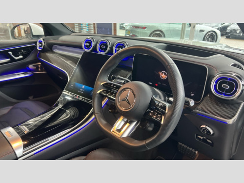 Mercedes-Benz Glc GLC 43 4Matic Premium Plus 5dr MCT 11.9" high resolution multimedia colour display, 12.3" Digital individually configurable instrument display, 360 degree camera, Active parking assist with parktronic system, AMG DYNAMIC SELECT with a choice of driving modes (Slippery, Comfort, Sport, Sport+, Individual), Attention assist, Bluetooth interface for hands free telephone, Dashcam - front camera for video recording, Easy pack automatic powered tailgate, eCall emergency call system, Head up Display, MBUX augmented reality for navigation, MBUX navigation premium, MBUX voice control activated by keywords "Hey Mercedes", Mercedes connect me with remote online services, Outside temperature display, Pre-installation for digital key transfer, Rear axle steering, Remote boot release, Service indicator (ASSYST), Smartphone integration, Sports direct steer system with speed sensitive steering, Status display for rear seat belts in instrument cluster, Traffic sign assist, Trip computer, Wireless charging surface integrated into quick stowage tray in front of centre console, 4MATIC permanent four wheel drive, 63 litre fuel tank, 9G TRONIC plus automatic transmission, Agility control comfort suspension, Petrol Particulate Filter (PPF), Burmester 3D surround sound system, DAB digital radio tuner, MBUX extended functions, Adaptive brake lights, AMG bodystyling front apron, rear apron and side skirts, AMG exhaust system with sporty engine sound, AMG radiator grille with vertical struts in high gloss chrome and AMG logo, AMG spoiler lip, Auto dimming rear view mirror, Auto headlights, Body colour door mirrors, Chrome roof rails, Digital light LED headlights with projection function, Electric panoramic glass sunroof, Electric windows with one touch opening/closing and obstruction sensors, Electrically adjustable and heated door mirrors, Headlight washers, Heat and noise insulating acoustic glass, Heated rear window, High level LED brake light, Illuminated front door sill panels, Integrated LED daytime running lights, LED indicator lights, LED rear fog lights, LED tail lamp, Mercedes AMG exterior, Rain sensor windscreen wipers, Range adjustable headlights, Rear side wing doors, Rear wiper, Tinted glass all round green, Variable front intermittent wipers, Welcome and follow-me home light functionality, 3 seat bench in 2nd row, 3 Spoke multi function AMG steering wheel in black nappa leather, 40:20:40 split folding rear seats, Ambient lighting, AMG sports seats, AMG steering wheel buttons, Artico leather dashboard with contrast stitching, Audio and onboard settings control on multifunction steering wheel, Automatic child seat recognition sensor, Black floor mats with AMG lettering, Double cup holder in centre console, Electrically height/reach adjustable steering column, Front centre armrest with stowage compartment, Front head restraints, Gearshift paddles on steering wheel, Heated front seats, Illuminated door sill panels with AMG lettering and with exchangable cover, Illuminated glove compartment, Load compartment cover, Mercedes AMG interior, Rear head restraints, Rear top tether child seat ISOFIX attachment, Single front passenger seat, Sports pedals with stainless steel surfaces and rubber studs, Sun visors with illuminated vanity mirrors, THERMOTRONIC 4 zone automatic climate control, Interior lighting pack - GLC AMG, Memory pack - GLC, Mirror pack - GLC AMG, Seat comfort package - GLC AMG, Stowage pack - GLC AMG, USB Plus Pack - GLC, 3 rear 3 point seatbelts, Active bonnet, Adaptive brake system with HOLD function and brake drying in the wet, Anti-lock braking system (ABS), Child proof door locks, Dual-stage airbags - driver and front passenger, sidebags in front seats, driver kneebag, pelvis bag and window bags for driver, Electronic key chrome surround, Electronic parking brake, Electronic Stability Programme (ESP), Front and rear seatbelt reminder, Front passenger seat occupancy sensor, Front seatbelt pretensioners, Hill start assist, Silver brake calipers, Tyre pressure monitoring system, Warning triangle and first aid kit, Central locking with interior switch, automatic locking and crash sensor with emergency opening function, Guard 360 degree vehicle protection, Immobiliser, Keyless Go comfort access, Centre console in high gloss black, High gloss black with carbon fibre trim, 21" AMG Y spoke light alloy wheels painted in tantalum grey with high sheen rim finish, TIREFIT with tyre inflation compressor