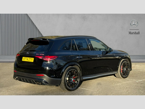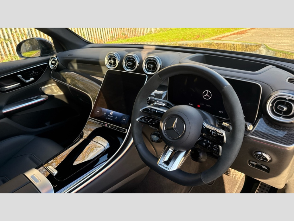 Mercedes-Benz Glc GLC 63 S 4Matic+ e Perform Night Ed Prem+ 5dr MCT 11.9" high resolution multimedia colour display, 12.3" Digital individually configurable instrument display, 360 degree view camera, Acoustic ambient protection, Active blind spot assist, Active brake assist plus, Active distance assist DISTRONIC, Active lane change assist, Active parking assist with parktronic system, Active speed limit assist, AMG DYNAMIC SELECT with a choice of eight driving modes(Electric, Comfort, Battery Hold, Sport, Sport+, Race, Slippery and Individual), AMG track pace, Attention assist, Bluetooth interface for hands free telephone, Dashcam - front camera for video recording, Easy pack automatic powered tailgate, eCall emergency call system, Head up Display, MBUX navigation premium, MBUX voice control activated by keywords "Hey Mercedes", Mercedes connect me with remote online services, Outside temperature display, Pre-installation for digital key transfer, Pre-safe function, Rear axle steering, Remote boot release, Road sign recognition system, Service indicator (ASSYST), Smartphone integration, Sports direct steer system with speed sensitive steering, Status display for rear seat belts in instrument cluster, Traffic sign assist, Trip computer, Wireless charging surface integrated into quick stowage tray in front of centre console, 4MATIC permanent four wheel drive, 5m charging cable for household socket (mode 2), 5m charging cable for wall box/public charging stations(mode 3), 65 litre fuel tank, 9G TRONIC plus automatic transmission, Agility control sports suspension with adaptive damping system, Burmester 3D surround sound system, DAB digital radio tuner, MBUX extended functions, Adaptive brake lights, AMG exhaust system with sporty engine sound, AMG radiator grille with vertical struts in high gloss chrome and AMG logo, AMG Real Performance Sound, AMG spoiler lip in high gloss black, Auto dimming rear view mirror, Auto headlights, Digital light LED headlights, Electric panoramic glass sunroof, Electric windows with one touch opening/closing and obstruction sensors, Electrically adjustable and heated door mirrors, Headlight washers, Heat and noise insulating acoustic glass, Heated rear window, High level LED brake light, Illuminated front door sill panels, Integrated LED daytime running lights, LED indicator lights, LED rear fog lights, LED tail lamp, Mercedes AMG exterior, Rain sensor windscreen wipers, Range adjustable headlights, Rear side wing doors, Rear wiper, Tinted glass all round green, Variable front intermittent wipers, Welcome and follow-me home light functionality, 3 seat bench in 2nd row, 40:20:40 split folding rear seats, Ambient lighting, AMG performance steering wheel in carbon fibre / microfibre, AMG steering wheel buttons, Artico leather dashboard with contrast stitching, Audio and onboard settings control on multifunction steering wheel, Automatic child seat recognition sensor, Black floor mats with AMG lettering, Climatised front seats, Double cup holder in centre console, Electrically height/reach adjustable steering column, Front centre armrest with stowage compartment, Front head restraints, Front seats with electric backrest, height adjust with 4 way electric lumbar support, Gearshift paddles on steering wheel, Heated steering wheel, Illuminated door sill panels with AMG lettering and with exchangable cover, Illuminated glove compartment, Load compartment cover, Mercedes AMG interior, Rear head restraints, Rear top tether child seat ISOFIX attachment, Single front passenger seat, Sports pedals with stainless steel surfaces and rubber studs, Sun visors with illuminated vanity mirrors, AMG Aerodynamics package - GLC AMG, AMG Driver's package - GLC AMG, AMG Exterior Night pack - GLC AMG 63 Se, Interior lighting pack - GLC AMG, Memory pack - GLC, Mirror pack - GLC AMG, Stowage pack - GLC AMG, USB Plus Pack - GLC, 3 rear 3 point seatbelts, Active bonnet, Adaptive brake system with HOLD function and brake drying in the wet, AMG high performance composite braking system with red painted brake calipers with AMG lettering, Anti-lock braking system (ABS), Black seat belts, Child proof door locks, Dual-stage airbags - driver and front passenger, sidebags in front seats, driver kneebag, pelvis bag and window bags for driver, Electronic key chrome surround, Electronic parking brake, Electronic Stability Programme (ESP), Evasive steering assist, Front and rear seatbelt reminder, Front passenger seat occupancy sensor, Front seatbelt pretensioners, Hill start assist, Pre safe plus, Tyre pressure monitoring system, Warning triangle and first aid kit, Central locking with interior switch, automatic locking and crash sensor with emergency opening function, Guard 360 degree vehicle protection, Immobiliser, Keyless Go comfort access, Centre console in high gloss black, High gloss black with carbon fibre trim, 21" AMG cross spoke forged alloy wheels painted in matt black with high sheen rim finish, TIREFIT with tyre inflation compressor
