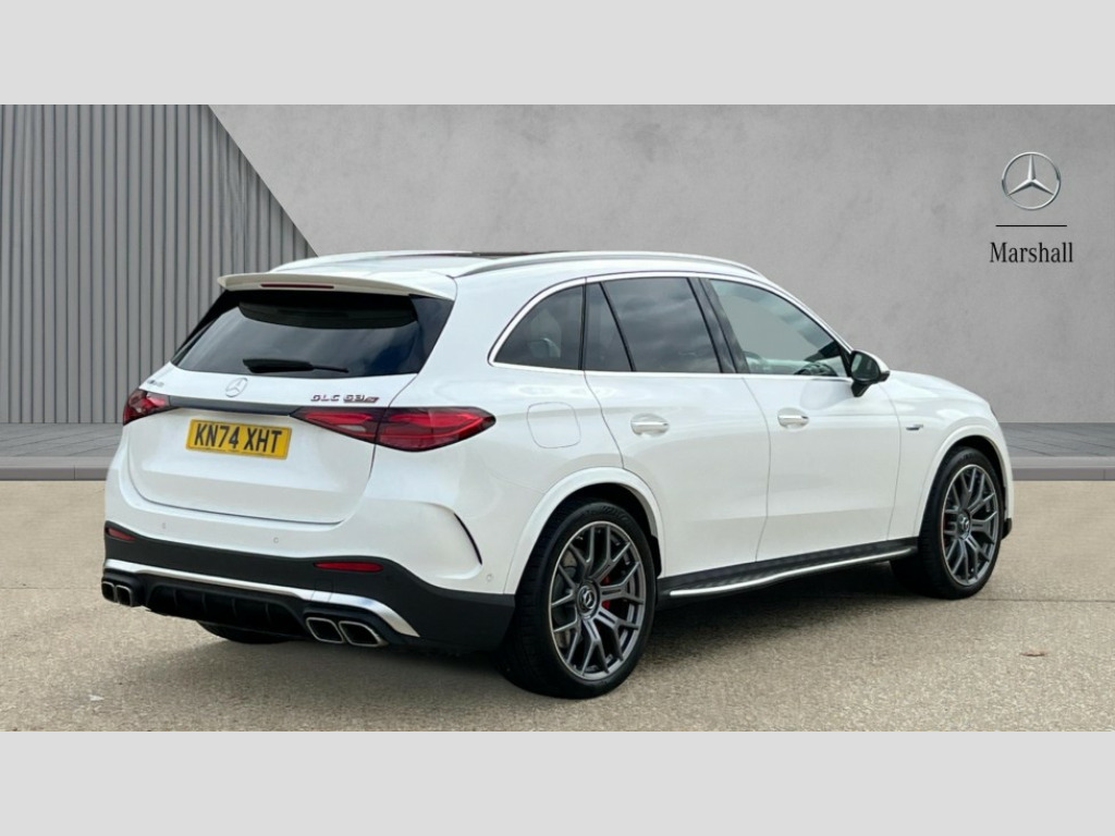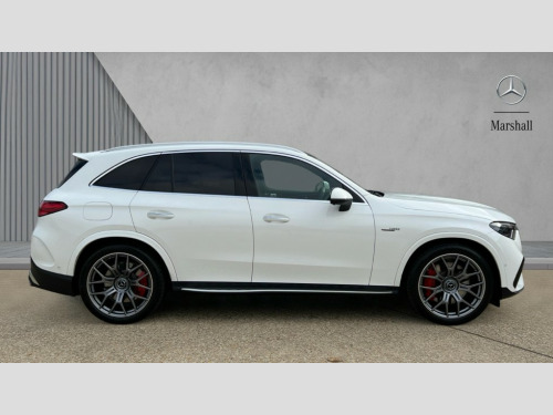 Mercedes-Benz Glc GLC 63 S 4Matic+ e Performance Premium 5dr MCT 11.9" high resolution multimedia colour display, 12.3" Digital individually configurable instrument display, 360 degree camera, Acoustic ambient protection, Active parking assist with parktronic system, AMG DYNAMIC SELECT with a choice of eight driving modes(Electric, Comfort, Battery Hold, Sport, Sport+, Race, Slippery and Individual), AMG track pace, Attention assist, Bluetooth interface for hands free telephone, Dashcam - front camera for video recording, Easy pack automatic powered tailgate, eCall emergency call system, MBUX augmented reality for navigation, MBUX navigation premium, MBUX voice control activated by keywords "Hey Mercedes", Mercedes connect me with remote online services, Outside temperature display, Pre-installation for digital key transfer, Rear axle steering, Remote boot release, Road sign recognition system, Service indicator (ASSYST), Smartphone integration, Sports direct steer system with speed sensitive steering, Status display for rear seat belts in instrument cluster, Traffic sign assist, Trip computer, Wireless charging surface integrated into quick stowage tray in front of centre console, 4MATIC permanent four wheel drive, 5m charging cable for household socket (mode 2), 5m charging cable for wall box/public charging stations(mode 3), 65 litre fuel tank, 9G TRONIC plus automatic transmission, Agility control sports suspension with adaptive damping system, DAB digital radio tuner, MBUX extended functions, Mercedes benz sound system, Adaptive brake lights, AMG bodystyling front apron, rear apron and side skirts, AMG exhaust system with sporty engine sound, AMG radiator grille with vertical struts in high gloss chrome and AMG logo, AMG Real Performance Sound, AMG spoiler lip, Auto dimming rear view mirror, Auto headlights, Body colour door mirrors, Chrome roof rails, Digital light LED headlights, Electric windows with one touch opening/closing and obstruction sensors, Electrically adjustable and heated door mirrors, Headlight washers, Heat and noise insulating acoustic glass, Heated rear window, High level LED brake light, Illuminated front door sill panels, Integrated LED daytime running lights, LED indicator lights, LED rear fog lights, LED tail lamp, Mercedes AMG exterior, Rain sensor windscreen wipers, Range adjustable headlights, Rear side wing doors, Rear wiper, Tinted glass all round green, Variable front intermittent wipers, Welcome and follow-me home light functionality, 3 seat bench in 2nd row, 40:20:40 split folding rear seats, Ambient lighting, AMG Artico man-made leather/ Microcut microfibre upholstery, AMG performance steering wheel in nappa leather/dinamica microfibre, AMG steering wheel buttons, Artico leather dashboard with contrast stitching, Audio and onboard settings control on multifunction steering wheel, Automatic child seat recognition sensor, Black floor mats with AMG lettering, Double cup holder in centre console, Electrically height/reach adjustable steering column, Front centre armrest with stowage compartment, Front head restraints, Front seats with electric backrest, height adjust with 4 way electric lumbar support, Gearshift paddles on steering wheel, Heated front seats, Illuminated door sill panels with AMG lettering and with exchangable cover, Illuminated glove compartment, Load compartment cover, Mercedes AMG interior, Rear head restraints, Rear top tether child seat ISOFIX attachment, Single front passenger seat, Sports pedals with stainless steel surfaces and rubber studs, Sun visors with illuminated vanity mirrors, THERMATIC 2 zone automatic climate control, AMG Aerodynamics package - GLC AMG, AMG Driver's package - GLC AMG, Interior lighting pack - GLC AMG, Memory pack - GLC, Mirror pack - GLC AMG, Stowage pack - GLC AMG, USB Plus Pack - GLC, 3 rear 3 point seatbelts, Active bonnet, Adaptive brake system with HOLD function and brake drying in the wet, AMG high performance composite braking system with red painted brake calipers with AMG lettering, Anti-lock braking system (ABS), Black seat belts, Child proof door locks, Dual-stage airbags - driver and front passenger, sidebags in front seats, driver kneebag, pelvis bag and window bags for driver, Electronic key chrome surround, Electronic parking brake, Electronic Stability Programme (ESP), Front and rear seatbelt reminder, Front passenger seat occupancy sensor, Front seatbelt pretensioners, Hill start assist, Tyre pressure monitoring system, Warning triangle and first aid kit, Central locking with interior switch, automatic locking and crash sensor with emergency opening function, Guard 360 degree vehicle protection, Immobiliser, Keyless Go comfort access, Centre console in high gloss black, High gloss black with carbon fibre trim, 21" AMG cross spoke forged alloy wheels painted in tantalum grey with high sheen rim finish, TIREFIT with tyre inflation compressor