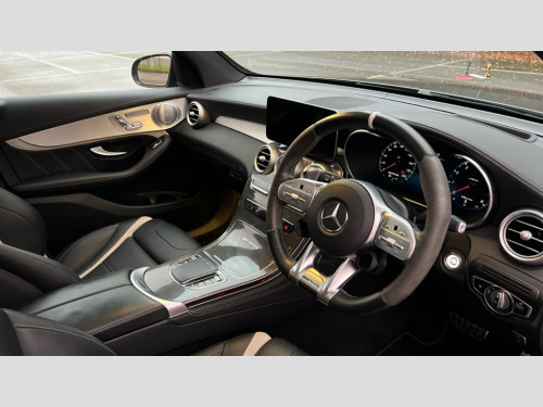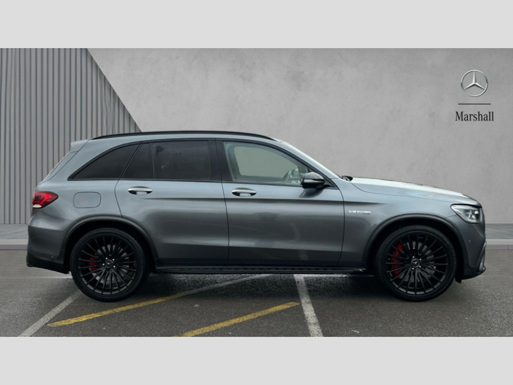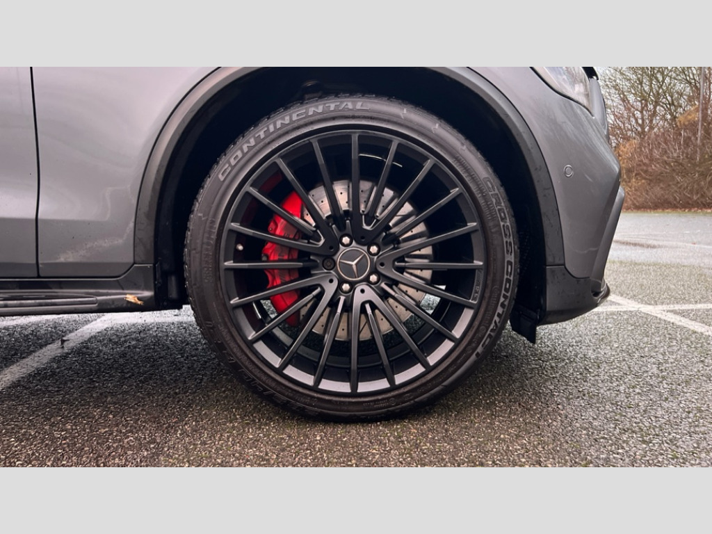 Mercedes-Benz Glc GLC 63 S 4Matic+ Premium Plus 5dr MCT 360 degree view camera, Active parking assist with parktronic system, AMG track pace, Attention assist, Bluetooth interface for hands free telephone, Collision prevention assist plus, DYNAMIC SELECT with a choice of driving modes (ECO, Comfort, Sport, Sport+ and Individual), Easy pack automatic powered tailgate, ECO start/stop function, Hard disk navigation, Hey Mercedes Voice activation, Instrument cluster with12.3-inch digital instrument cluster display. High resolution instrument cluster screen with choice of three display styles, MBUX augmented reality for navigation, MBUX Interior assistant, Mercedes connect me with remote online services, Multi function trip computer, Outside temperature display, rear seatbelt status indicator, Remote boot release, Service indicator (ASSYST), Smartphone integration with Apple CarPlay and Android auto, Traffic sign assist, Wireless charging, 66 litre fuel tank, Air body control air suspension for front and rear axles with continuously adjustable damping, AMG electronic rear axle limited slip differential lock, AMG performance 4MATIC+, AMG SPEEDSHIFT MCT 9 speed automatic sports transmission steering wheel gearshift paddles and RACE START function, silver aluminium gear shift paddles, Petrol Particulate Filter (PPF), Burmester surround sound system, DAB Digital radio, MBUX multimedia system with DAB digital radio and touchpad including satellite navigation, Media display 10.25-inch touchscreen display, Pre installation for Mercedes Benz Link, USB ports x 2 in centre console, Adaptive brake lights, AMG bodystyling with 2 black louvres in outer air intakes, AMG bodystyling with rear apron and diffuser fins, AMG radiator grille with black vertical louvres and trim strip in high gloss chrome, Badging - V8 BITURBO 4MATIC+ lettering on front wings, Body coloured bumpers, Electric panoramic glass sunroof, Electric windows one touch open/close, Electrically adjustable and heated door mirrors, Front and rear exterior chrome trim, Headlamp assist automatic headlamp activation, LED tail lamp, Multi beam LED headlamps with 84 indiviually control LED,daytime running lamps,Active Light,cornering light,enhanced fog lamp,adaptive Highbeam Assist, Privacy glass with dark glass from B pillar backwards, Rain sensor windscreen wipers, Range adjustable headlights, Rear wiper, Running boards, Tinted glass all round with single layer safety glass, 2 way rear head restraints, 3-spoke multifunction AMG steering wheel in black nappa leather with flattened bottom section, chrome inserts and perforated leather in grip area, 40:20:40 split folding rear seats, Ambient lighting, AMG floor mats with edging and embroidered AMG lettering, AMG performance seats, Automatic child seat recognition sensor, Dividing net - rear, Double cup holder in centre console, Front armrest with storage box, Front door sills with Mercedes Benz lettering, Front head restraints, Heated front seats, Illuminated and lockable glove compartment, Nappa leather upholstery, Rear top tether child seat ISOFIX attachment, Sports pedals with stainless steel surfaces and rubber studs, Steering wheel with touch control buttons, THERMATIC automatic climate control, AMG Driver's package - GLC, Easy-pack load compartment cover, Interior lighting pack - GLC, Keyless Go comfort pack - GLC, Memory pack - GLC, Mirror pack - GLC, Storage pack - GLC, 3 rear 3 point seatbelts, Active bonnet, Adaptive brake system with HOLD function and brake drying in the wet, ASR, Brake calipers with Mercedes-Benz lettering + perforated brake discs, Child proof door locks, Dual-stage airbags - driver and front passenger, driver knee bag and window bags for driver, front passenger and rear passengers, Electronic parking brake, Electronic stability programme (ESP) with curve dynamic assist and cross wind assist, Front and rear seatbelt reminder, Front passenger seat occupancy sensor, Hill hold function, Seat belts in Crystal grey, Tyre pressure monitoring system, Warning triangle and first aid kit, Alarm system/interior protection/immobiliser, Automatic door locking, Remote central locking, Run flat tyres