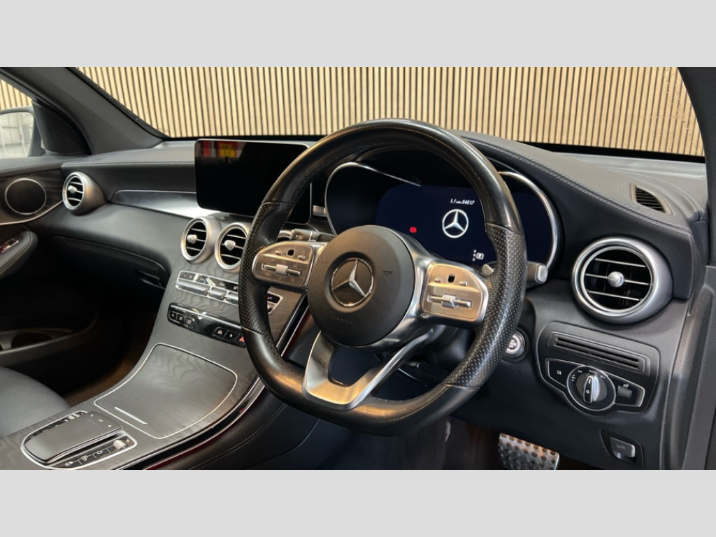 Mercedes-Benz Glc Coupe GLC 300d 4Matic AMG Line Premium 5dr 9G-Tronic Active parking assist with parktronic system, Attention assist, Bluetooth interface for hands free telephone, Collision prevention assist plus, DYNAMIC SELECT with a choice of driving modes (ECO, Comfort, Sport, Sport+ and Individual), Easy pack automatic powered tailgate, ECO start/stop function, Hard disk navigation, Hey Mercedes Voice activation, Instrument cluster with12.3-inch digital instrument cluster display. High resolution instrument cluster screen with choice of three display styles, MBUX augmented reality for navigation, MBUX Interior assistant, Mercedes connect me with remote online services, Multi function trip computer, Outside temperature display, rear seatbelt status indicator, Remote boot release, Reversing camera, Service indicator (ASSYST), Smartphone integration with Apple CarPlay and Android auto, Traffic sign assist, Wireless charging, 4MATIC permanent four wheel drive, 50 litre fuel tank, 9G TRONIC plus automatic transmission with steering column gear selector, DIRECT SELECT steering wheel gearshift paddles, Diesel particulate filter, Sports suspension tuned for improved handling and driving dynamics, DAB Digital radio, MBUX multimedia system with DAB digital radio and touchpad including satellite navigation, Media display 10.25-inch touchscreen display, Mercedes Benz sound system (225w) includes mid-range sound system, Pre installation for Mercedes Benz Link, USB ports x 2 in centre console, Adaptive brake lights, AMG bodystyling - AMG front apron with sporty air intakes and chrome trim element, AMG diffuser-look rear apron with insert in black, Body colour door mirrors, Body coloured bumpers, Electric windows one touch open/close, Electrically adjustable and heated door mirrors, Front and rear exterior chrome trim, Headlamp assist automatic headlamp activation, LED tail lamp, Multi beam LED headlamps with 84 indiviually control LED,daytime running lamps,Active Light,cornering light,enhanced fog lamp,adaptive Highbeam Assist, Privacy glass with dark glass from B pillar backwards, Radiator diamond grille, Rain sensor windscreen wipers, Range adjustable headlights, Rear wiper, Running boards, Tinted glass all round with single layer safety glass, Two chrome plated tailpipe trim elements, 2 way rear head restraints, 3-spoke multifunction AMG steering wheel in black nappa leather with flattened bottom section, chrome inserts and perforated leather in grip area, 40:20:40 split folding rear seats, Ambient lighting, AMG floor mats with edging and embroidered AMG lettering, AMG sports seats, Automatic child seat recognition sensor, Black roof lining, Dividing net - rear, Double cup holder in centre console, Front armrest with storage box, Front door sills with Mercedes Benz lettering, Front head restraints, Front seats with electric adjust (backrest, height and seat cushion inclination) with 4 way electric lumbar support and manual cushion depth adjust, Heated front seats, Height/reach adjustable steering column, Illuminated and lockable glove compartment, Leather upholstery, Rear top tether child seat ISOFIX attachment, Sports pedals with stainless steel surfaces and rubber studs, Steering wheel with touch control buttons, THERMATIC automatic climate control, Easy-pack load compartment cover, Interior lighting pack - GLC, Mirror pack - GLC, Storage pack - GLC, 3 rear 3 point seatbelts, Active bonnet, Adaptive brake system with HOLD function and brake drying in the wet, ASR, Black seat belts, Brake calipers with Mercedes-Benz lettering + perforated brake discs, Child proof door locks, Dual-stage airbags - driver and front passenger, driver knee bag and window bags for driver, front passenger and rear passengers, Electronic parking brake, Electronic stability programme (ESP) with curve dynamic assist and cross wind assist, Front and rear seatbelt reminder, Front passenger seat occupancy sensor, Hill hold function, Tyre pressure monitoring system, Warning triangle and first aid kit, Alarm system/interior protection/immobiliser, Automatic door locking, KEYLESS-GO starting function, Remote central locking, Open pore black ash wood trim, 20" AMG multi spoke design alloy wheels painted in titanium grey with high sheen finish and tirefit